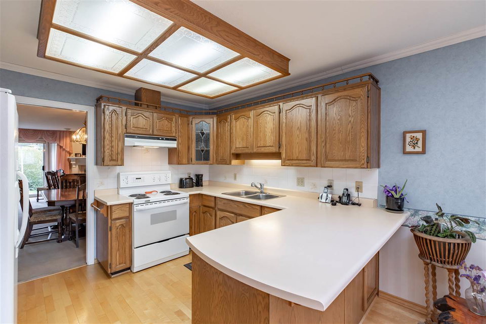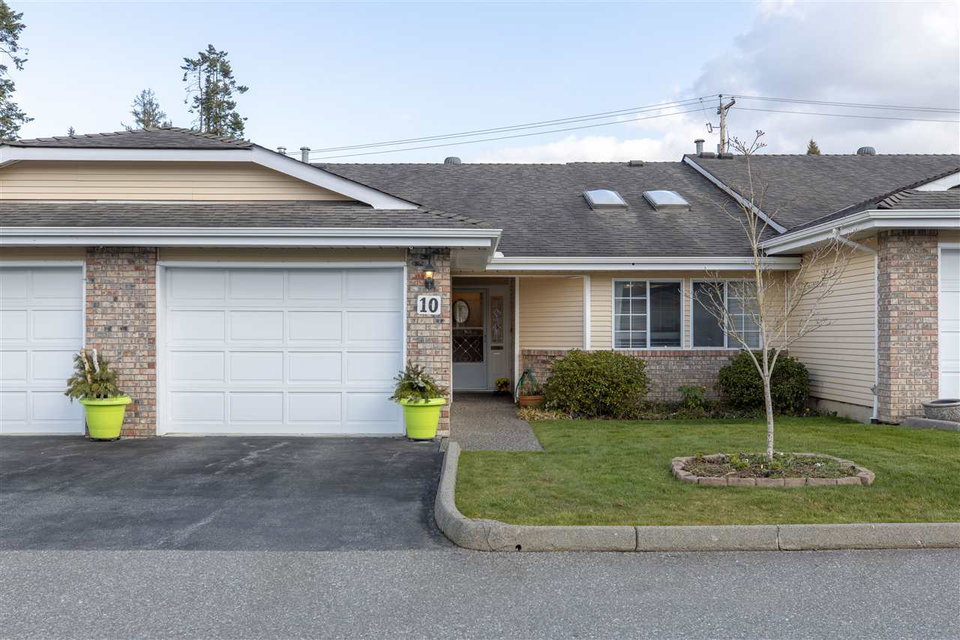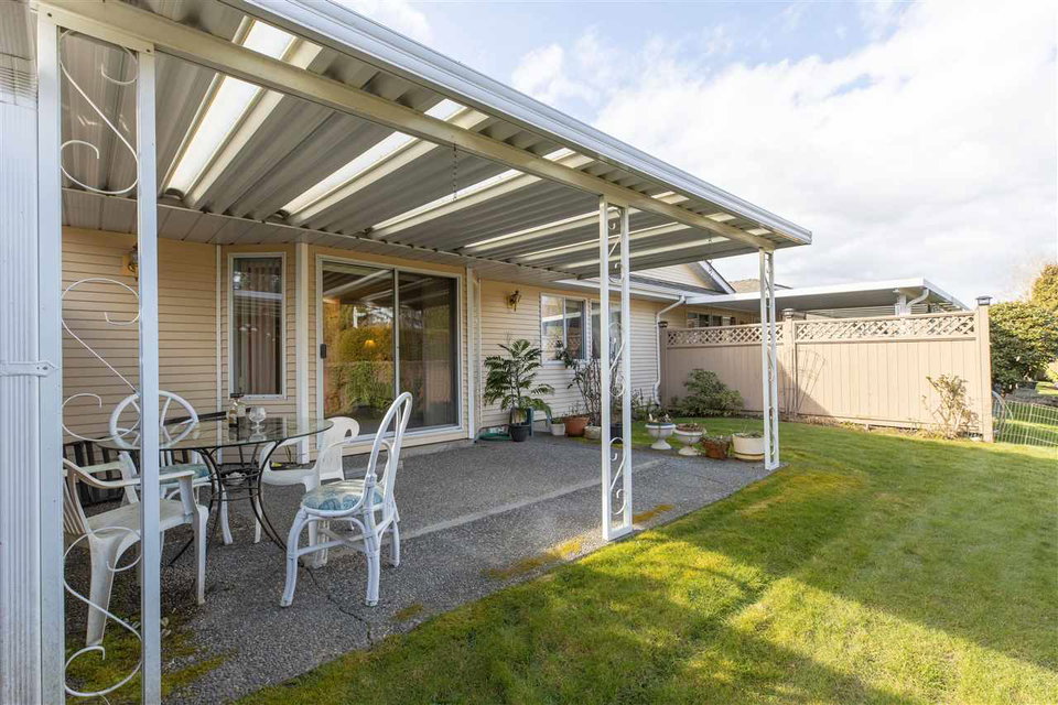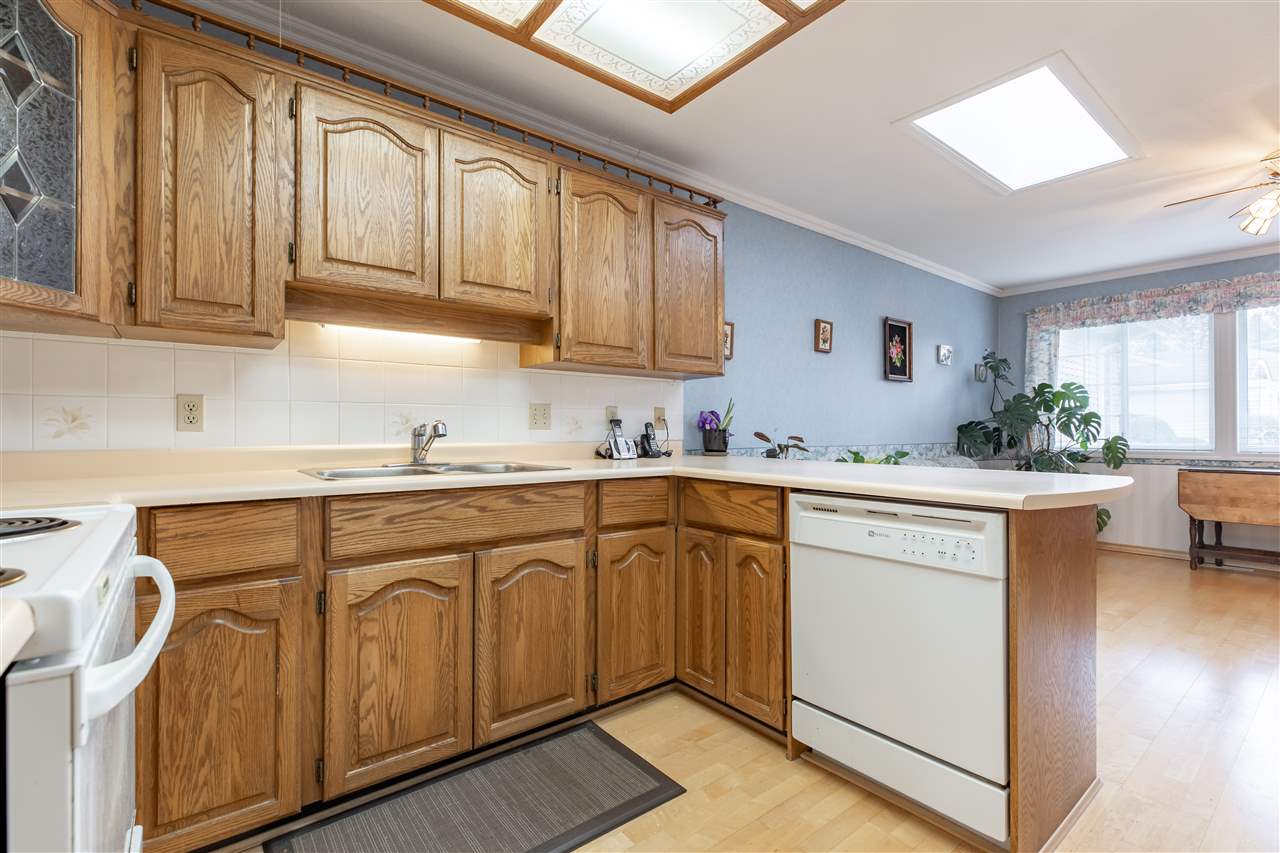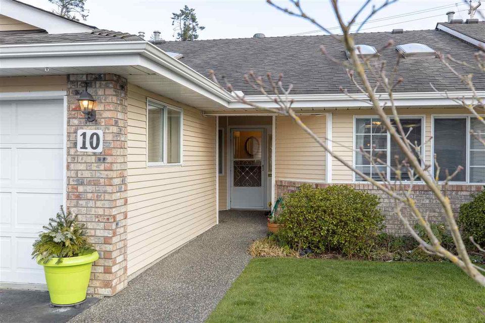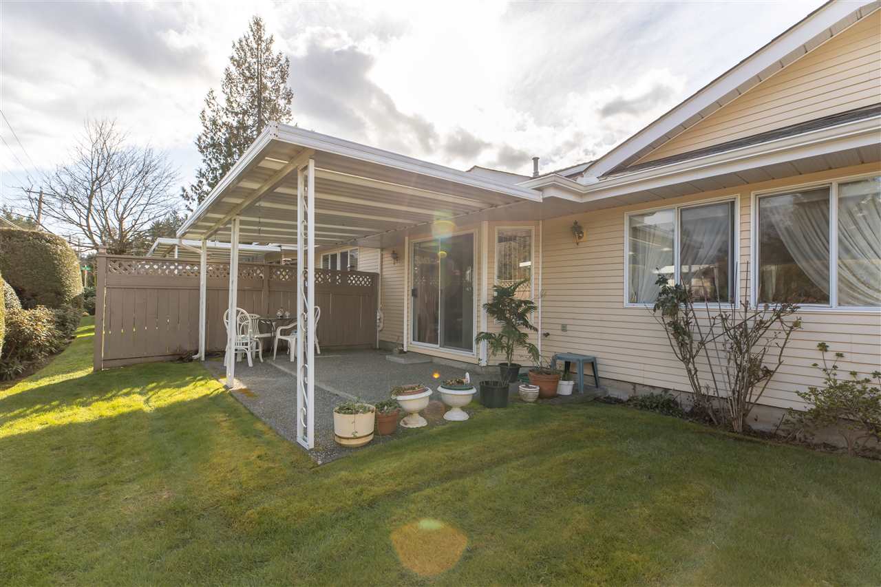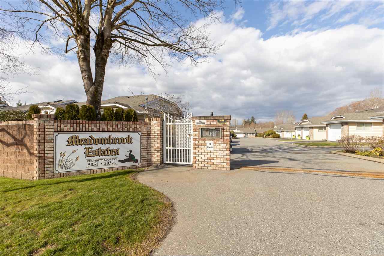 MEADOWBROOK ESTATES! This fantastic gated 2 bdrm 2 bath RANCHER townhome is a perfect place to call home with no stairs. This 55+ Age restricted complex is pet friendly ( 40lb max). Well maintained complex with ample parking. Single garage with parking pad out front. Great layout with large kitchen & eating area. Large formal dining & living room w sliding door leading to fenced EAST facing rear yard with COVERED PATIO! A great spot for a morning coffee all year around. HUGE master suite with walk in closet & room for your office. Updated furnace and hot water tank. Low strata maintenance fee. Great Value!
