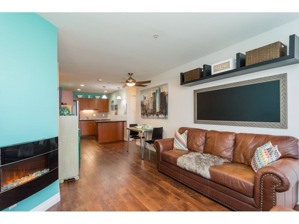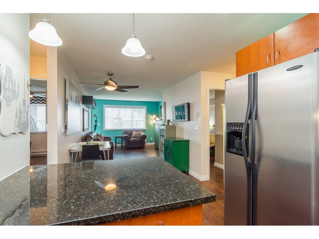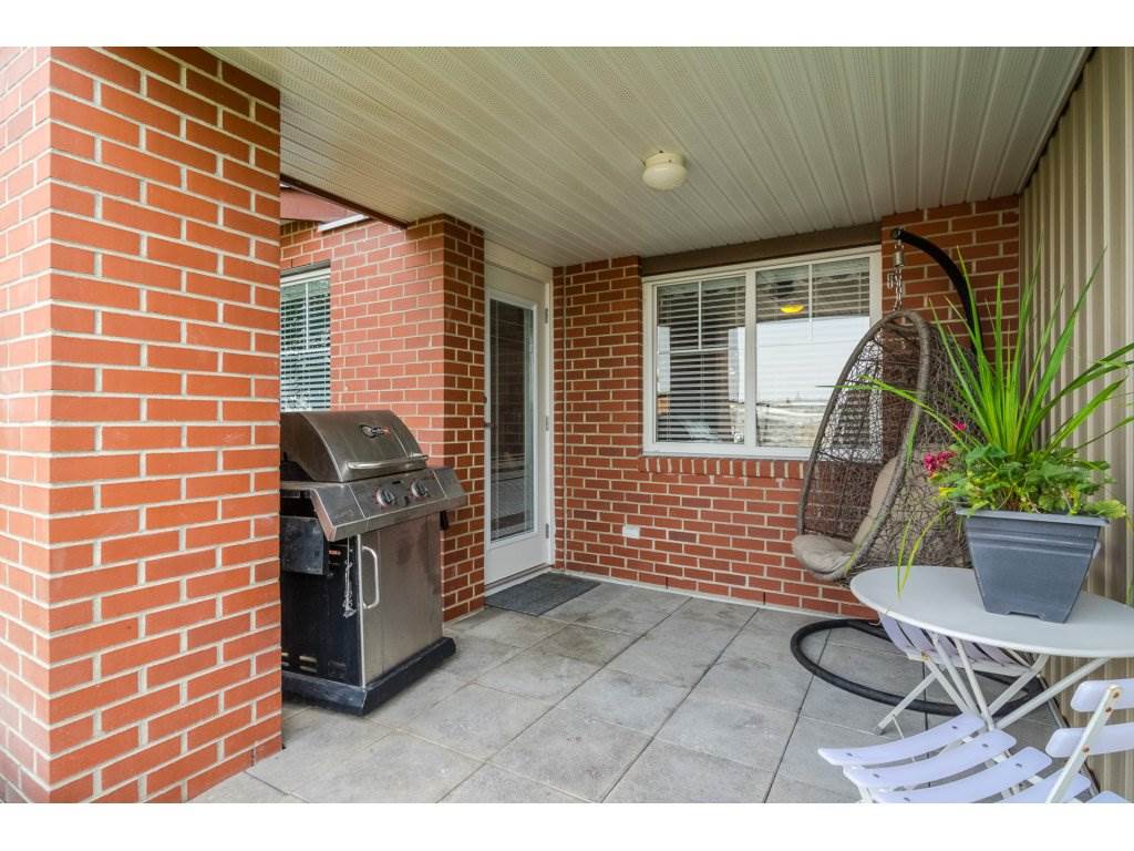 MADISON STATION in the heart of Langley City! Rarely available 2 BEDROOM & DEN GROUND FLOOR condo! Laminate floors, electric fireplace & door off living area leading to PRIVATE covered deck with access out to lawn area. Perfect for pet owners. SPACIOUS bedrooms on opposite sides for ultimate privacy. Large master has walk through closets and ensuite bath. Kitchen features granite countertops & stainless steel appliances. Insuite laundry. Den area is great for your home office. BONUS 2 underground side-by-side secured parking stalls! Storage locker and lots of visitor parking. Walking distance to shopping, parks, trails & more! GREAT VALUE!