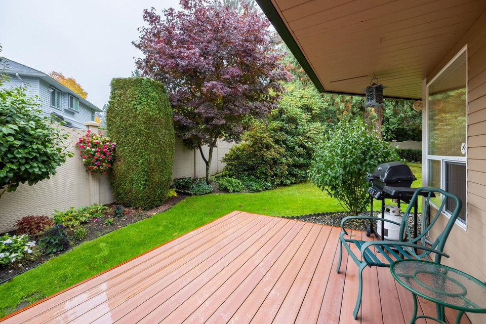 Welcome to LAKEWOOD ESTATES in BOUNDARY PARK! 45+ age restricted. This RARELY available 3 bedroom 2 level townhome boasts over 2100 sq. ft. and is just like a detached home! Beautiful formal living & dining areas with new gas fireplaces. Bright open kitchen w upgraded countertops & warm paint tones. Sliding door leads to PRIVATE backyard with new composite deck. A perfect spot for BBQs and entertaining. Large master suite with walk in closet. Bonus den area upstairs as well. Tucked in the far back of the complex this unit has the LARGEST yard in the BEST LOCATION. You will fall in love with the amazing outdoor space. Side by side garage PLUS 2 additional parking spot on PAD! Call today for your personal tour!