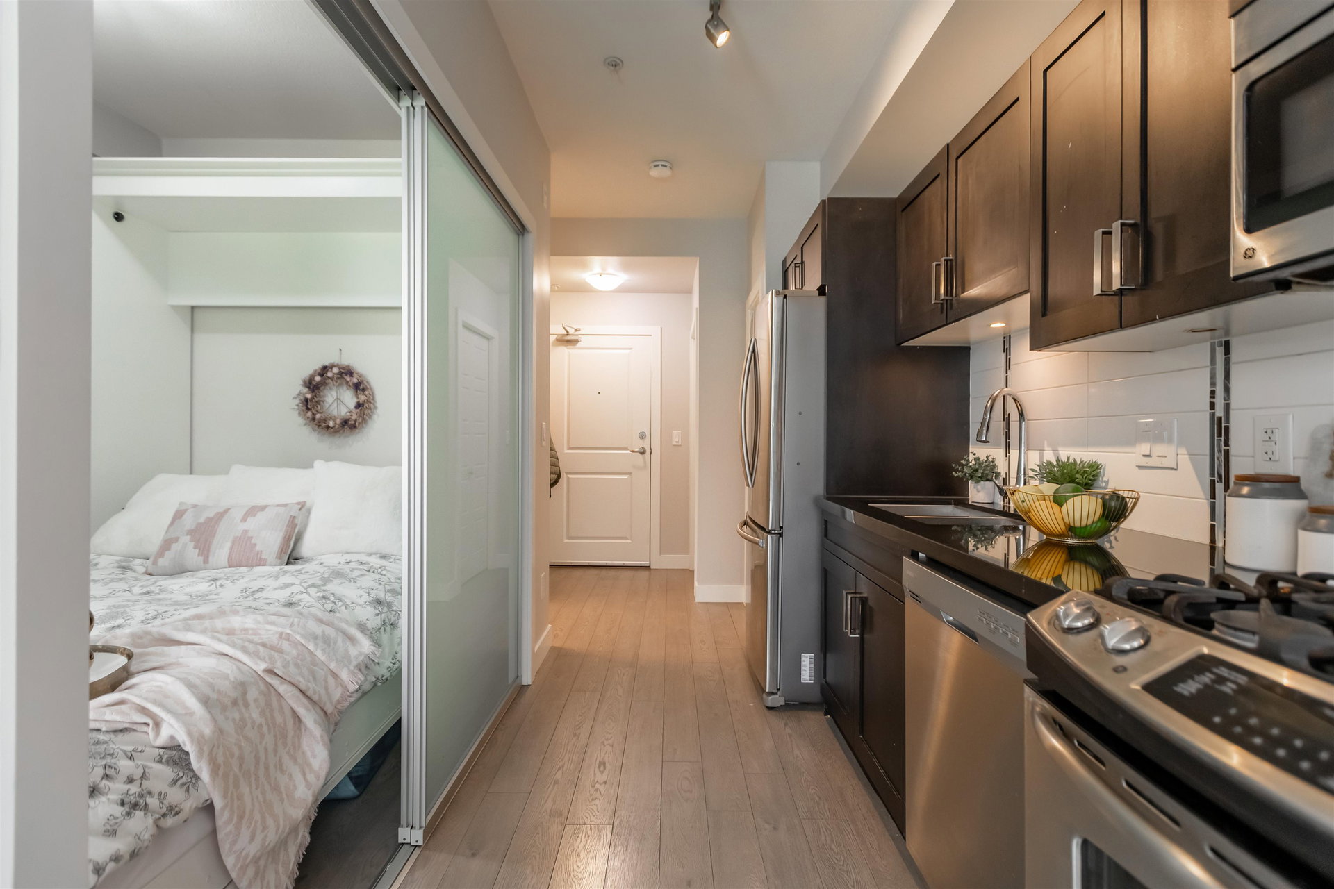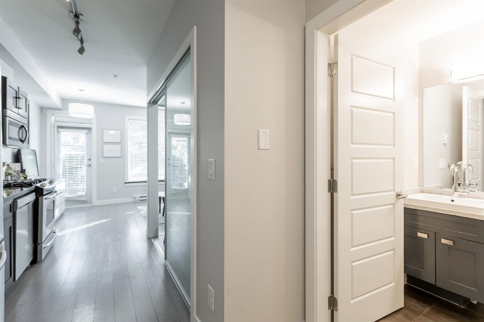Welcome to Langley! This beautiful 1-bedroom, 1-bathroom home offers luxurious stainless steel appliances, a gas stove, and soft-close cabinets with granite countertops. As a bonus, the unit offers a gas BBQ hook-up on the patio. Everything you can think of is within walking distance to this magnificent development, including dining, shopping, a gym, and just steps away from transit. One parking spot and a storage locker are included. Quick completion available.