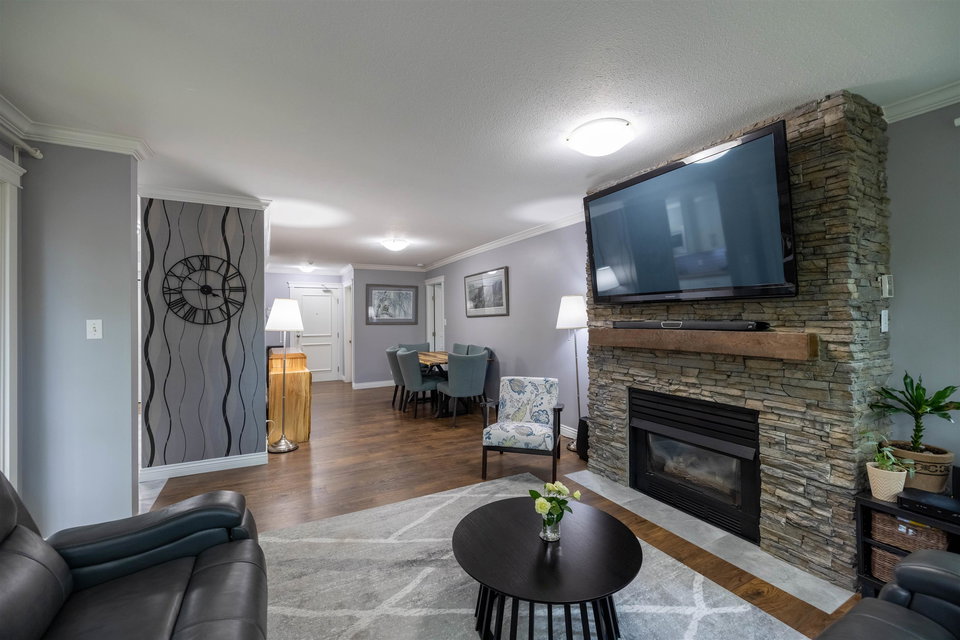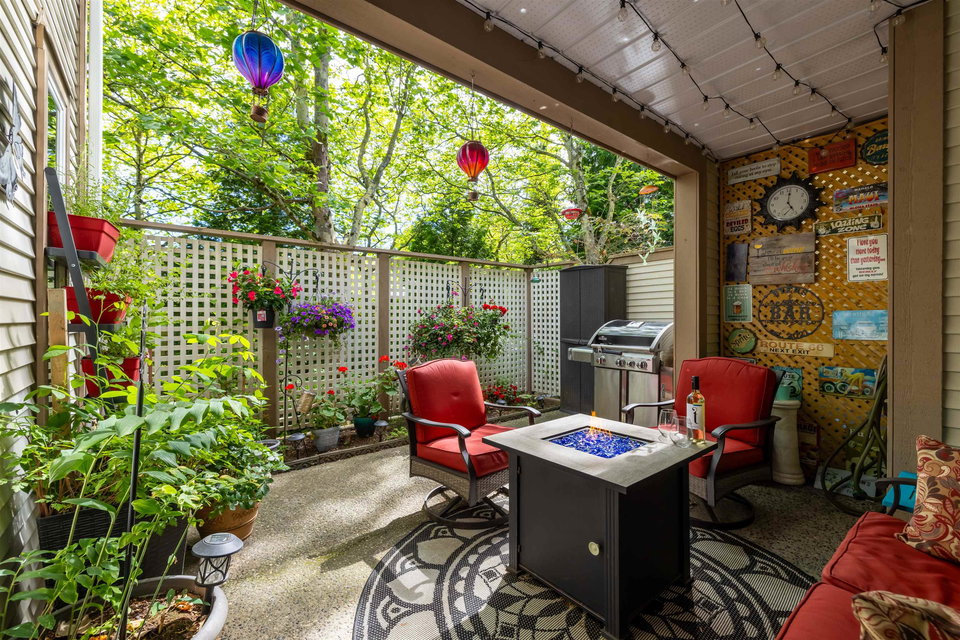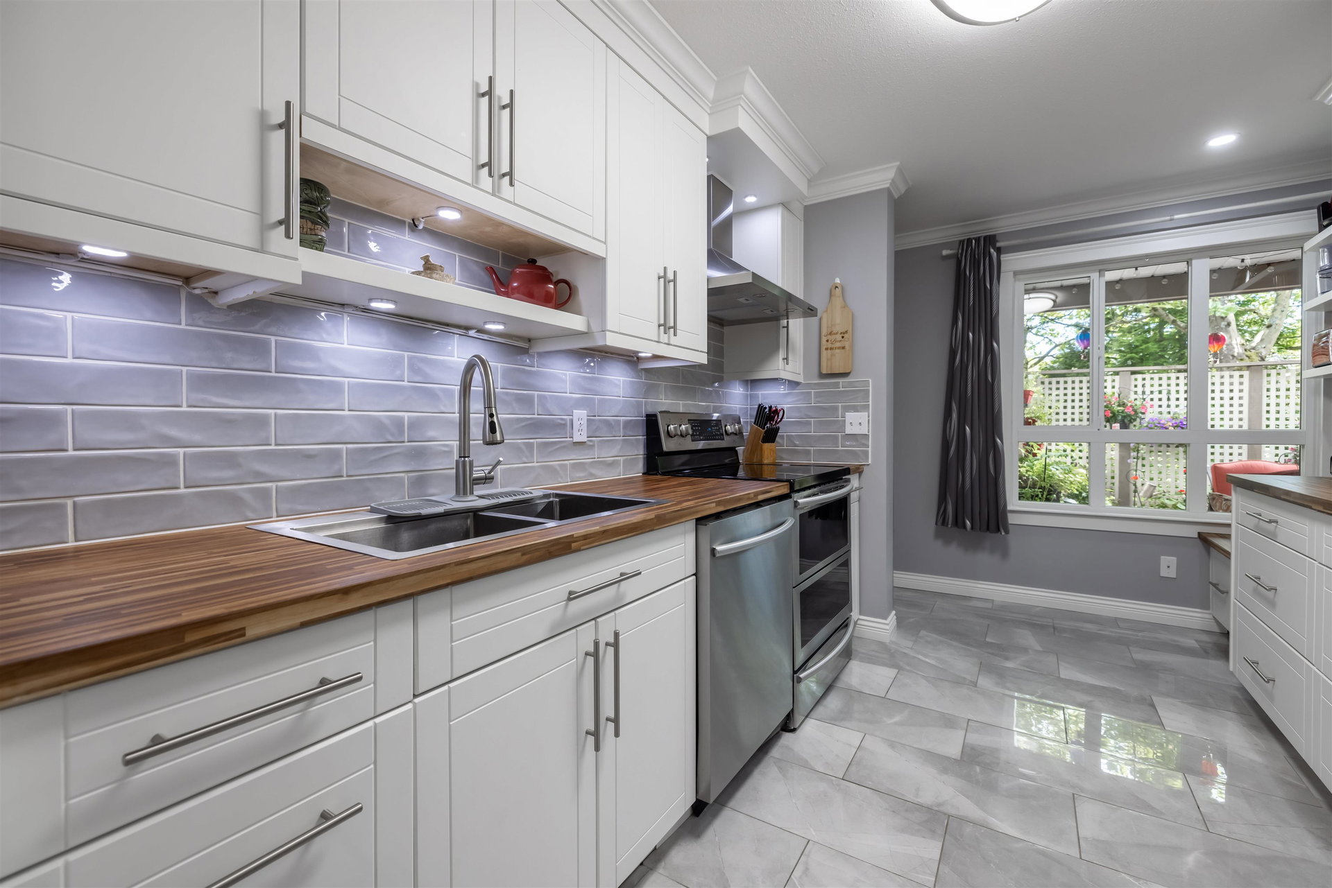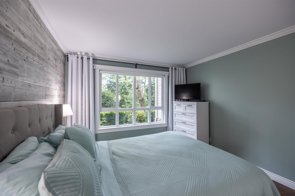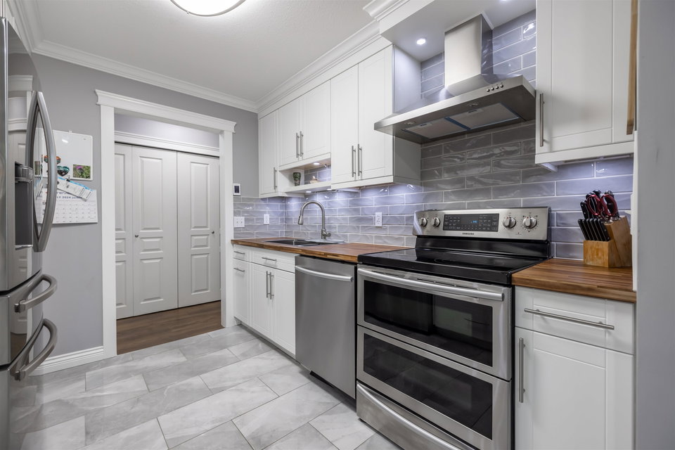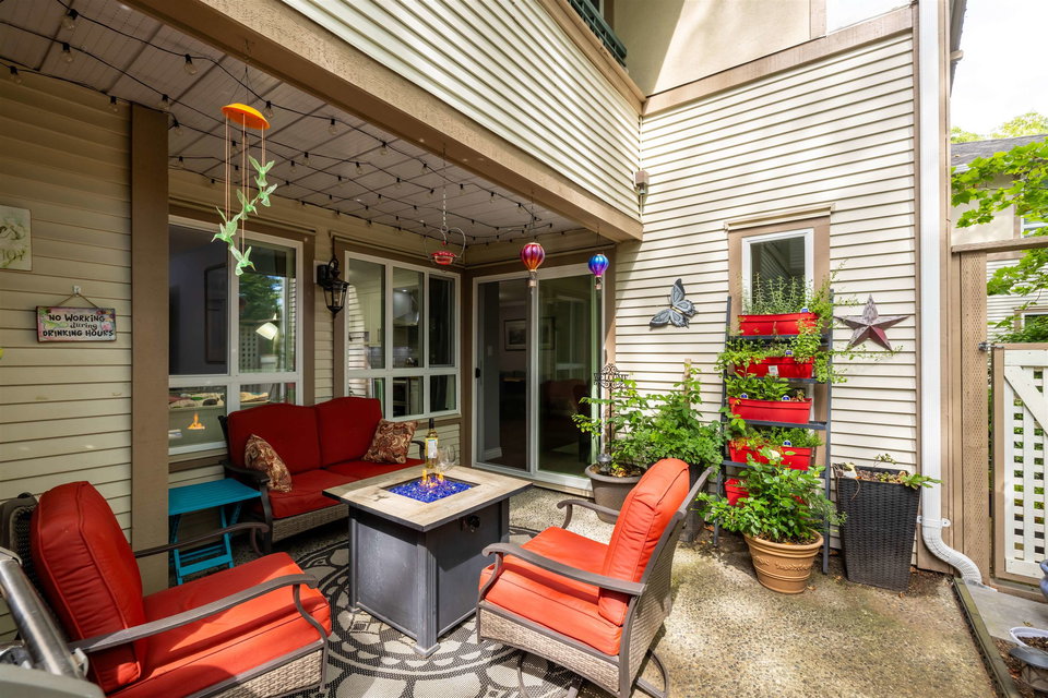RARELY AVAILABLE REGENCY at BOUNDARY PARK! This boutique development is in a prime location. Ultra spacious & bright 1132 sq ft 2 bedroom 2 bath garden level condo located on the quiet side of the complex nested amongst the greenspace. Beautiful condition loaded upgrades new windows. Warm paint tones, upgraded flooring, lighting & fireplace stone & wooden beam mantle. New kitchen w shaker white cabinets, stainless steel appliances, backsplash, tile floor & natural wood countertop! Enjoy a morning coffee on your private south facing patio surrounded by nature. 2 large bdrms on opposite sides for maximum privacy. Oversized master suite w double closets. Both bathrooms upgraded w heated floors. 2 side by side parking stalls & storage locker. Walking distance to shopping, restaurants & more!