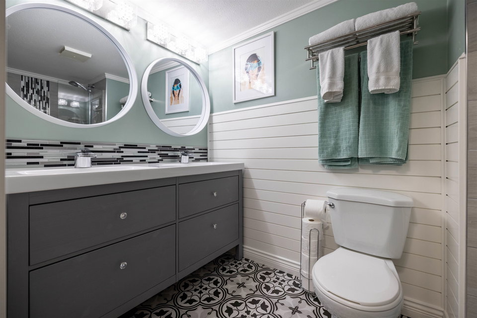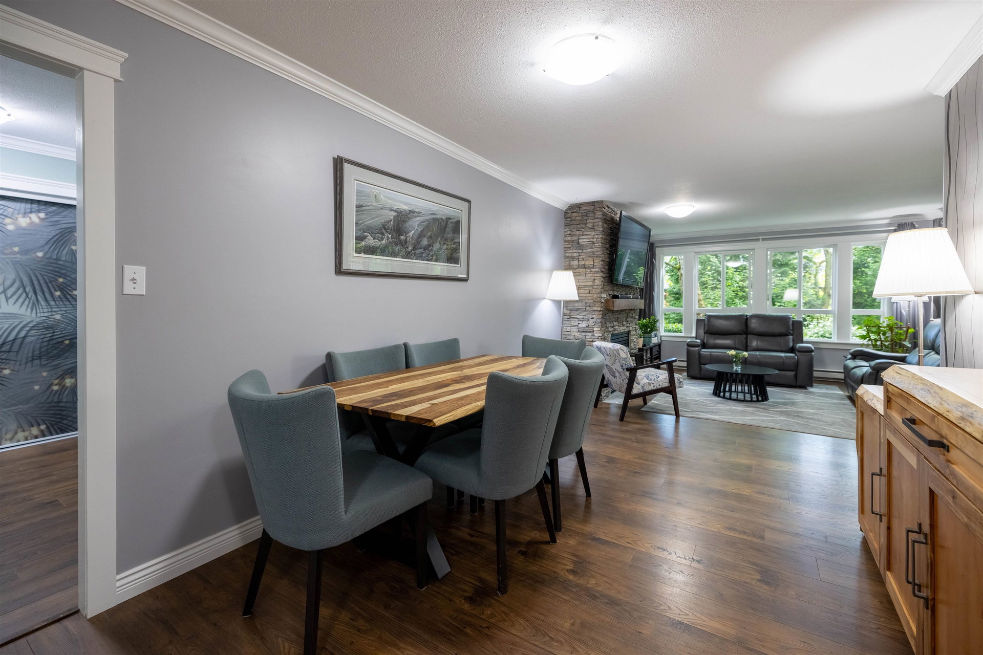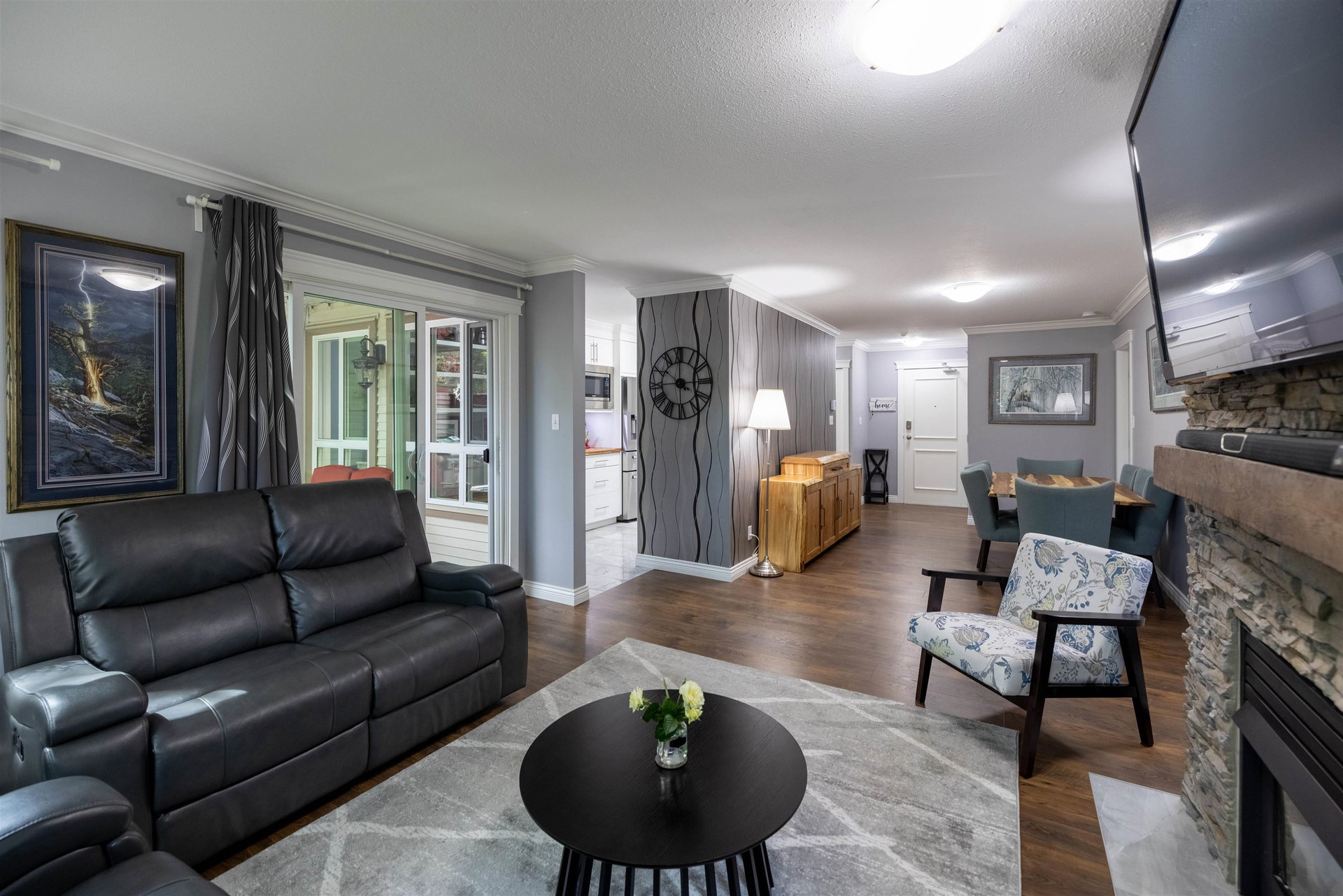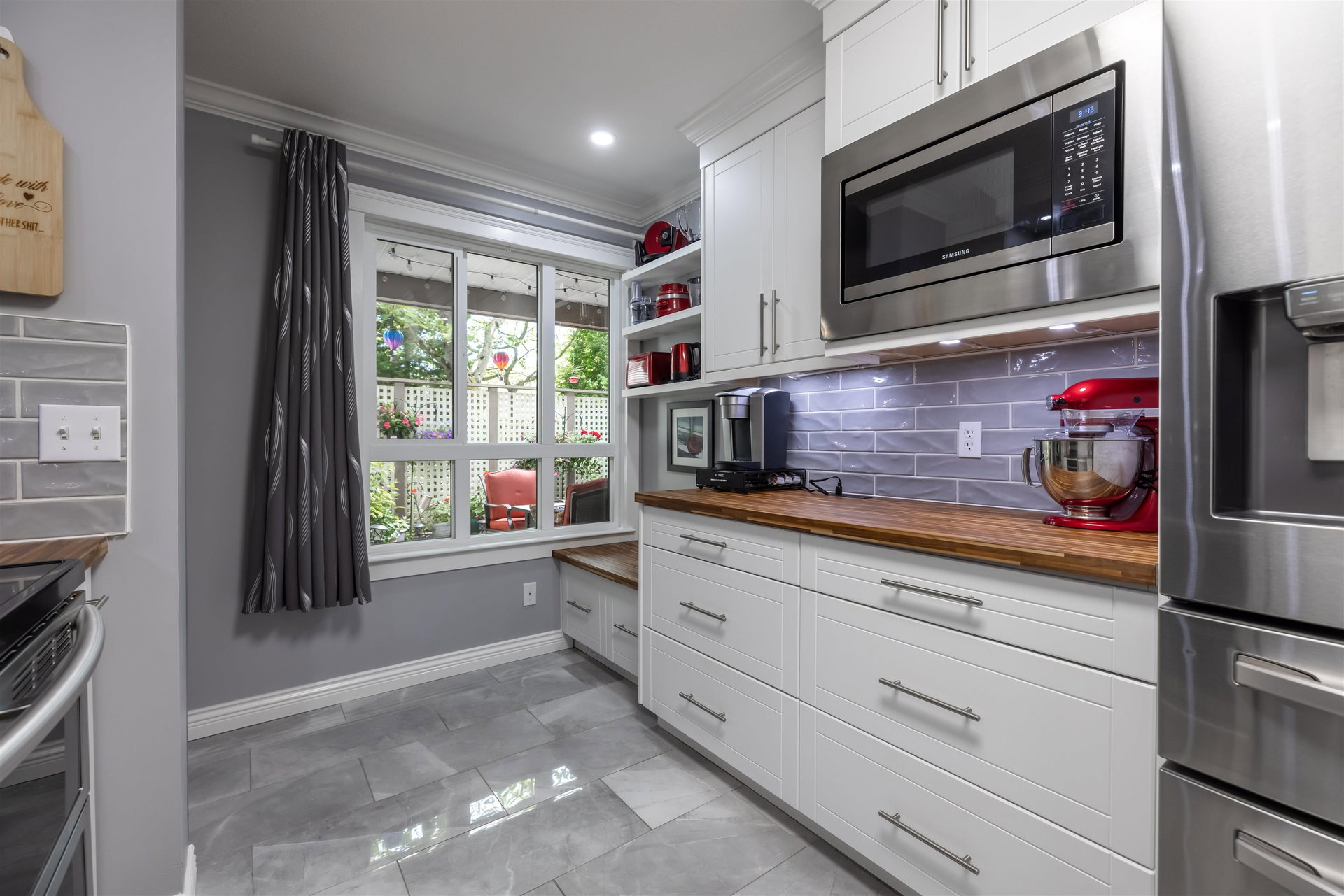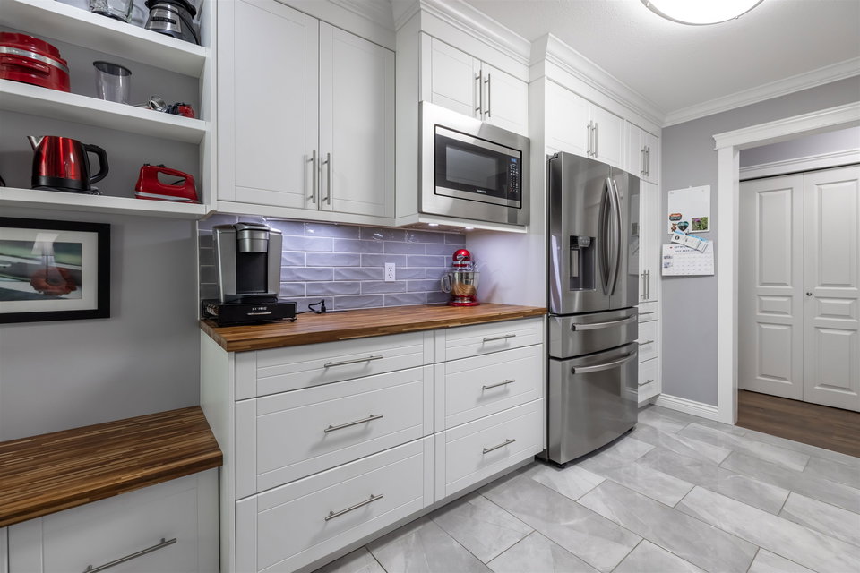 RARELY AVAILABLE REGENCY at BOUNDARY PARK! This boutique development is in a prime location. Ultra spacious & bright 1132 sq ft 2 bedroom 2 bath garden level condo located on the quiet side of the complex nested amongst the greenspace. Beautiful condition loaded upgrades new windows. Warm paint tones, upgraded flooring, lighting & fireplace stone & wooden beam mantle. New kitchen w shaker white cabinets, stainless steel appliances, backsplash, tile floor & natural wood countertop! Enjoy a morning coffee on your private south facing patio surrounded by nature. 2 large bdrms on opposite sides for maximum privacy. Oversized master suite w double closets. Both bathrooms upgraded w heated floors. 2 side by side parking stalls & storage locker. Walking distance to shopping, restaurants & more!