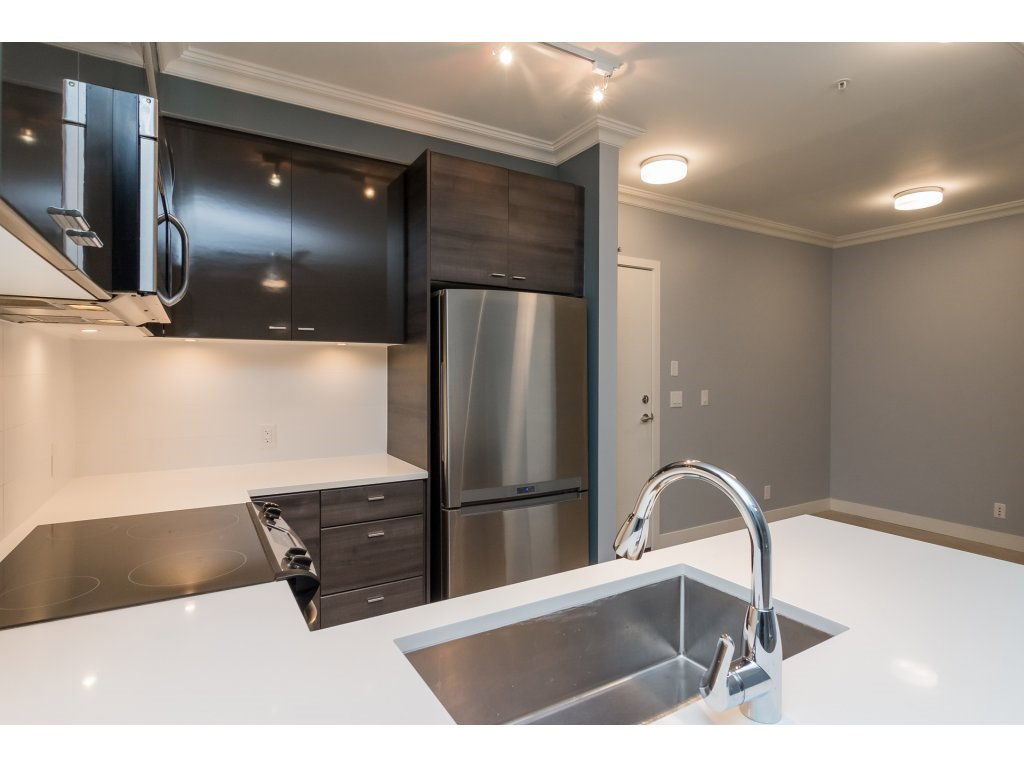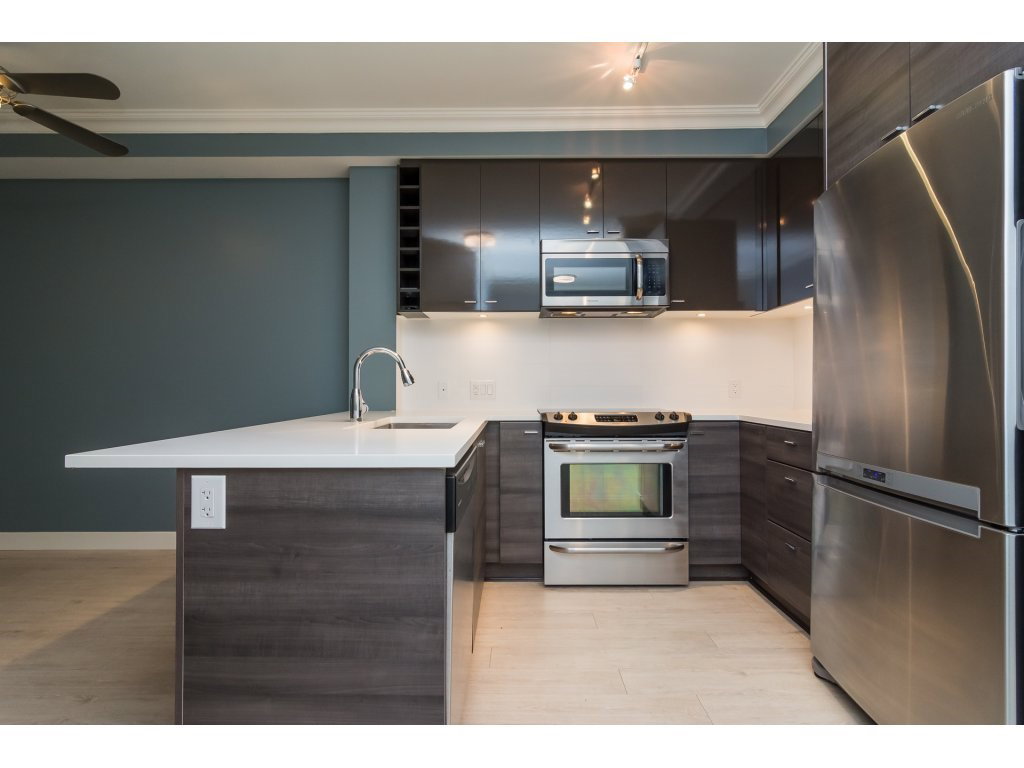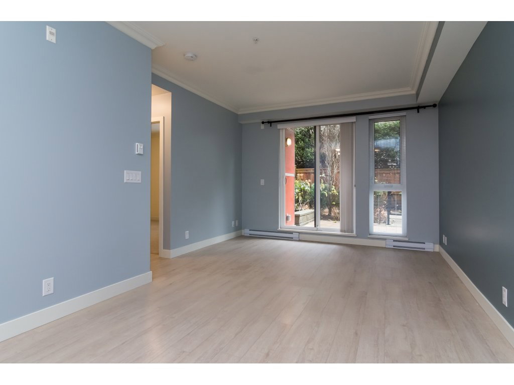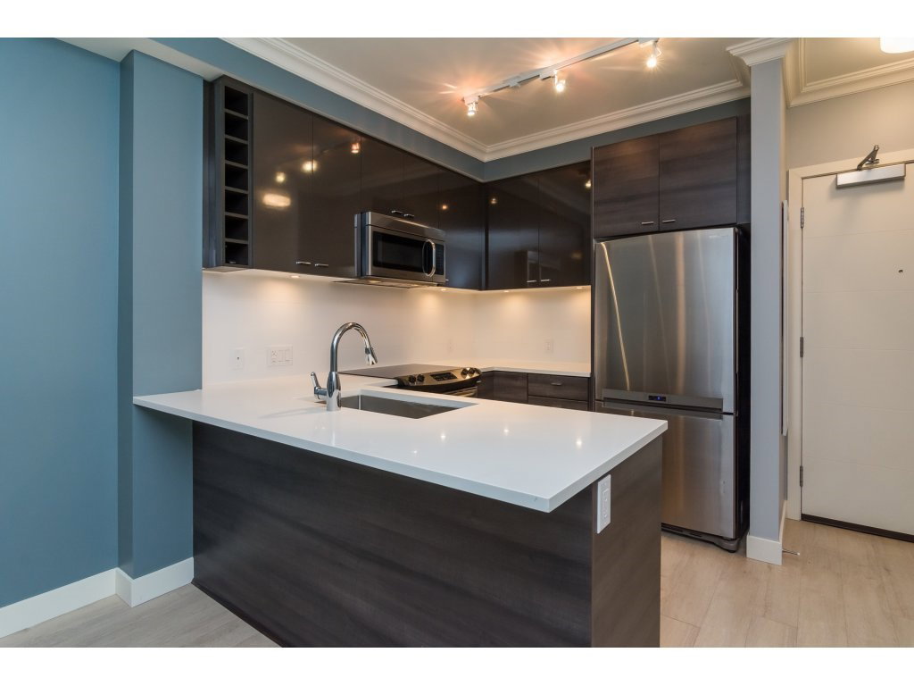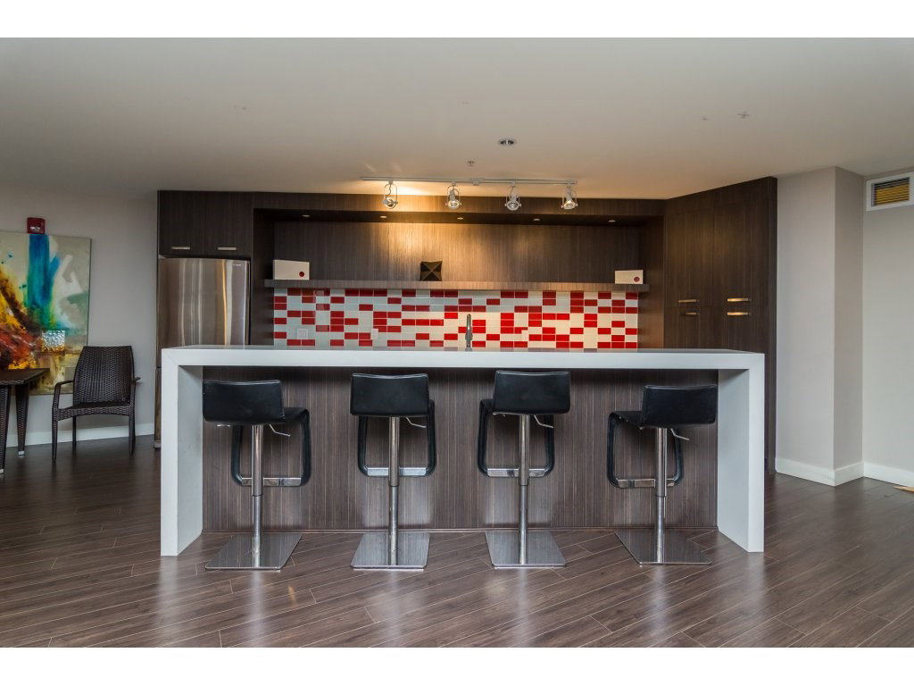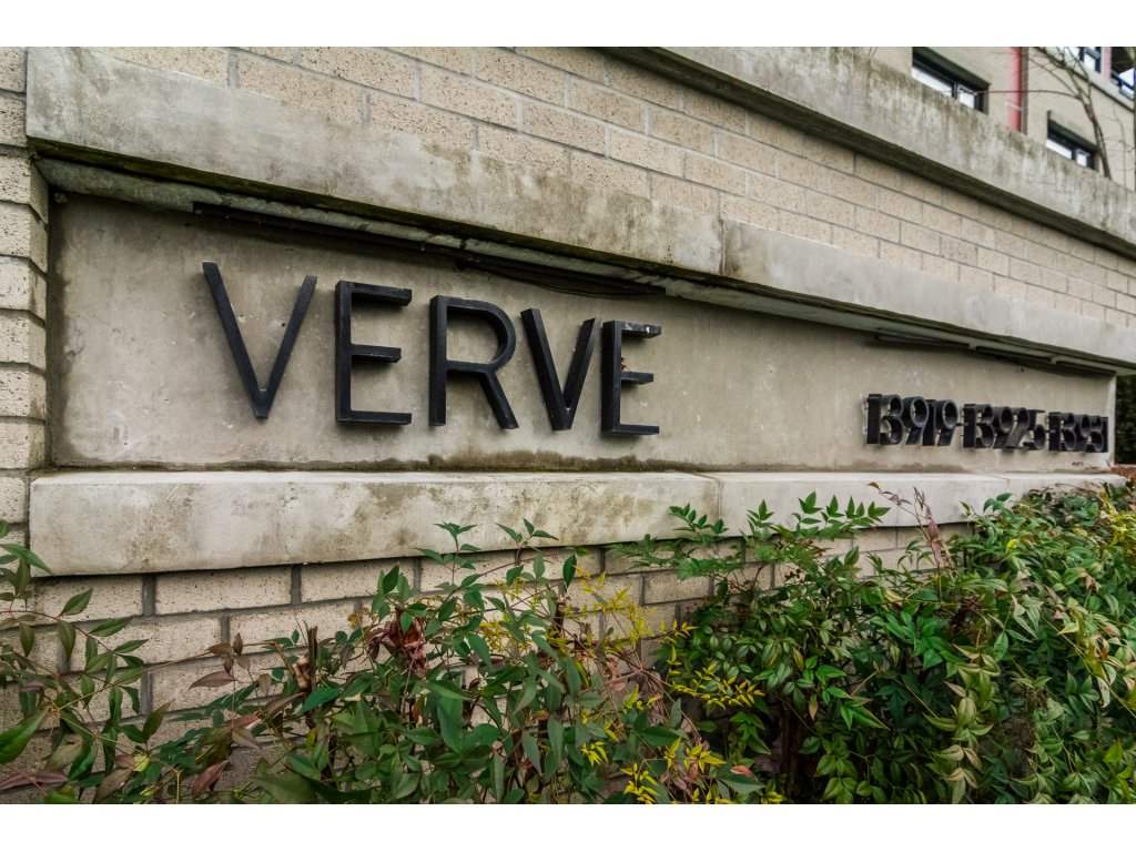 Welcome to the VERVE by PORTE! Attention FIRST TIME buyers and INVESTORS! MINT CONDITION 1 bdrm & den ground floor, 700 sq ft unit. This contemporary & modern development is one of the best in Central City & only a 5 min walk to Skytrain. 3 yrs old! OPEN, bright layout w 9′ ceilings, stainless steel appliances, quartz counter tops, under mount sink & room for your bar stools at breakfast bar for entertaining! Beautiful laminate floors in kitchen, dining & living room. Freshly painted top to bottom! Great private patio facing EAST! Underground parking and locker close to elevator! Footsteps to SFU Campus & Central City Mall in BC’s Fastest growing city ! RENTALS ALLOWED! LIKE NEW!
