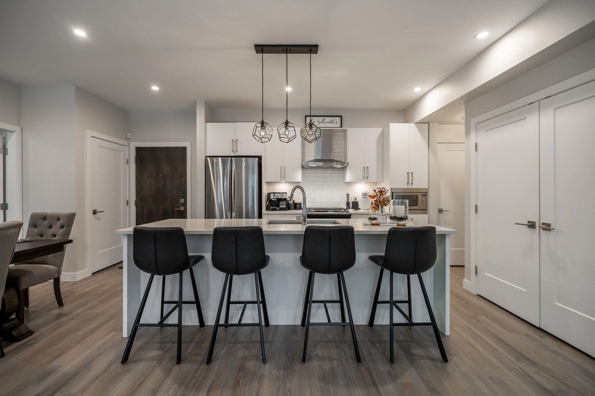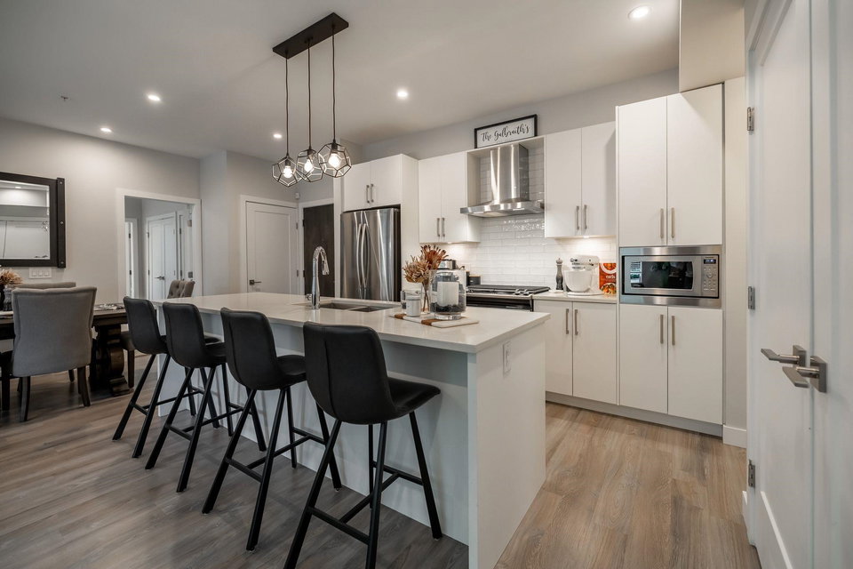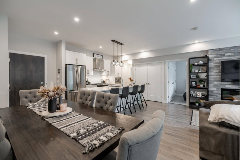 Welcome to Headwaters! We are proud to showcase this immaculate ground level corner unit featuring almost 1000 sq ft of living space! You will fall in love with the open floorplan with spacious gourmet kitchen featuring quartz countertops, stainless appliances with Whirlpool gas range, oversized island and generously sized dining area with French doors leading to your private outdoor patio! The home offers a massive primary bedroom that has a spa like 5 piece en-suite with double vanity, heated floors and huge walk-in shower. The Headwaters Club features the business center, clubhouse with kitchen, full gym as well as guest suite! A location that is tucked away yet minutes to everything that South Point has to offer! Pride of ownership shines in this unit, do not miss this opportunity!
