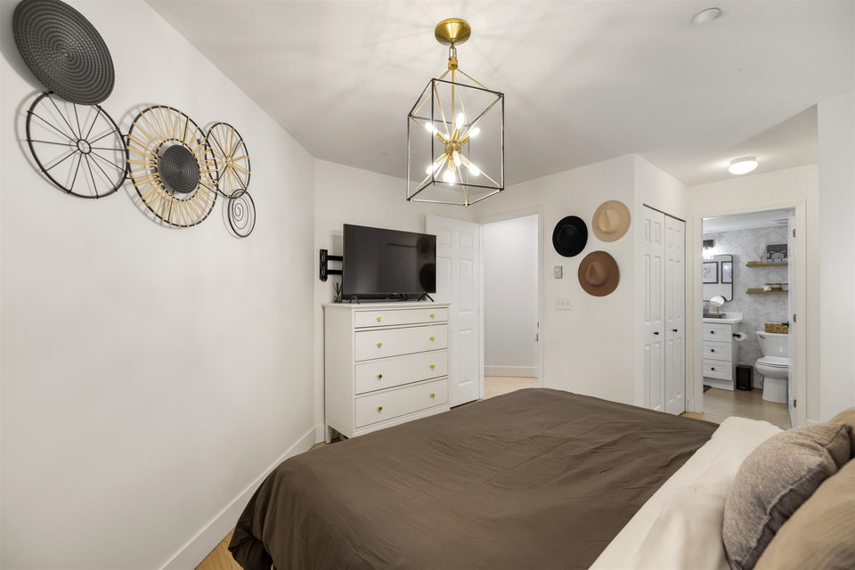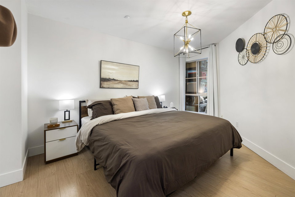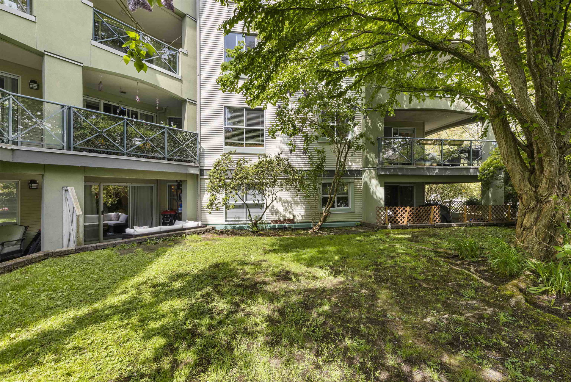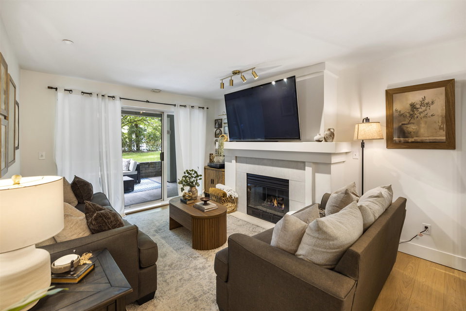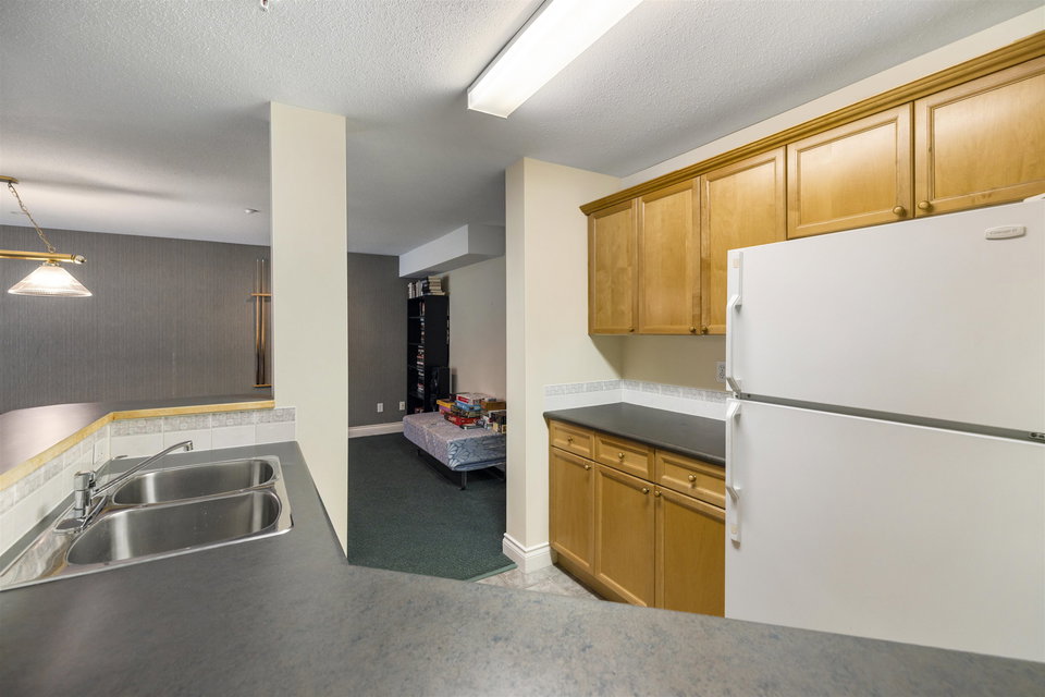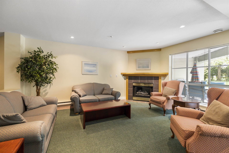Welcome to Regency Terrace in the heart of Langley City! This beautifully updated 1 bedroom & den condo in this boutique building offers comfort and convenience in a well maintained building. Garden ground floor unit in a secured elevated location has a covered patio with lawn area for your pet! Spacious 849 sq ft open layout featuring a cozy gas fireplace. Upgraded flooring, lighting & warm paint tones! Fantastic Den/nursery perfect for your home office. Bright white kitchen with upgraded stainless steel appliances, new sink & faucet. Beautiful living space & sliding doors. Bedroom has walk through closets & cheater ensuite bathroom which is also upgraded! Hot Water and gas included in your strata fee. Complex has amenity lounge & gym. BONUS 2 parking spots! No dog Breed Restrictions.