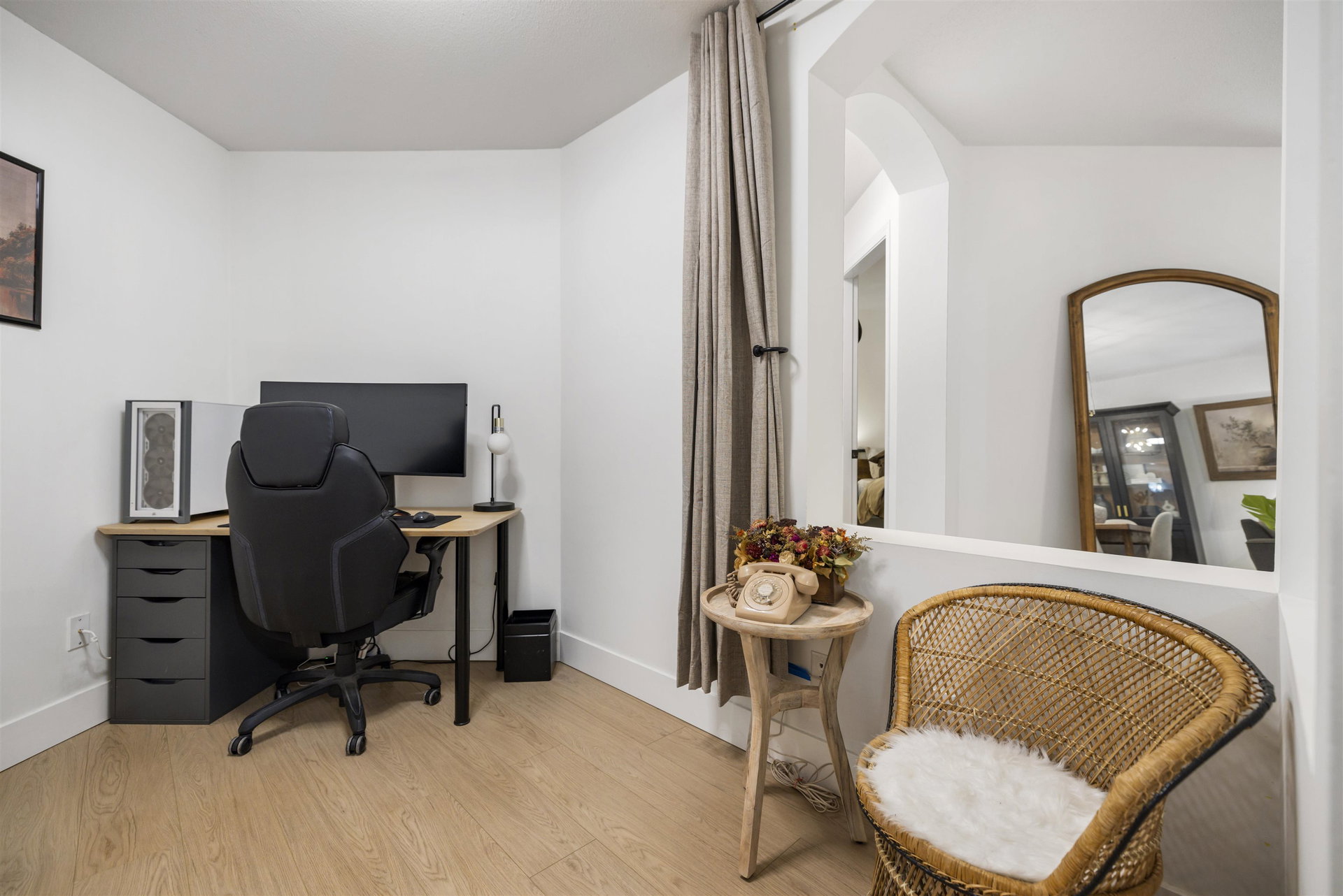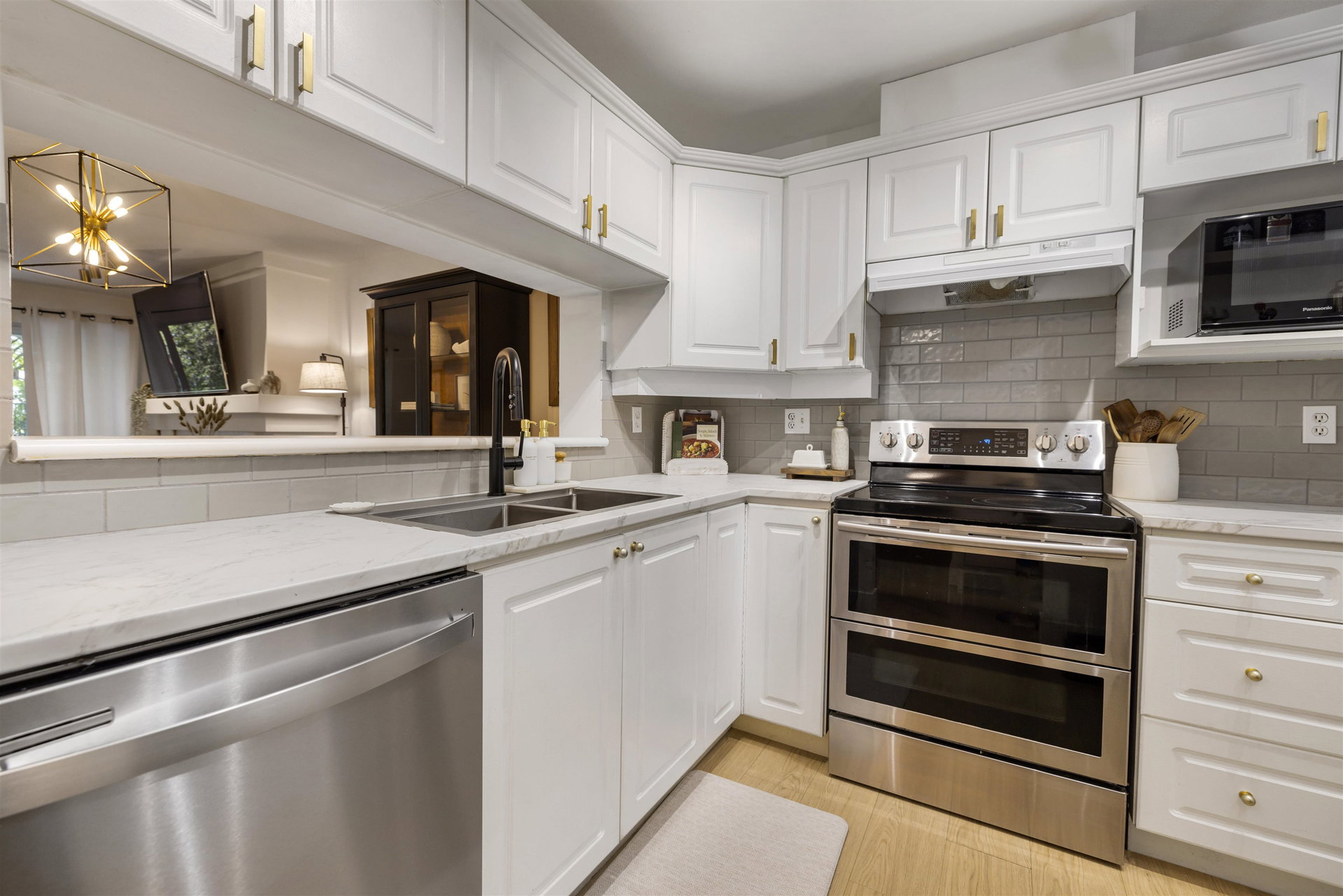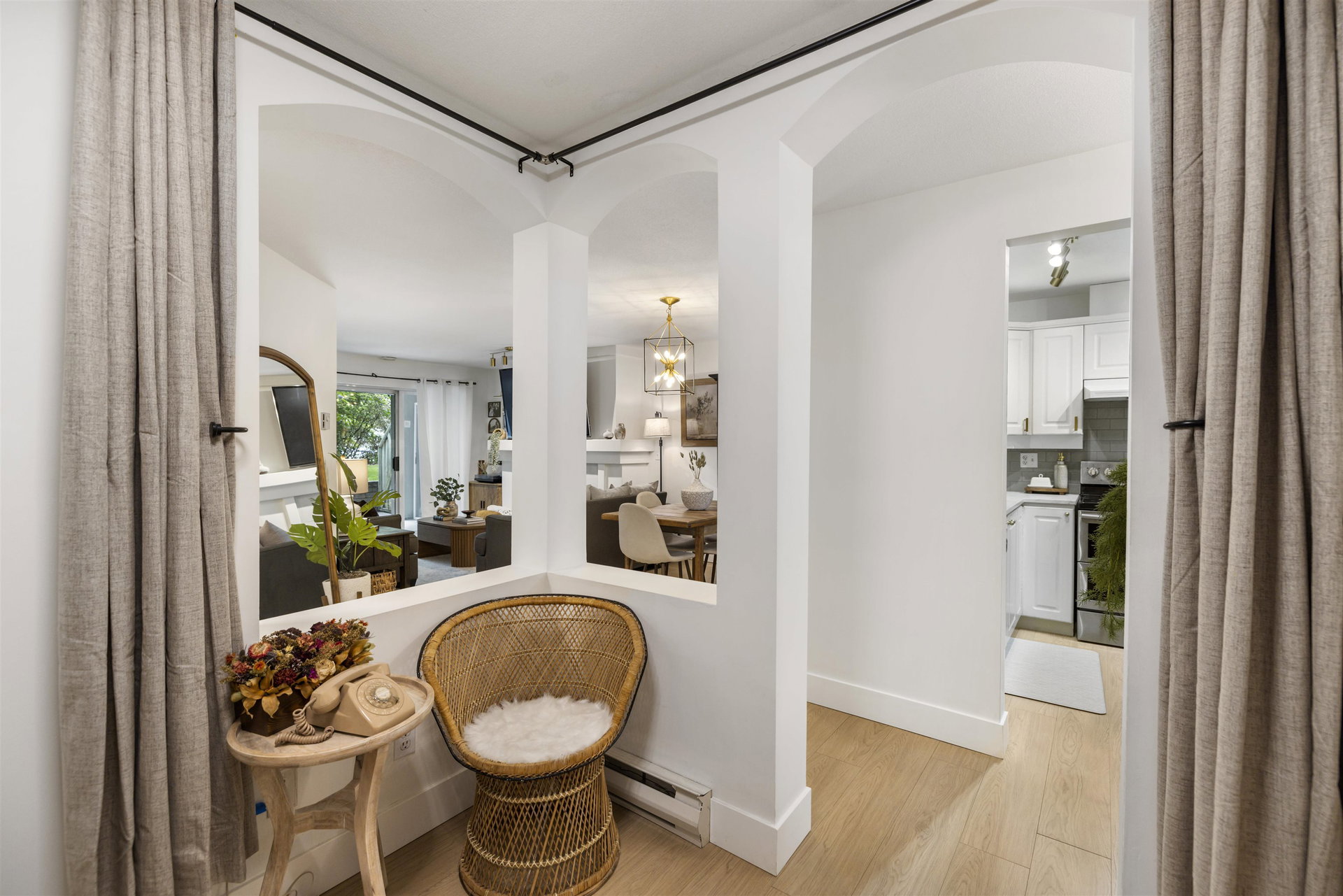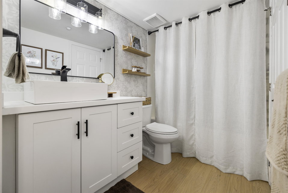 Welcome to Regency Terrace in the heart of Langley City! This beautifully updated 1 bedroom & den condo in this boutique building offers comfort and convenience in a well maintained building. Garden ground floor unit in a secured elevated location has a covered patio with lawn area for your pet! Spacious 849 sq ft open layout featuring a cozy gas fireplace. Upgraded flooring, lighting & warm paint tones! Fantastic Den/nursery perfect for your home office. Bright white kitchen with upgraded stainless steel appliances, new sink & faucet. Beautiful living space & sliding doors. Bedroom has walk through closets & cheater ensuite bathroom which is also upgraded! Hot Water and gas included in your strata fee. Complex has amenity lounge & gym. BONUS 2 parking spots! No dog Breed Restrictions.