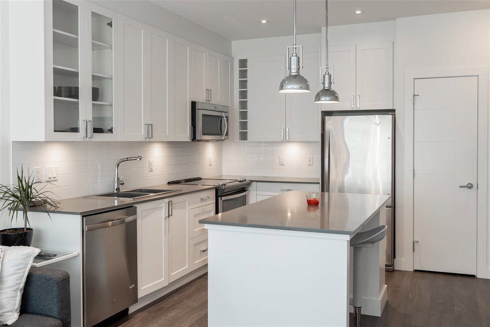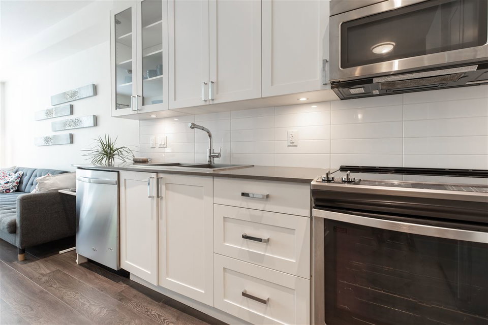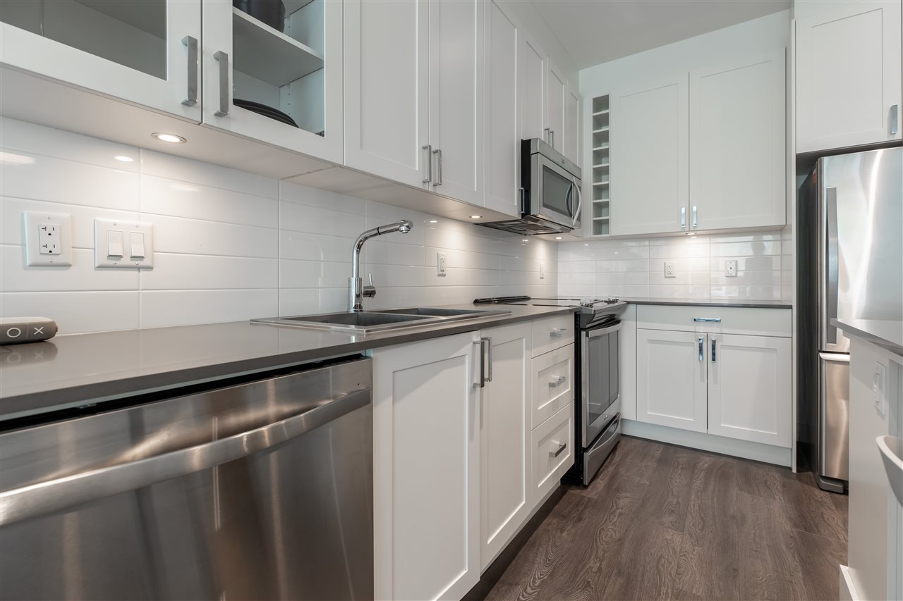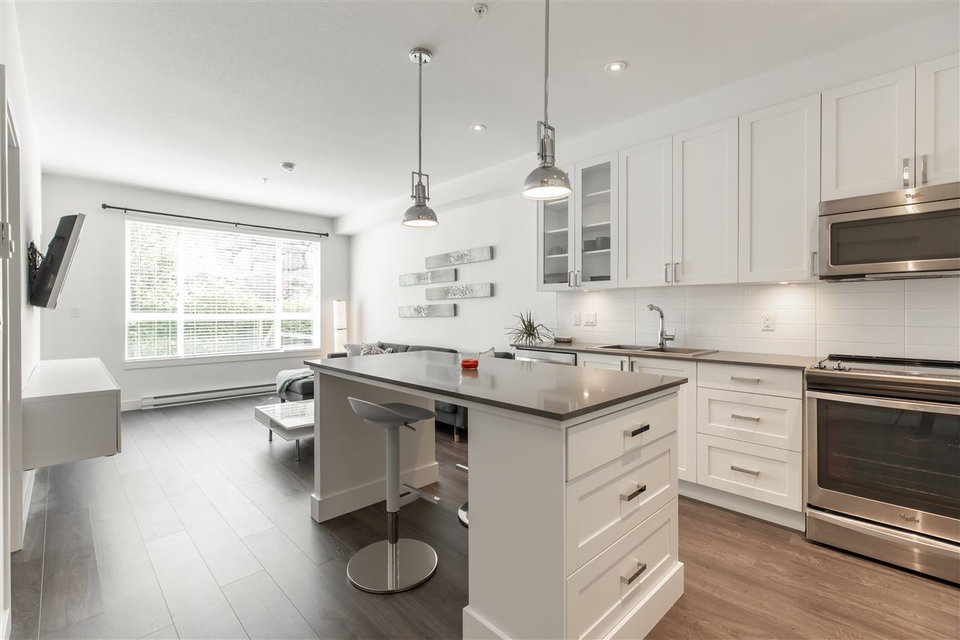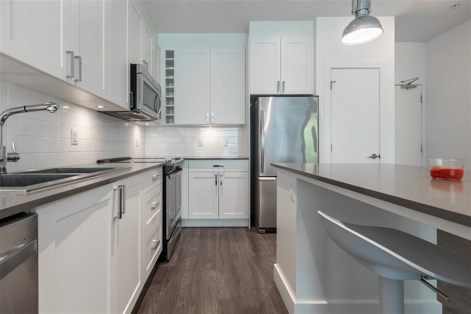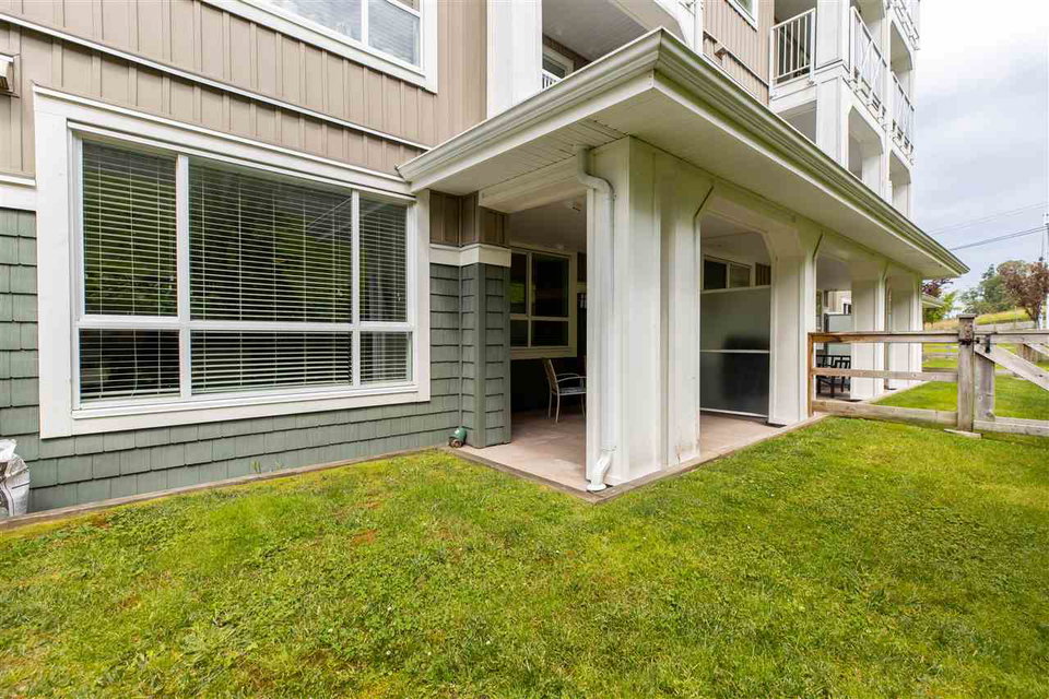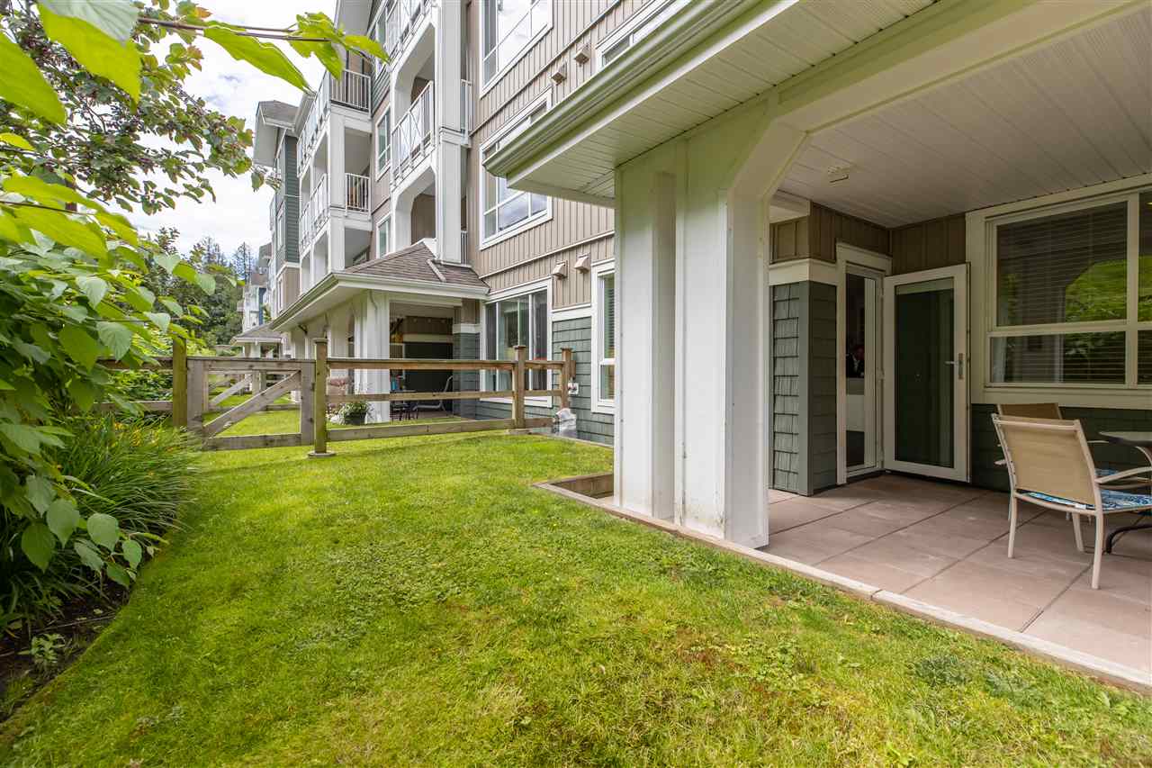 THE RIDGE at BOSE FARMS! Rarely available SPOTLESS 1 bedroom ground floor garden condo located on the quiet side of the complex with a private yard..perfect for your pet! This unit is in incredible condition w an open layout design and high quality finishing. This unit offers the latest CONTEMPORARY finishes with sleek cabinetry, quartz countertops, stainless steel appliances, and large kitchen island perfect for entertaining & room for bar stools. Additional features include walk-in closet, cheater ensuite, covered patio for entertaining, oversized windows, in-suite laundry and 2 secured underground SIDE BY SIDE parking stalls! This development has state of the art amenities: gym, yoga studio, craft room, fireside lounge w kitchen & patio for large functions. 10 out of 10!