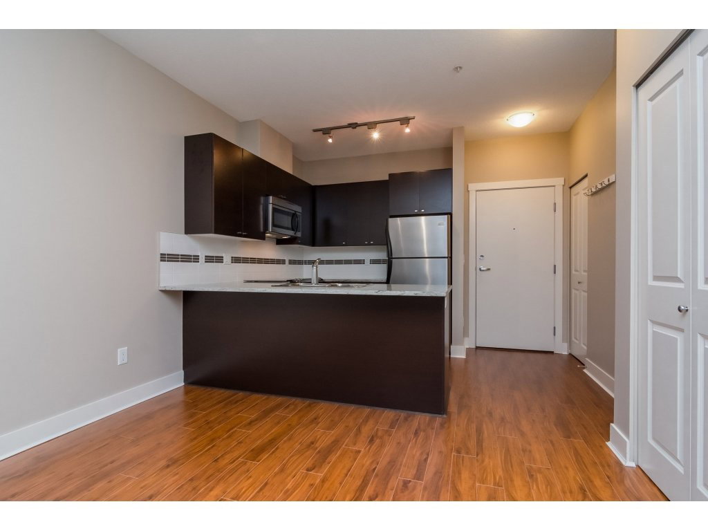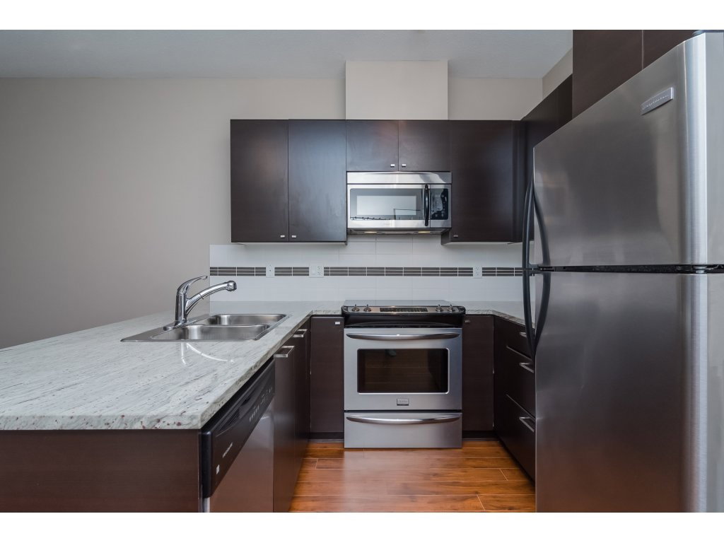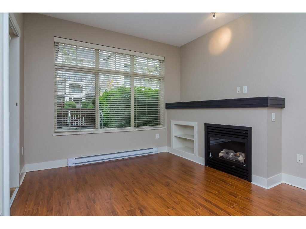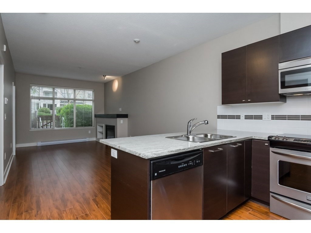 GROUND FLOOR GARDEN CONDO with Street access in CLAYTONS SUNSET GROVE! Attention first time buyers and investors! SPOTLESS & spacious 1 bedroom condo featuring a GOURMET kitchen with premium stainless steel appliances, granite counters and eating bar! The living room boasts a GAS fireplace w door leading to covered deck. Path leads to street..perfect for your pet! The master has walk through closets with cheater door. FRESHLY PAINTED throughout w laminate floors in kitchen and living area. 8′ ceilings. Insuite laundry. LOW MAINT FEE includes GAS fireplace! Underground secured parking stall and locker. A MUST SEE. Move in today! Award winning strata complex! RENTALS ALLOWED!