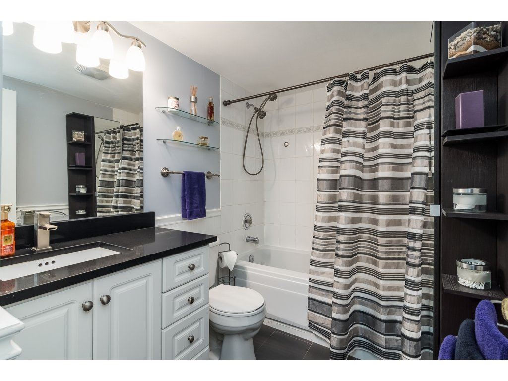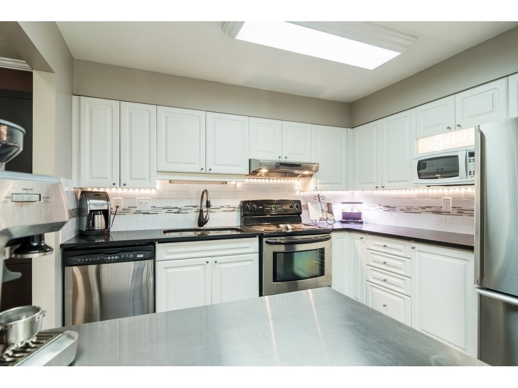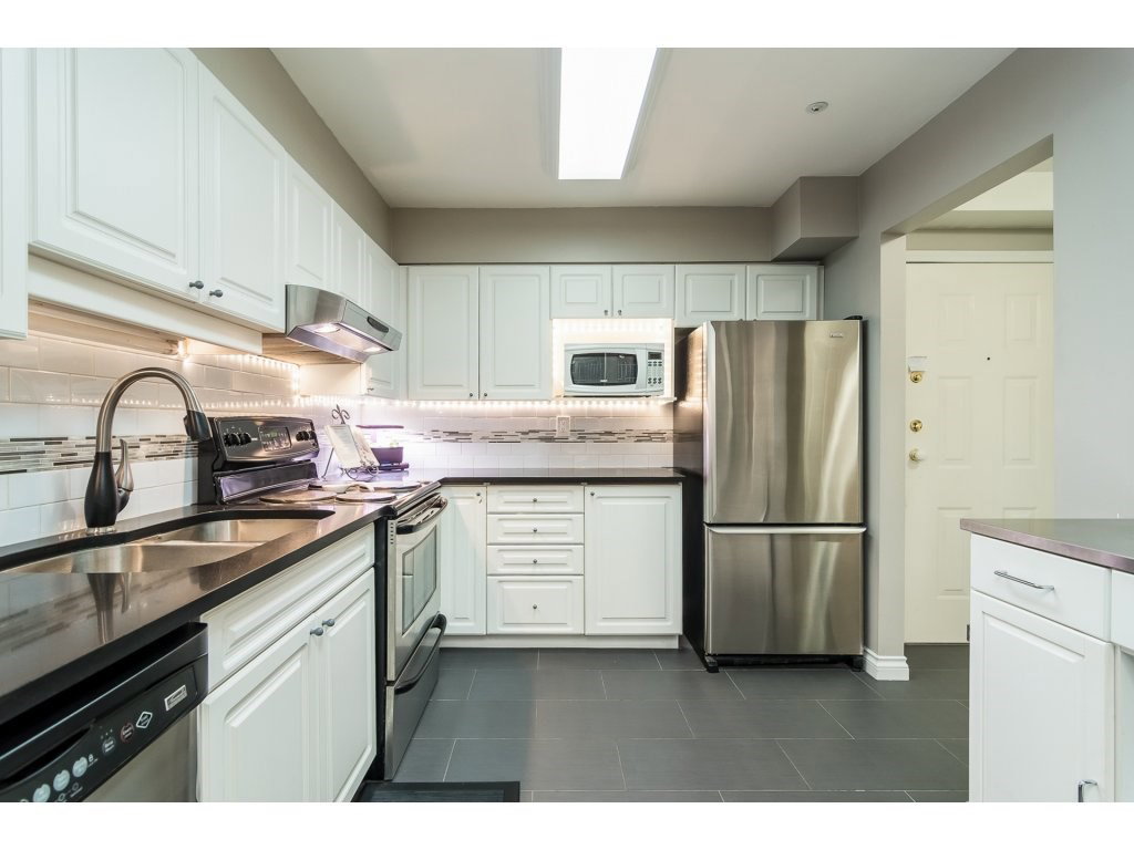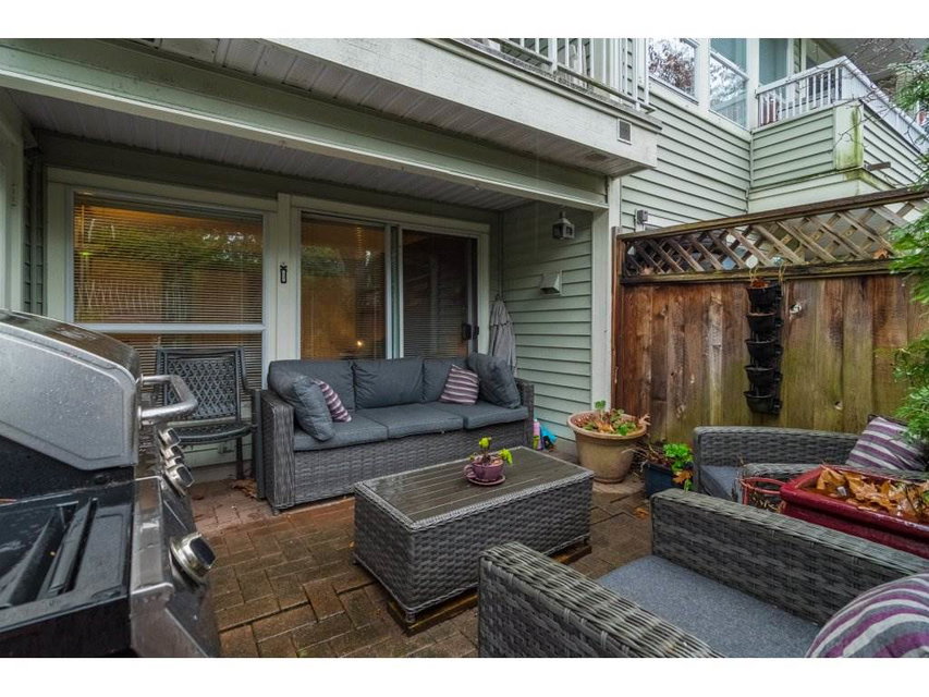 HARTFORD WOODS! Spacious 1 bedroom & den condo in the heart of Guildford and footsteps to Green Timbers Park. This ground floor unit features a large patio for entertaining and a walk out yard perfect for your pet! Nearly 800 sq ft with LOADS of UPDATES! Granite counter tops in Kitchen & bathroom, tile floor in entry & kitchen, stainless appliances & engineered floors in living area. Gas fireplace & hot water included in your strata fee. Property is centrally located with bus stop at your door, steps away from Guildford mall & all major shopping! Complex has resort style amenities including hot tub, sauna, gym, & pool! Roof recently replaced! Nothing to do but move in. 1 secured underground parking spot & storage locker. A 10!