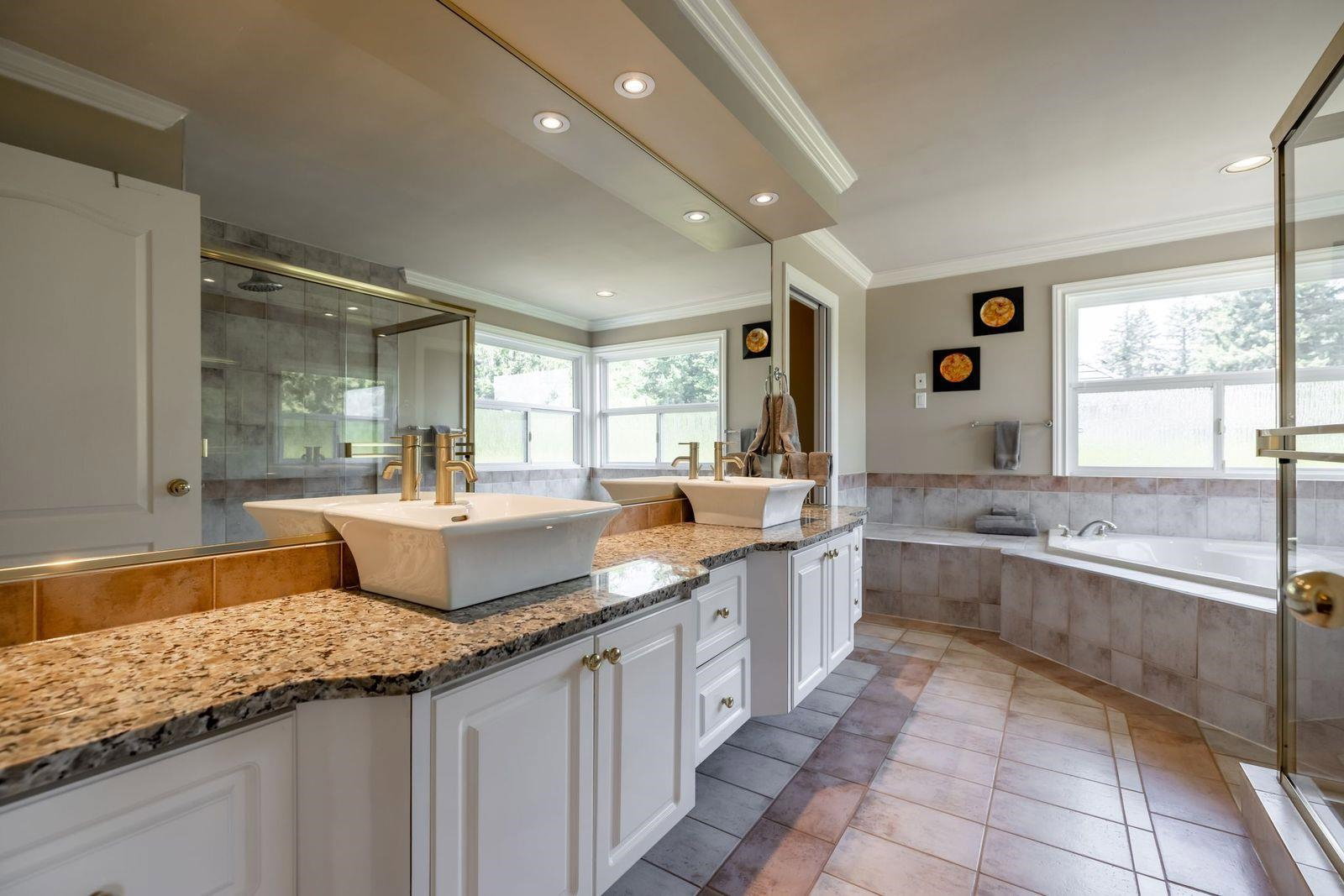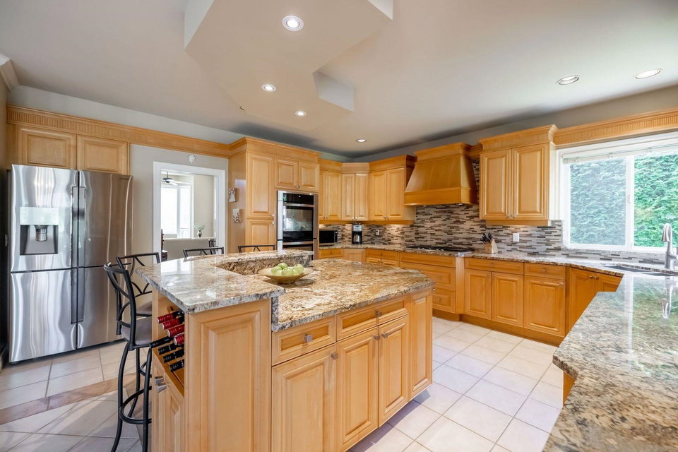 Magnificent PANORAMA RIDGE 2 Level luxury home situtated on a stunning, private half acre lot! Step inside to this fantastic floor plan w grand entry, large living & dining space all w vaulted ceilings making it bright and inviting. Spacious kitchen w granite counter tops, stainless steel appliances, gas range & loads of windows overlooking your own backyard park w towering ceder hedges & multiple sitting areas to entertain. Master on main & bonus office space is great for in laws. 4 generously sized bedrooms upstairs. Beautiful master suite w sitting area, walk in closet & oversized ensuite w double sinks, glass slower & soaker tub. Hot tub & bbq area both covered to enjoy all year around. Triple car garage & bonus side parking. Great street appeal surrounded multi million dollar homes!
