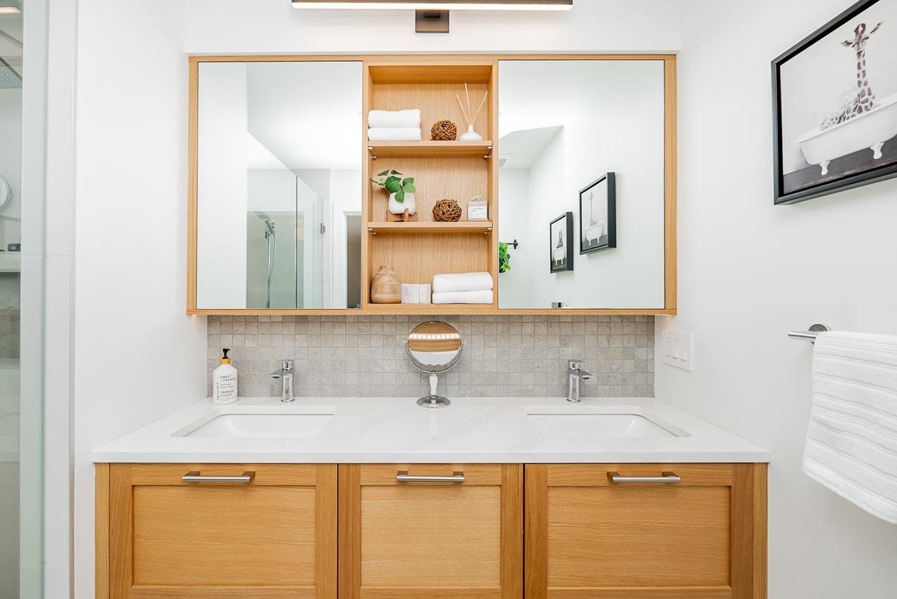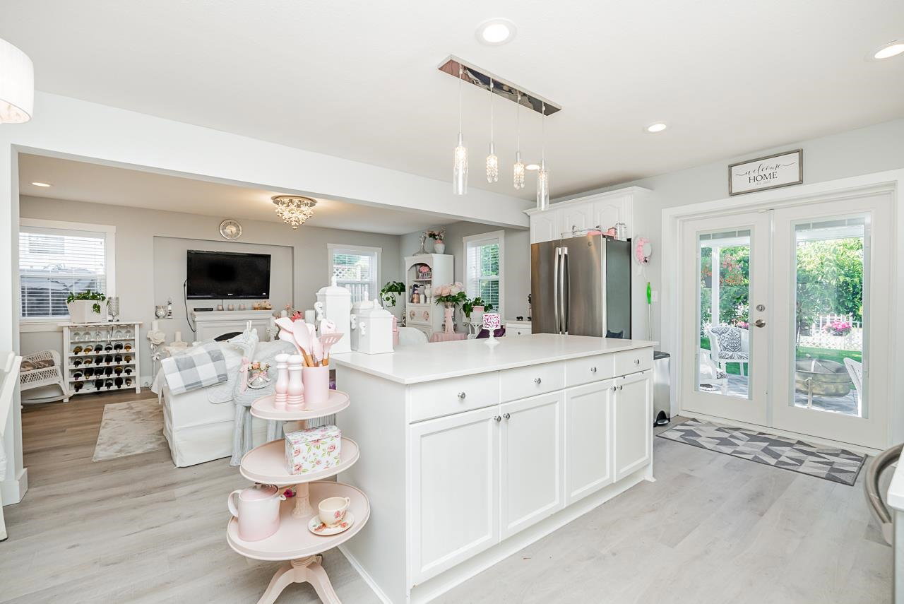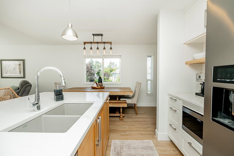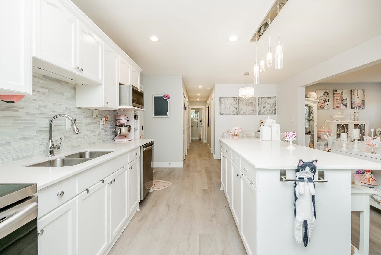 Amazingly renovated home will astound you! W/ open concept custom cabinets, high end appliances, quartz counters, chic backsplash & fixtures, its a culinary heaven. Perfect for cooking meals and entertaining with the charming coffee station. Large California Closets dressing room in the primary suite. Beautiful bathroom w/ walk-in shower, custom vanity & bidet. Enjoy the additional 2 spacious bedrms & gorgeous remodelled main bath. Large 2 bedrm renovated above ground basement suite w/ french doors, quartz counters, new appliances, covered patio. Efficient broiler, tankless H/W, radiant in-floor heating, luxury vinyl floor. New front, interior, garage doors & fresh paint inside/out. Updated laundry. 2 driveways & RV parking. Fruit trees in yard. Open House Sat Sept 9@2-4pm Sun Sept 10 @1-3