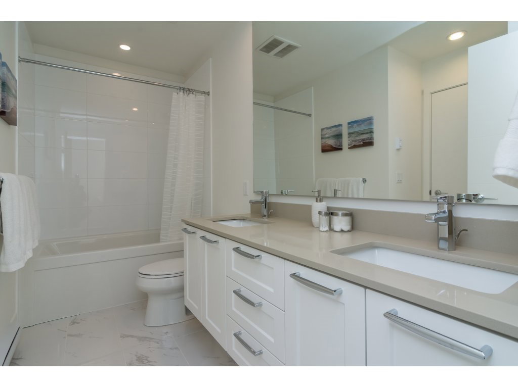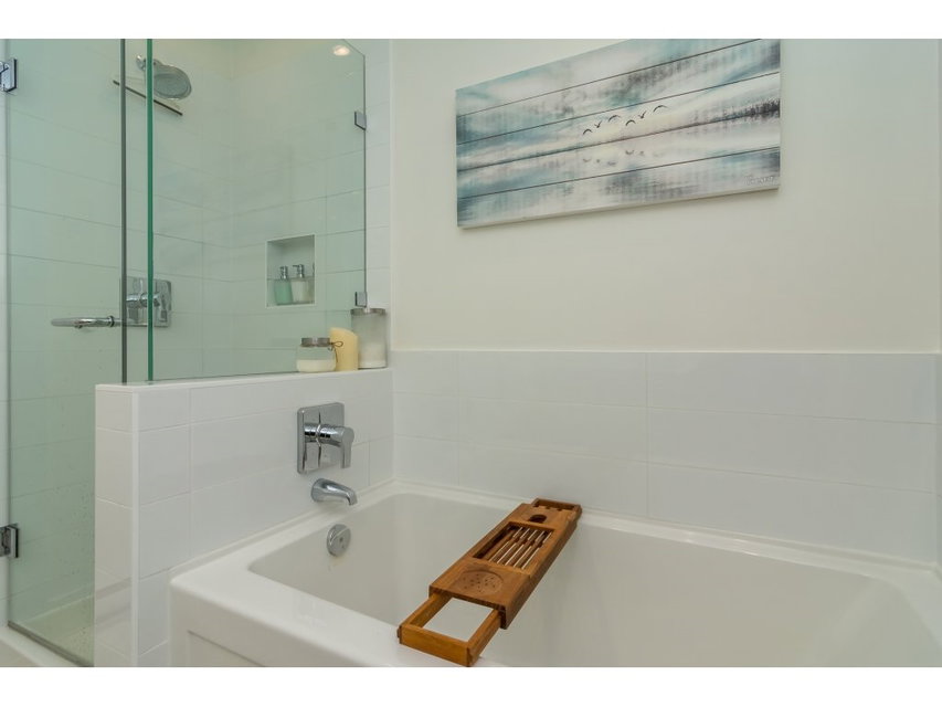WILLS BROOK at THE SOUTHRIDGE CLUB! Aderas premier complex in sunny and vibrant South Surrey. This is the LARGEST layout in the complex in the BEST LOCATION! Backing onto a private ravine, this super quiet 4 bdrm, 4 bath unit boasts over 1800 sq ft of open living space! Only 1 year old! Stunning floor plan w sleek quartz countertops, elegant porcelain tiles in washrooms, Jenn-Air stainless steel appliances, gas range, AIR CONDITIONING & a massive dining area to entertain! 3 spacious bdrms up. Rec room downstairs (could be 4th bdrm) BONUS double garage & 2 car parking pad! The South Ridge Club includes a heated pool, fully equipped exercise room, cozy lounge, gym, theater room and large gourmet kitchen! NO GST! 10 OUT OF 10!