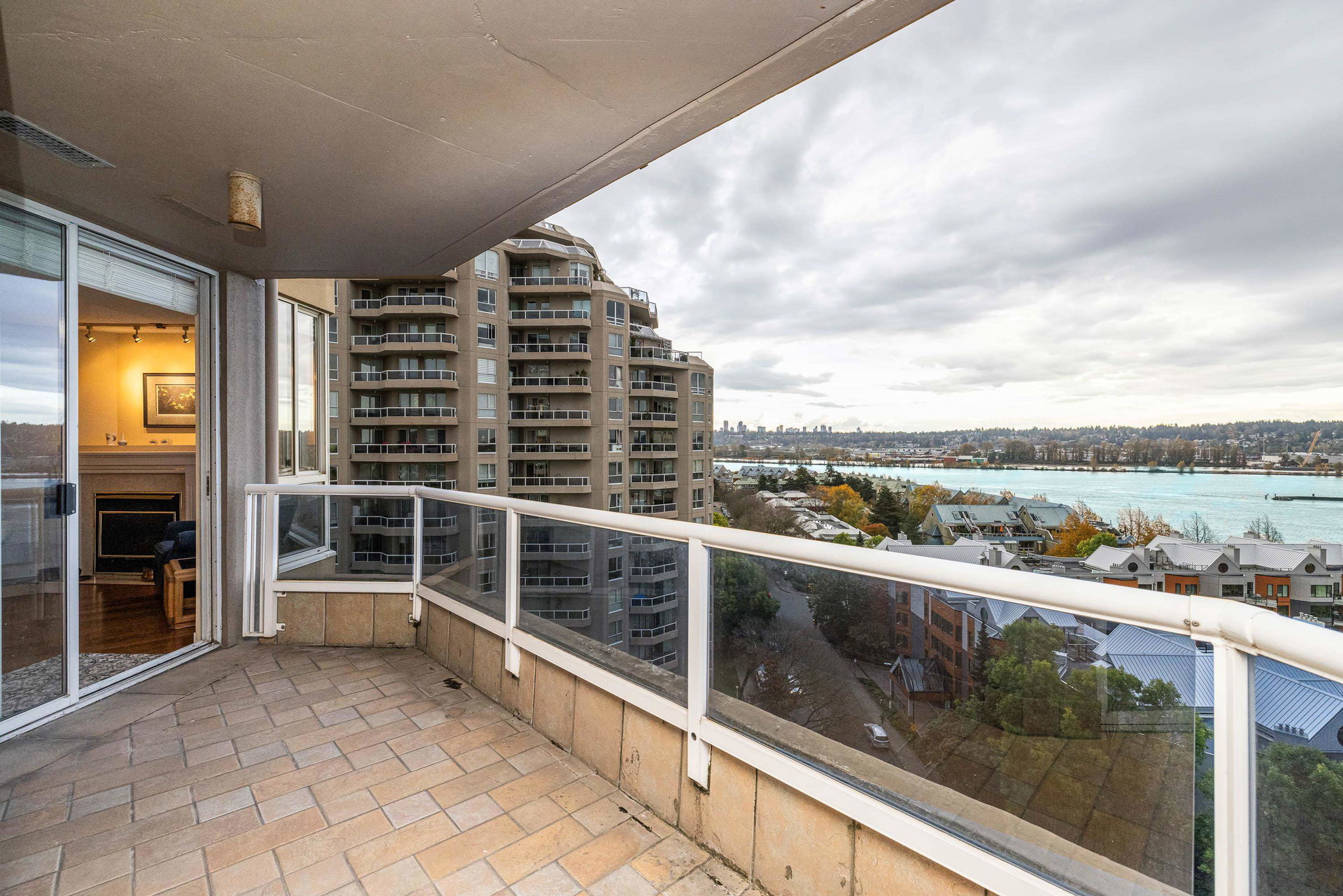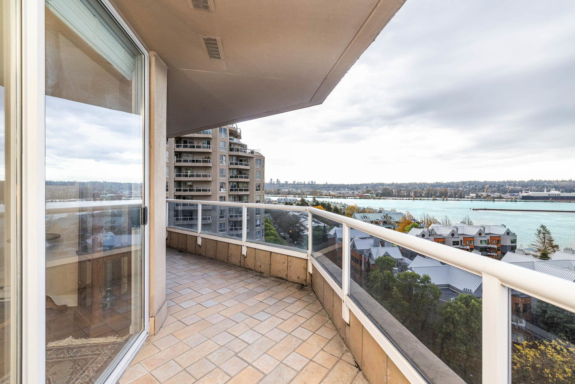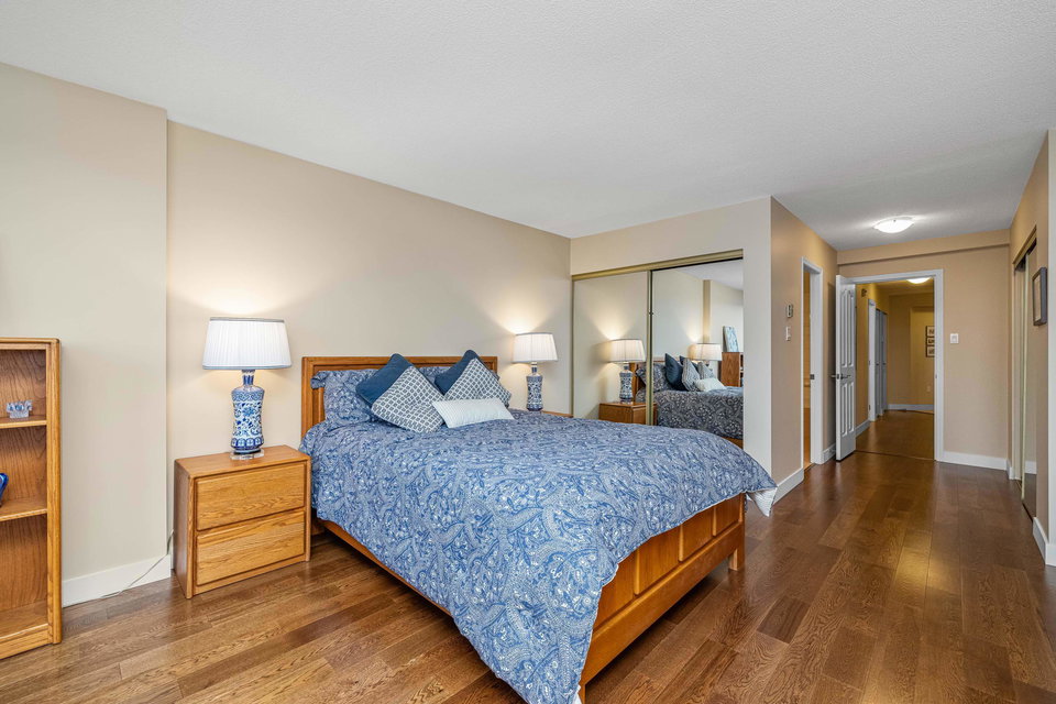 Walk in and be WOWED! This SOUTHWEST CORNER is a sprawling 1421sf of immaculately kept space and has PANORAMIC RIVER VIEWS from every room! Gorgeous hardwood floors are in pristine condition with a beautifully renovated kitchen – all new stainless steel appliances, quartz counters, all new lighting, and freshened up paint throughout. Both bedrooms are spacious enough for beds and bedroom furniture with ample closet space. Bonus large laundry room + linen closet! Enjoy the fresh air and views from the wraparound balcony, accessible from every room. Complex has all the condo amenities you could possibly want – pool, sauna, gym, games room, guest suite, and more! – and you’re on the river in the heart of it all in historical New Westminster!