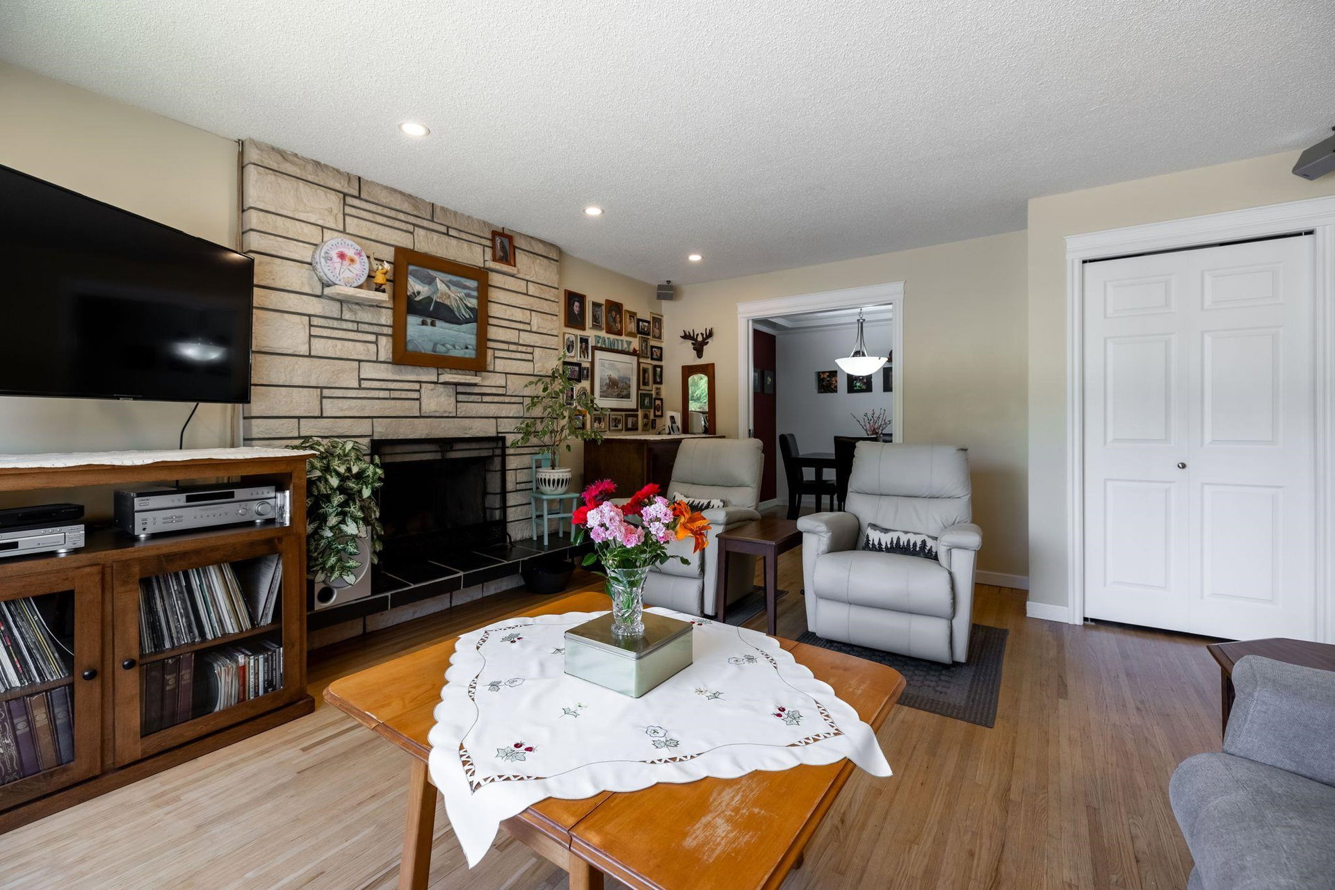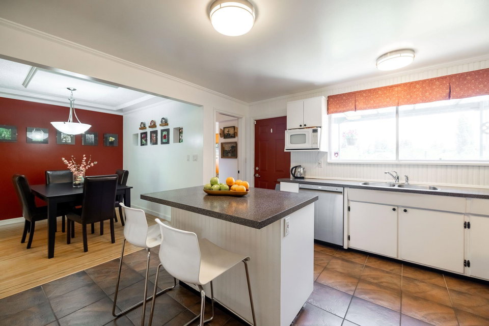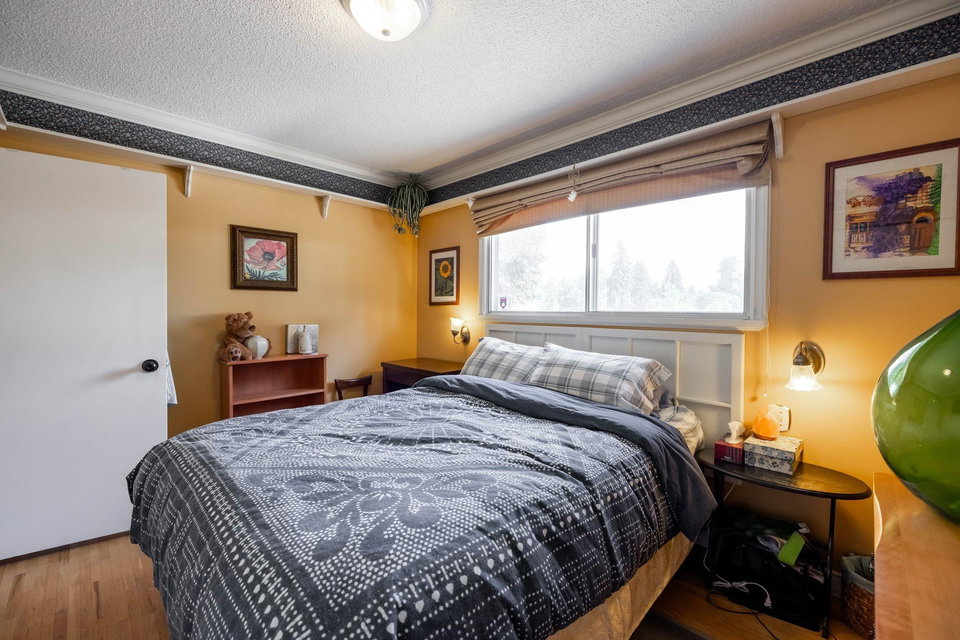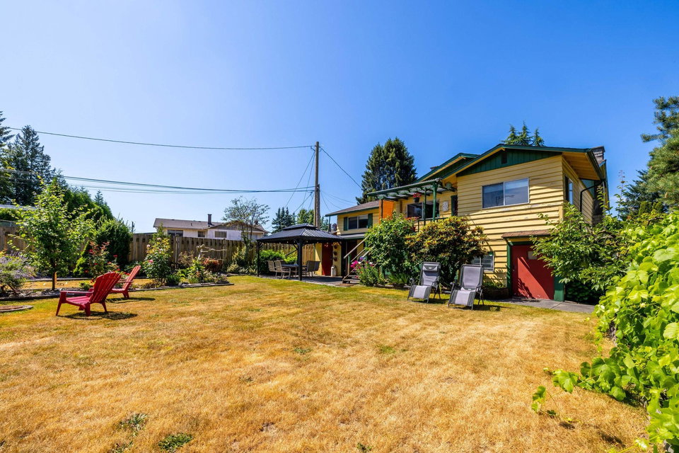 Popular BIRDLAND neighbourhood in Bolivar Heights! This well cared for basement entry home shows pride of ownership and sits on a huge 11,312 sq ft lot (1/4 acre). Your very own piece of paradise w fruit trees, mature plants, beautiful flowers, greenhouse & loads of storage space. Step inside to this immaculate 2,113 sq ft home w original hardwood flooring, warm paint tones & spacious rooms. Bright kitchen overlooking backyard. Stainless steel appliances, island for entertaining & bonus office/ guest room off kitchen! Downstairs has full laundry area & potential for mortgage helper! Updated furnace w AIR CONDITIONING. 11 yr old roof. Located on great street & easy access to HWY 1 & all the amenities at Guildford Mall close by. This home been in the family for years & is a gem!