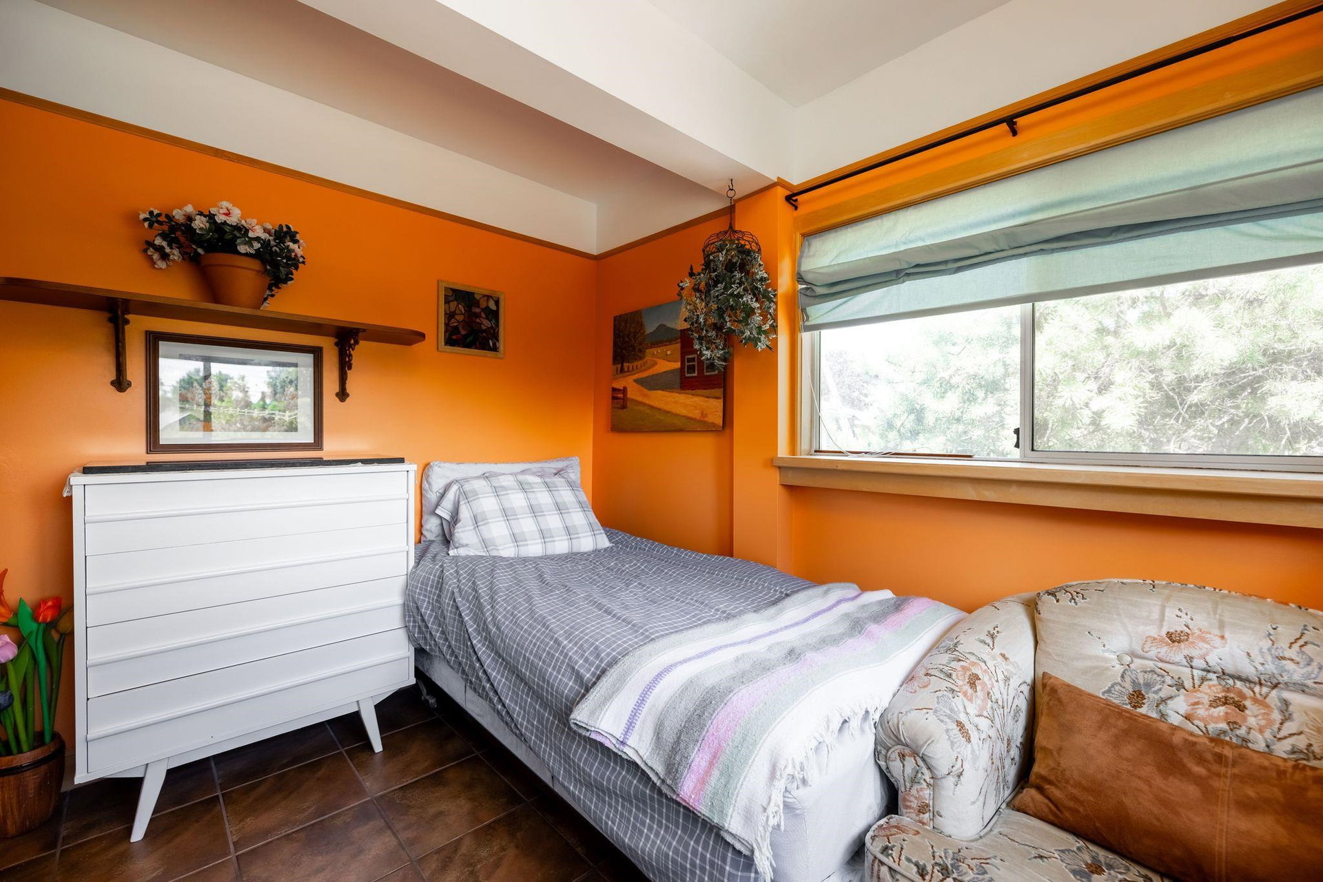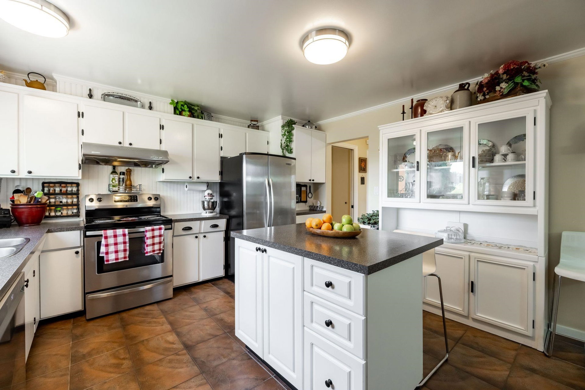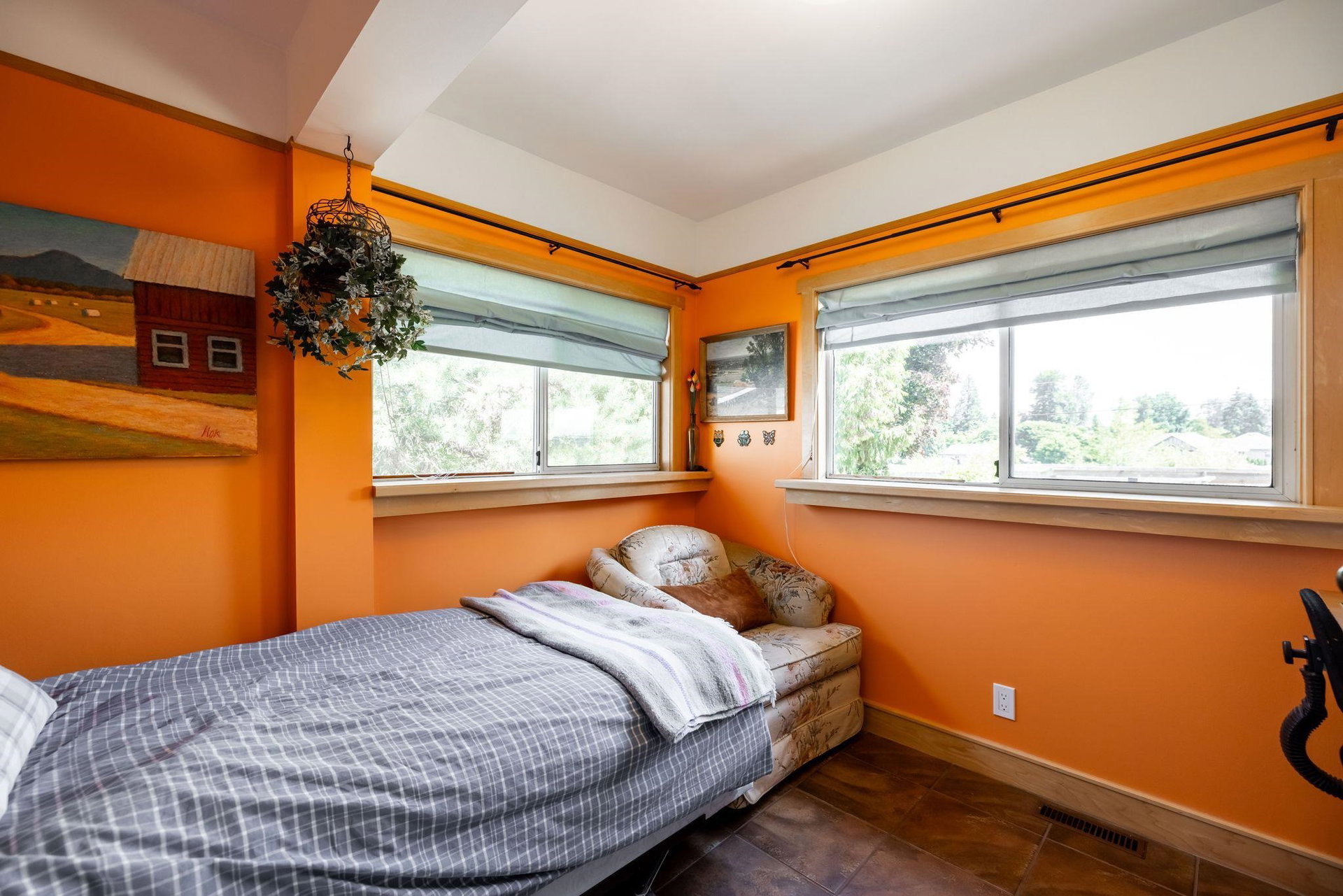 Popular BIRDLAND neighbourhood in Bolivar Heights! This well cared for basement entry home shows pride of ownership and sits on a huge 11,312 sq ft lot (1/4 acre). Your very own piece of paradise w fruit trees, mature plants, beautiful flowers, greenhouse & loads of storage space. Step inside to this immaculate 2,113 sq ft home w original hardwood flooring, warm paint tones & spacious rooms. Bright kitchen overlooking backyard. Stainless steel appliances, island for entertaining & bonus office/ guest room off kitchen! Downstairs has full laundry area & potential for mortgage helper! Updated furnace w AIR CONDITIONING. 11 yr old roof. Located on great street & easy access to HWY 1 & all the amenities at Guildford Mall close by. This home been in the family for years & is a gem!