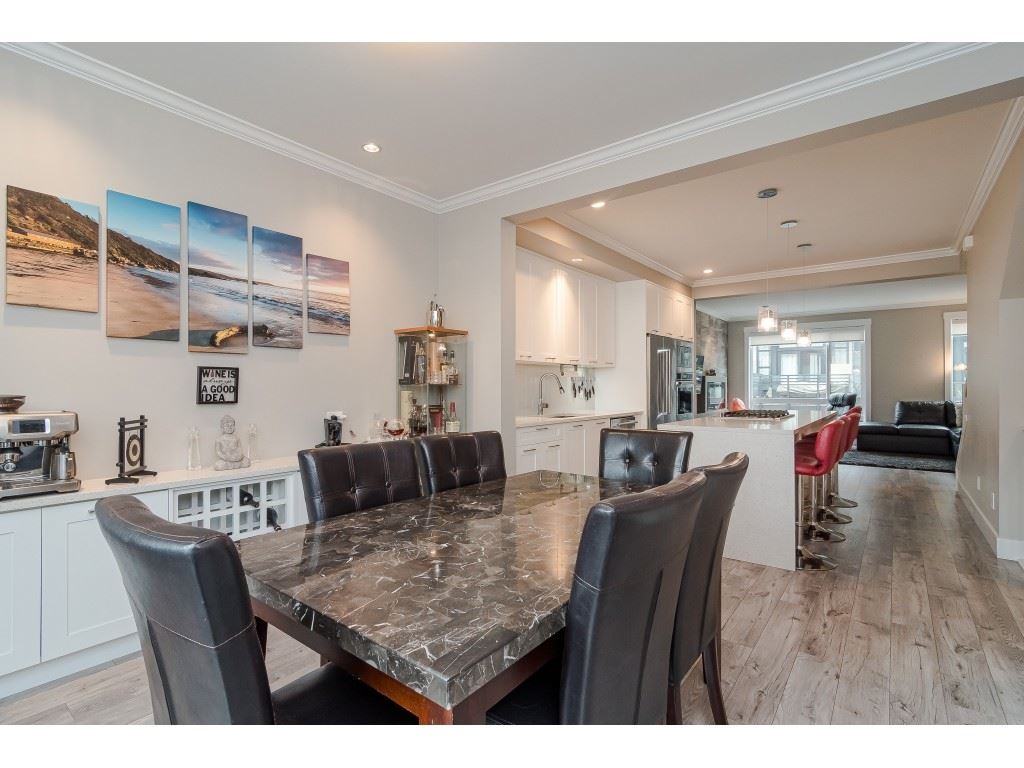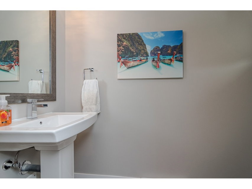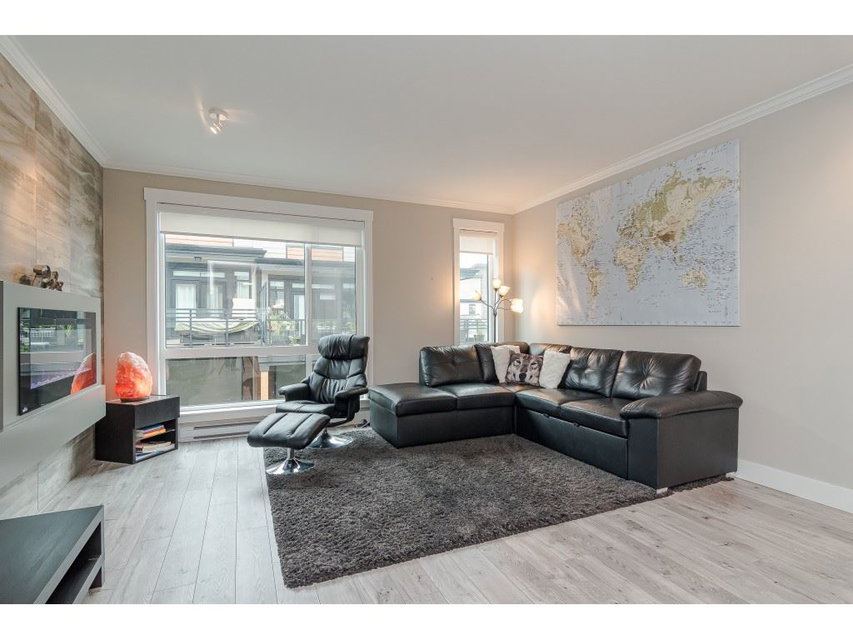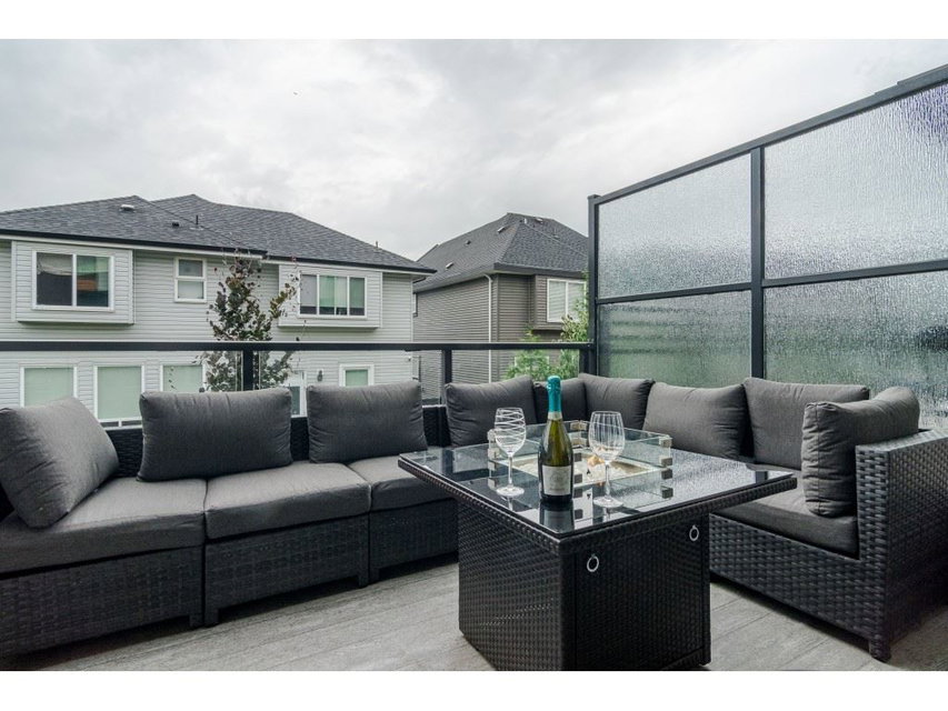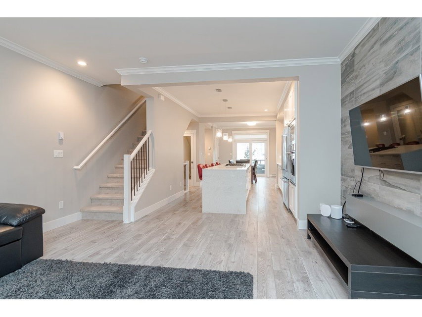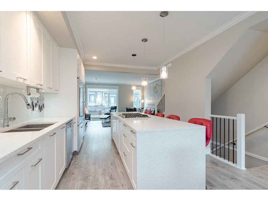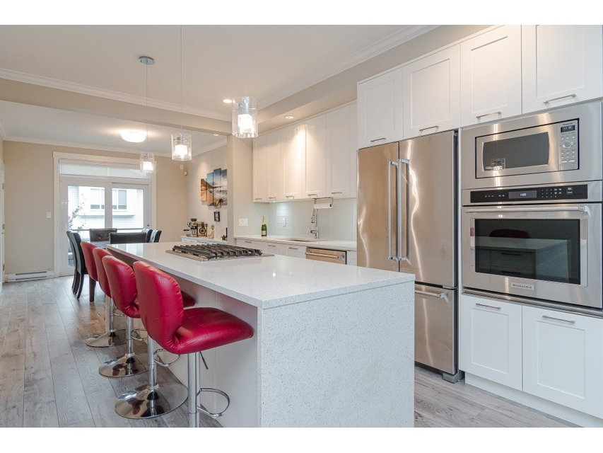 HARVEST AT BOSE FARMS! This is your chance to own in this incredible highly sought after development in the heart of CLOVERDALE! This modern designed 3 bdrm, 3 bath townhouse is only 3 years young & features a bright, open floor plan w 9′ ceilings, crown mouldings, beautiful oversized island for entertaining & powder 2 piece on main floor! Gourmet kitchen w stainless steel appliances, gas range, under mount sink & room for bar stools. Stunning tiled living room feature wall with fireplace. Sliding door off dining area leads to your private back deck w built in gas bbq hookup! Spacious master bedroom w double sinks in ensuite & shower. Tankless hot water system. 2 car garage & additional storage room. Fenced rear yard & patio area is perfect for your pet! Footsteps to Everything!