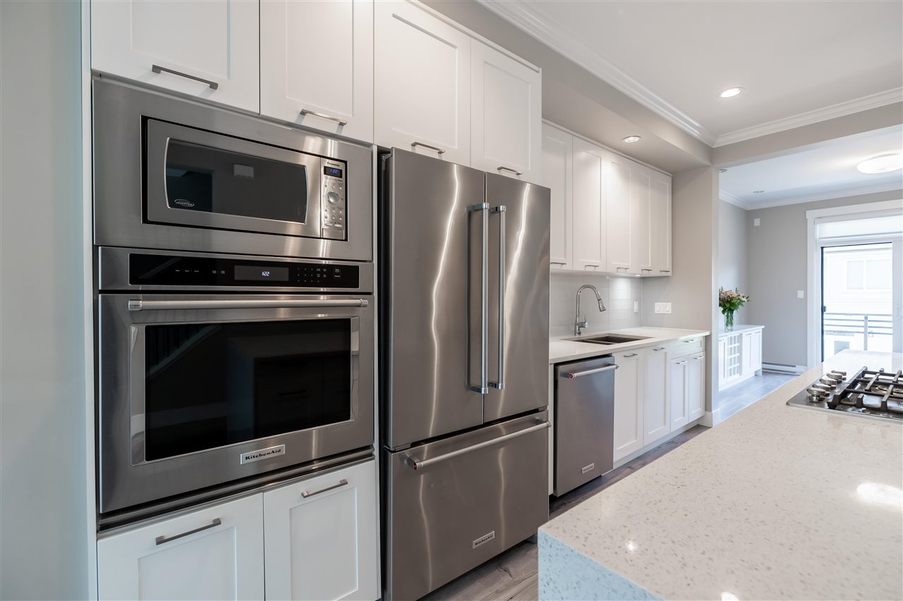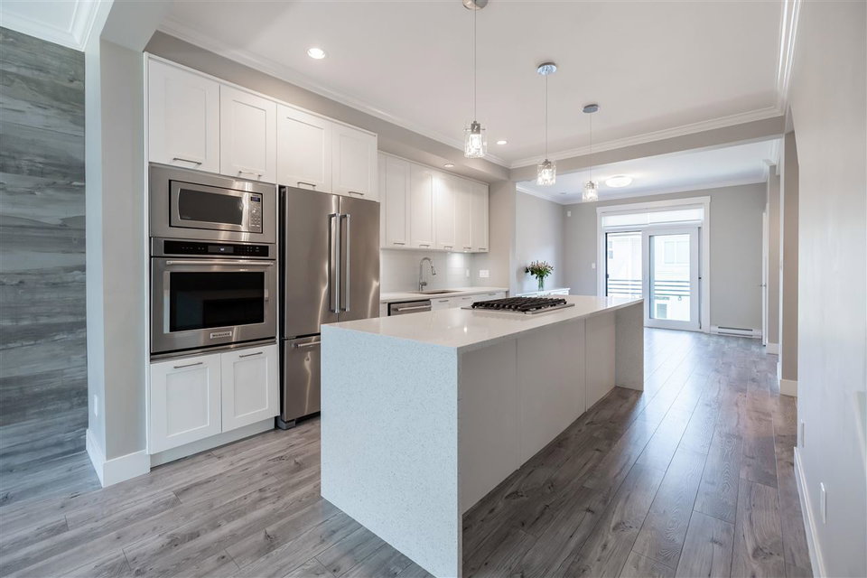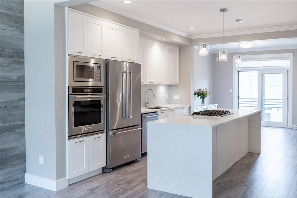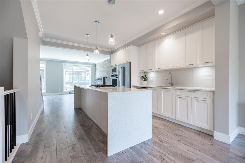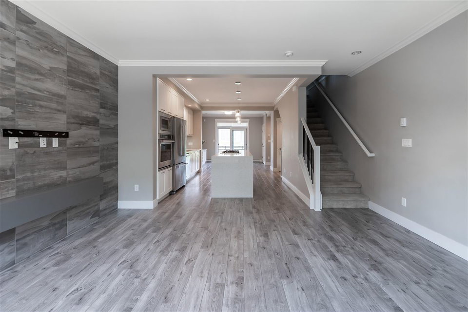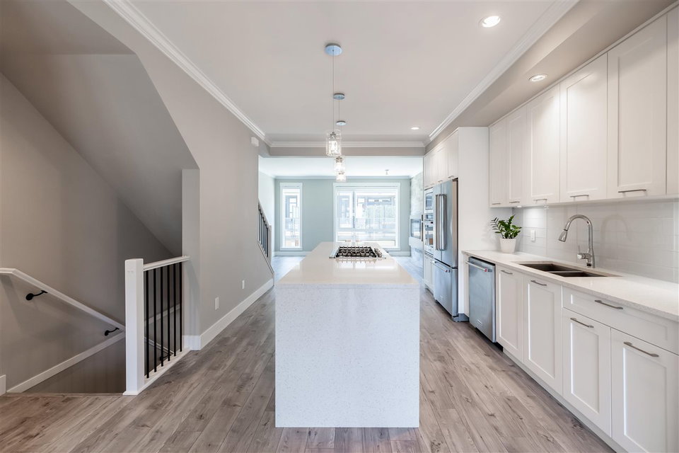 HARVEST AT BOSE FARMS! This is your chance to own in this incredible highly sought after development in the heart of CLOVERDALE! This modern designed 3 bdrm, 3 bath townhouse is only 5 years old & features a bright, open floor plan w 9′ ceilings, crown moldings, beautiful oversized island for entertaining & powder 2 piece on main floor! Gourmet kitchen w stainless steel appliances, gas range, under mount sink & room for bar stools. Stunning tiled living room feature wall with fireplace. Sliding door off dining area leads to your private back deck w built in gas bbq hookup! Spacious master bedroom w double sinks in ensuite & shower. Tankless hot water system. 2 car garage & additional storage room. Fenced rear yard & patio area is perfect for your pet! Footsteps to Everything!