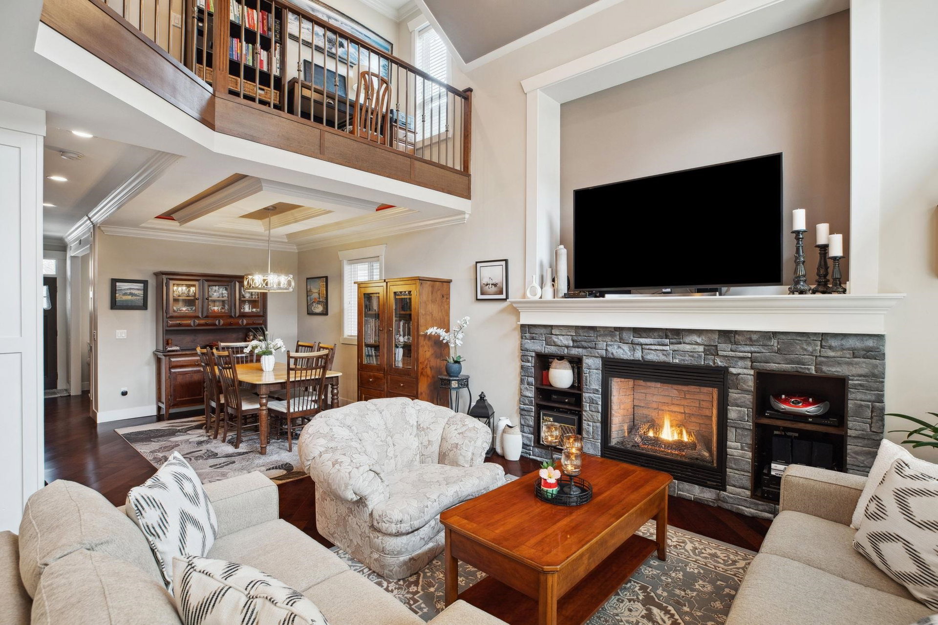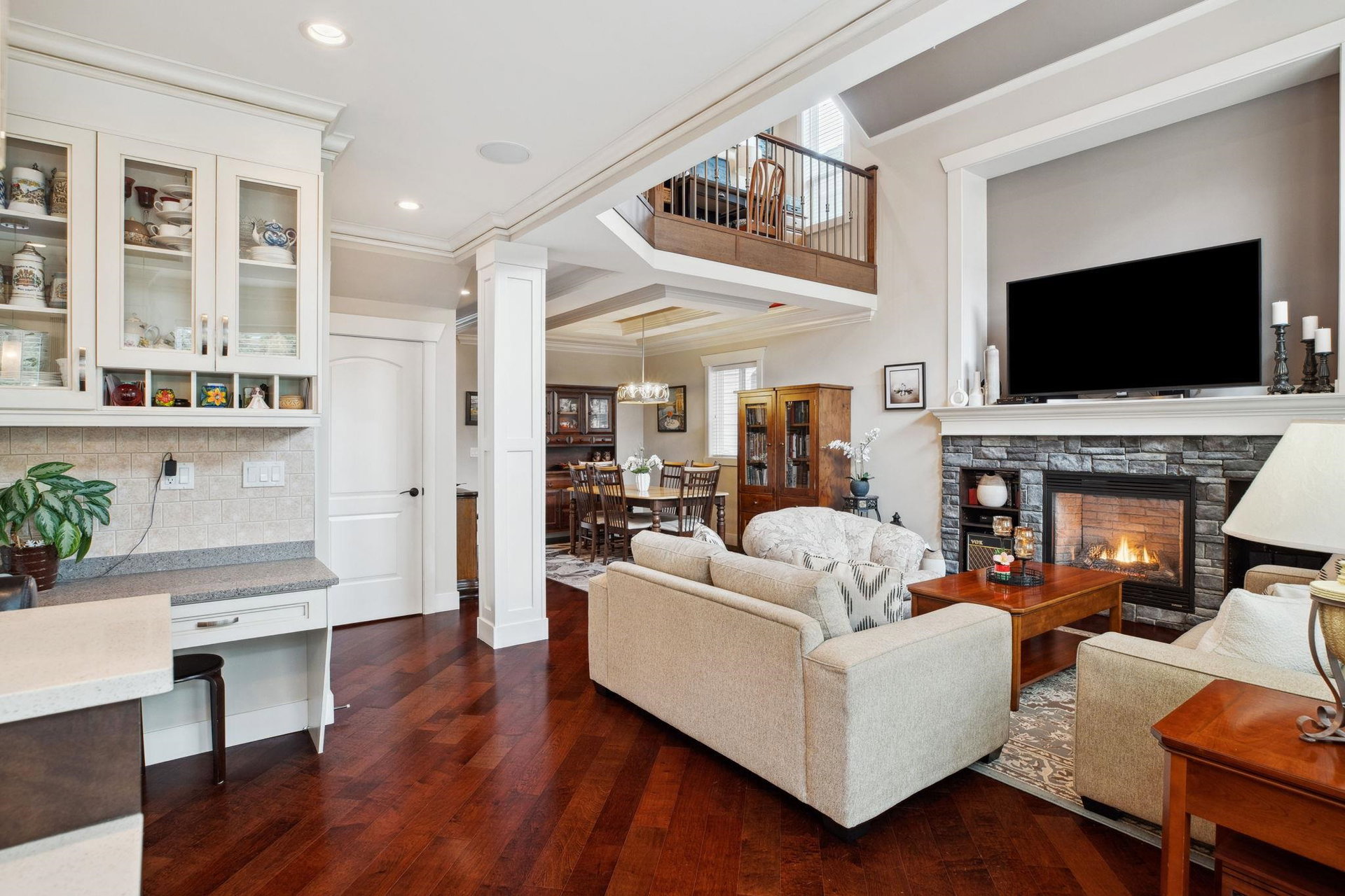 Stunning 5 Bedroom Home with Premium Finishes & steps to the Golf Course. This impeccably crafted home offers a bright and inviting open-concept layout, highlighted by a soaring double-height ceiling in the family room. This true turn-key property boasts stainless steel appliances, custom blinds, engineered hardwood floors, and quartz countertops. Luxurious touches abound, including soft-close cabinets, a relaxing Jacuzzi tub, two cozy gas fireplaces, and 9’ ceilings on the main level. The home is wired for sound, has custom closet organizers, and a built-in vacuum & alarm system. A generous 1 bedroom suite, Private covered sundeck in a sun-drenched south-facing backyard, framed by an 11’ cedar privacy hedge. Don’t miss out sure to impress!