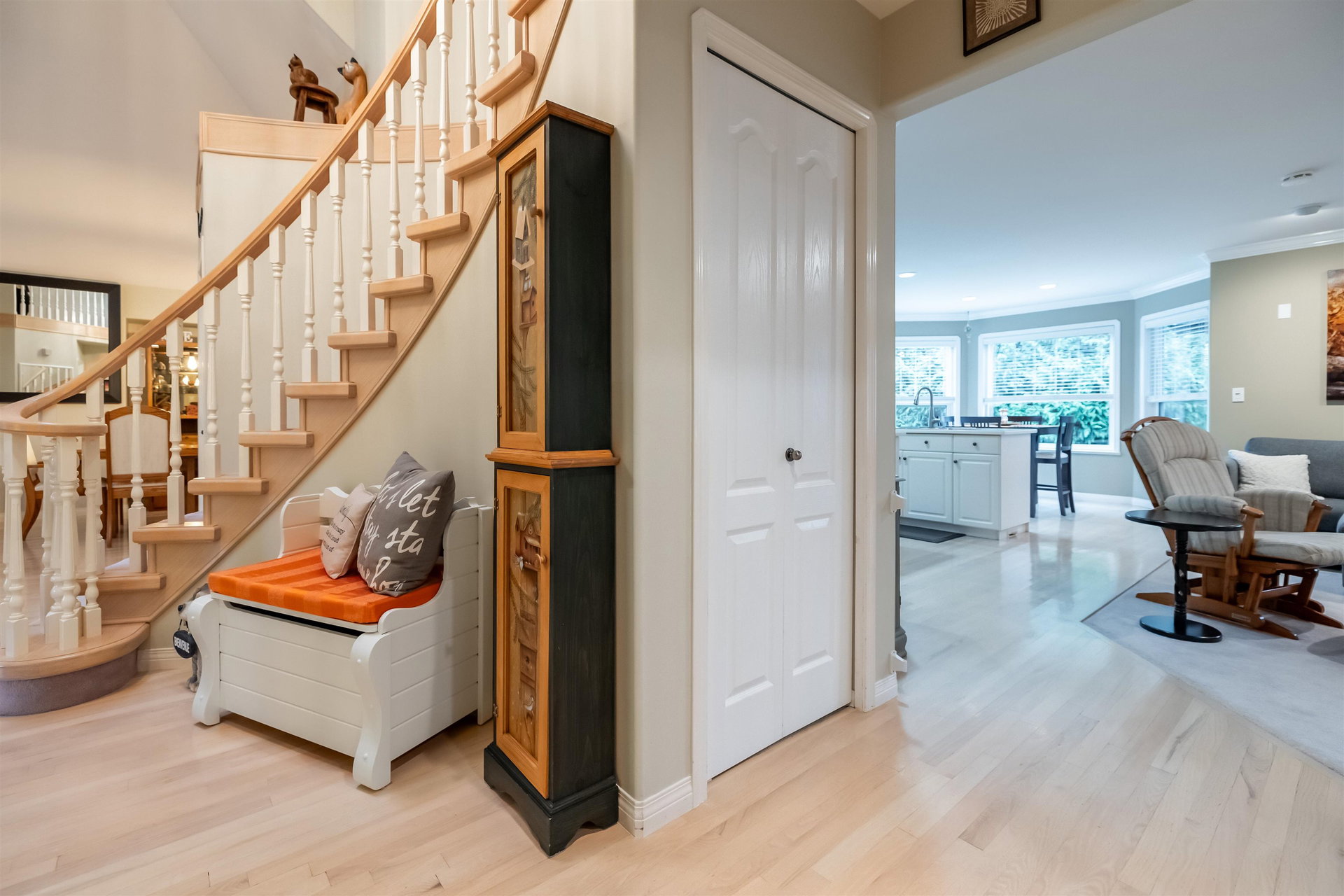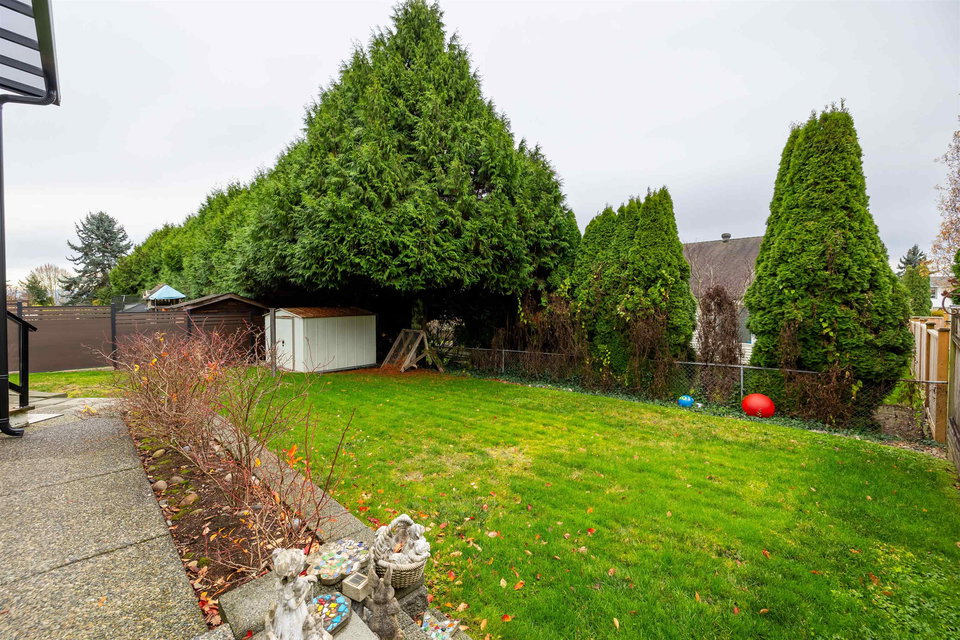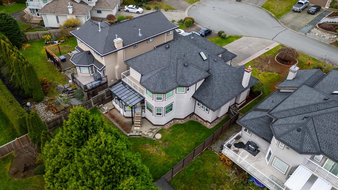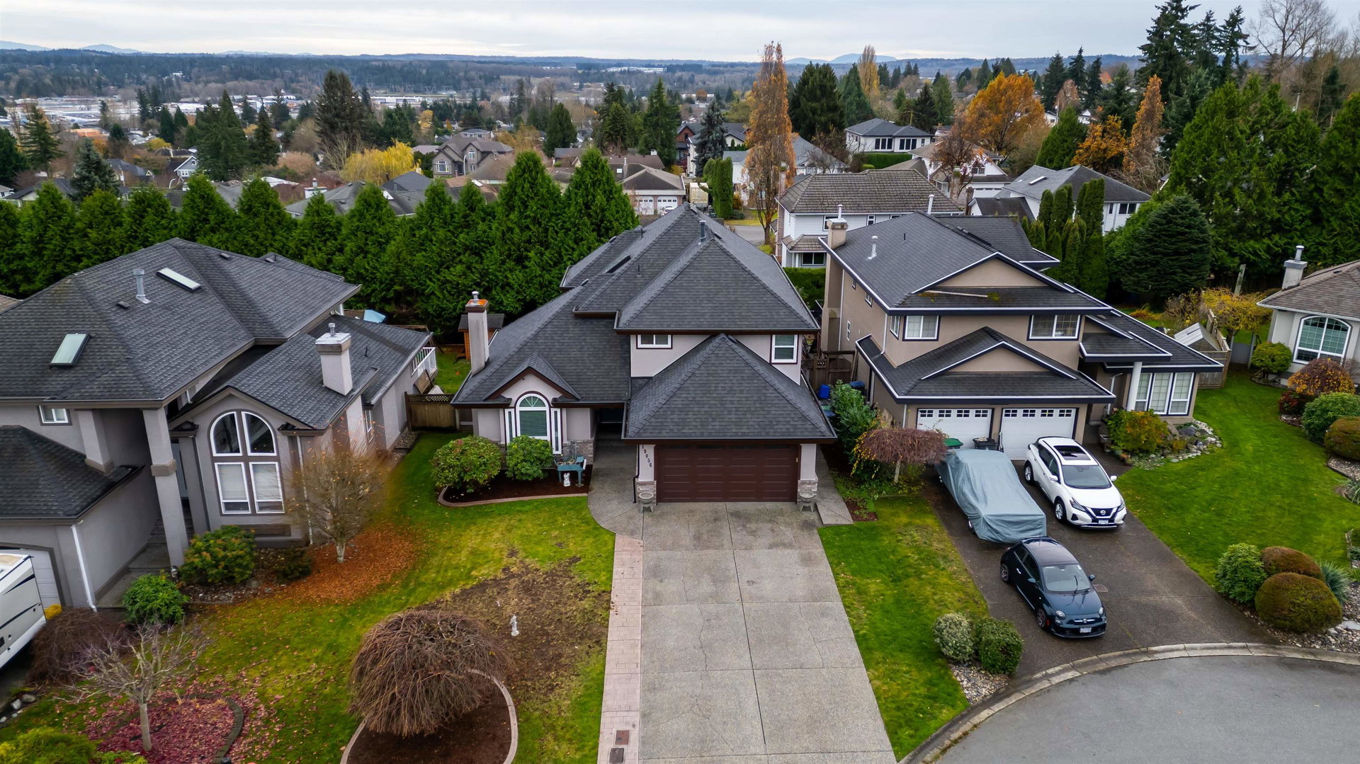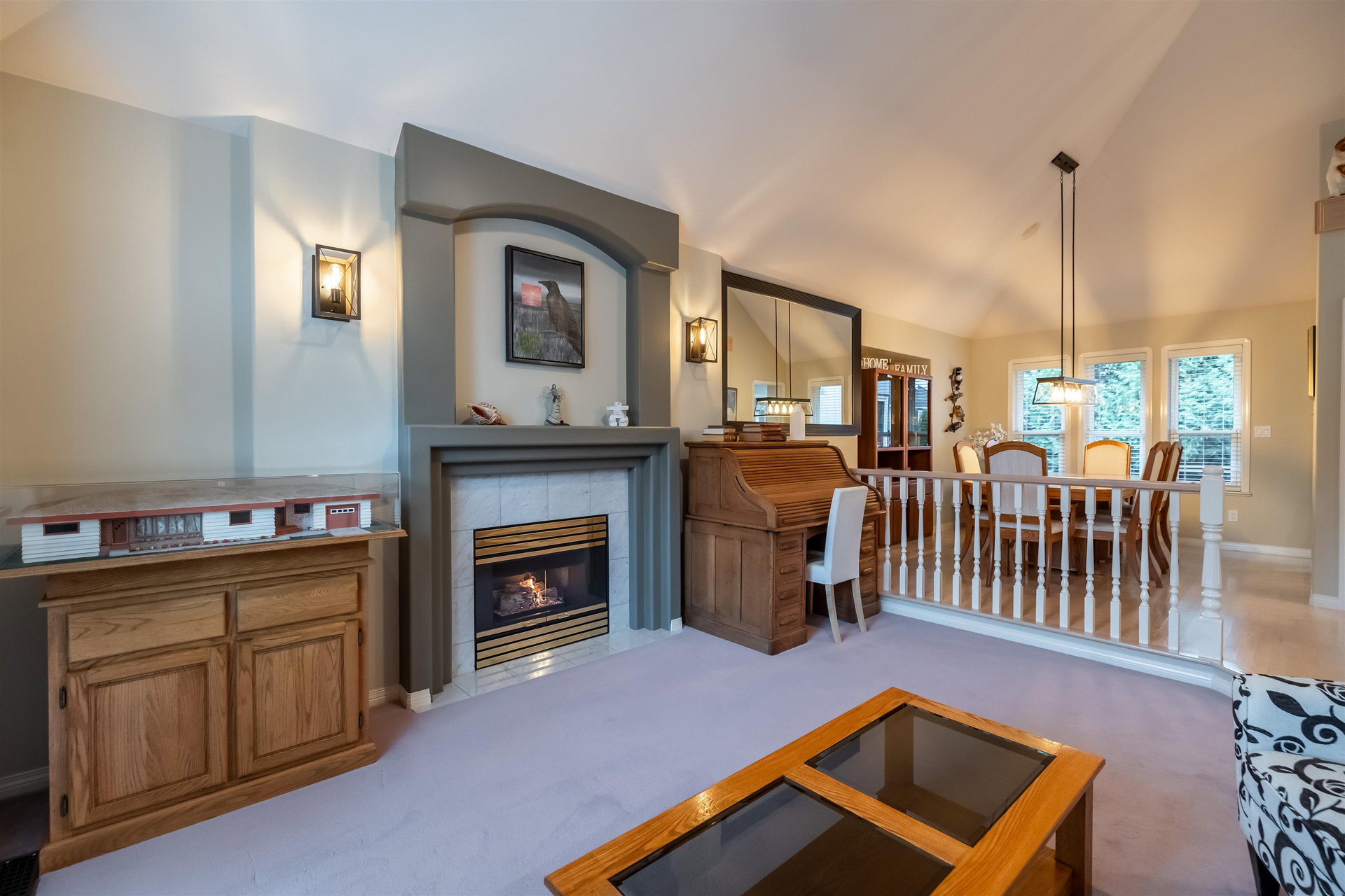 Charming Cloverdale 2 level family home located on quiet cul de sac in fantastic neighborhood! This 2482 sq ft home features 3 oversized bedrooms up & 1 den/bedroom on main floor which makes a great home office. Well maintained home situated on a private 7350 sq ft lot. Great layout with towering ceilings in entry & living space perfect for entertaining & everyday living. Gas fireplace in sunken living space, spacious dining area & large entry make this home bright and airy. White kitchen has loads of cabinets, stainless steel appliances, gas range & island. Bonus eating area & adjoining family room w gas fireplace. Sliding door leads to covered back deck. Huge Master suite w walk in closet & beautiful ensuite. Updated Roof, furnace & hot water tank. Loads of parking for your RV!
