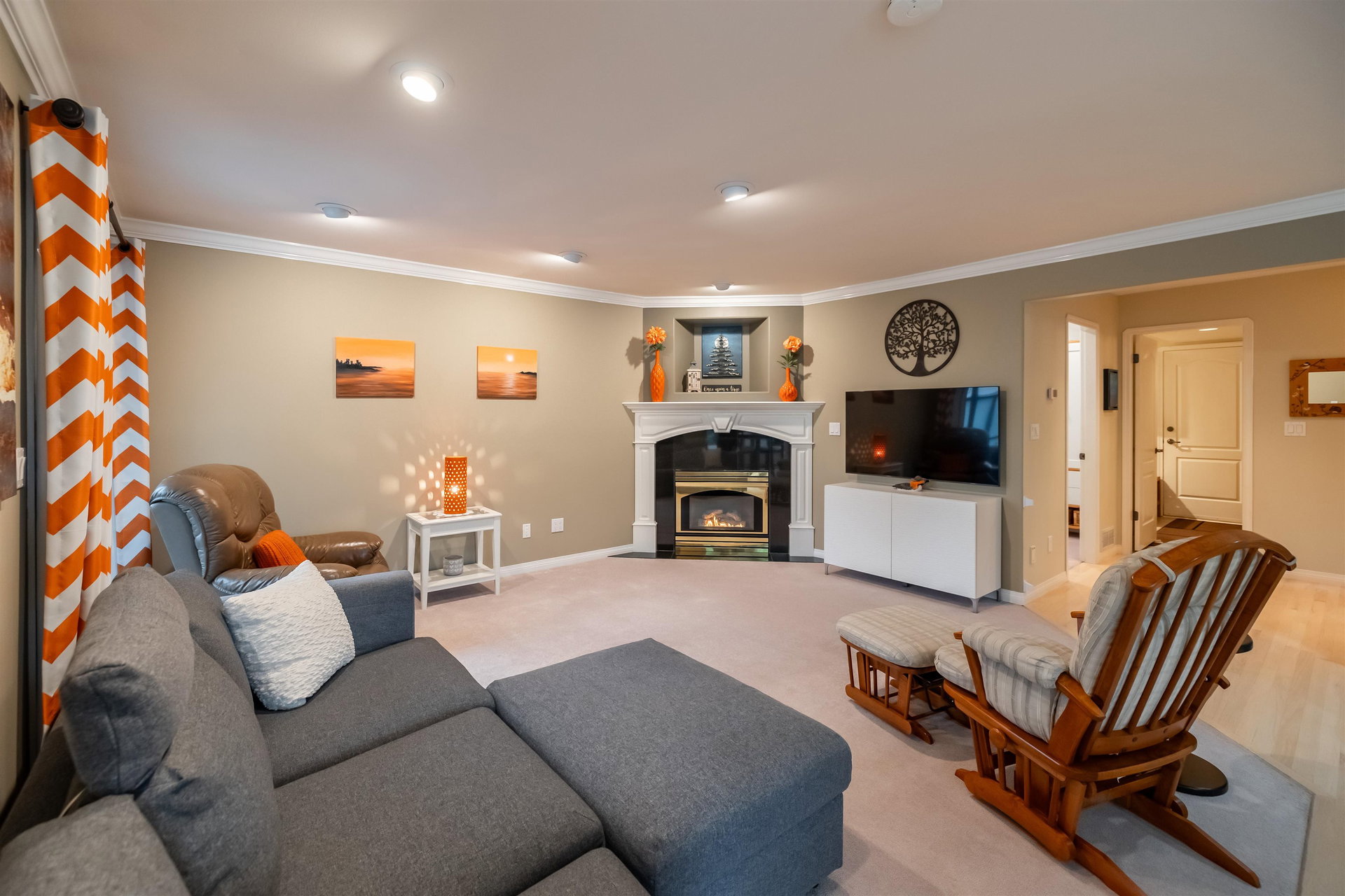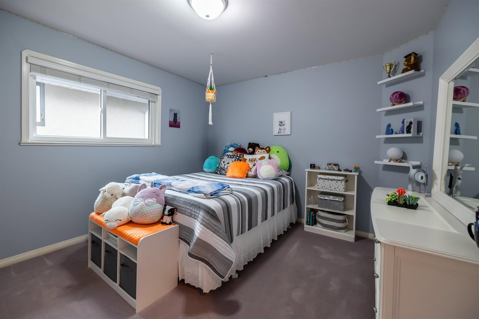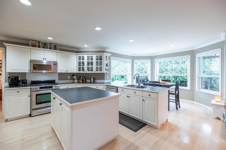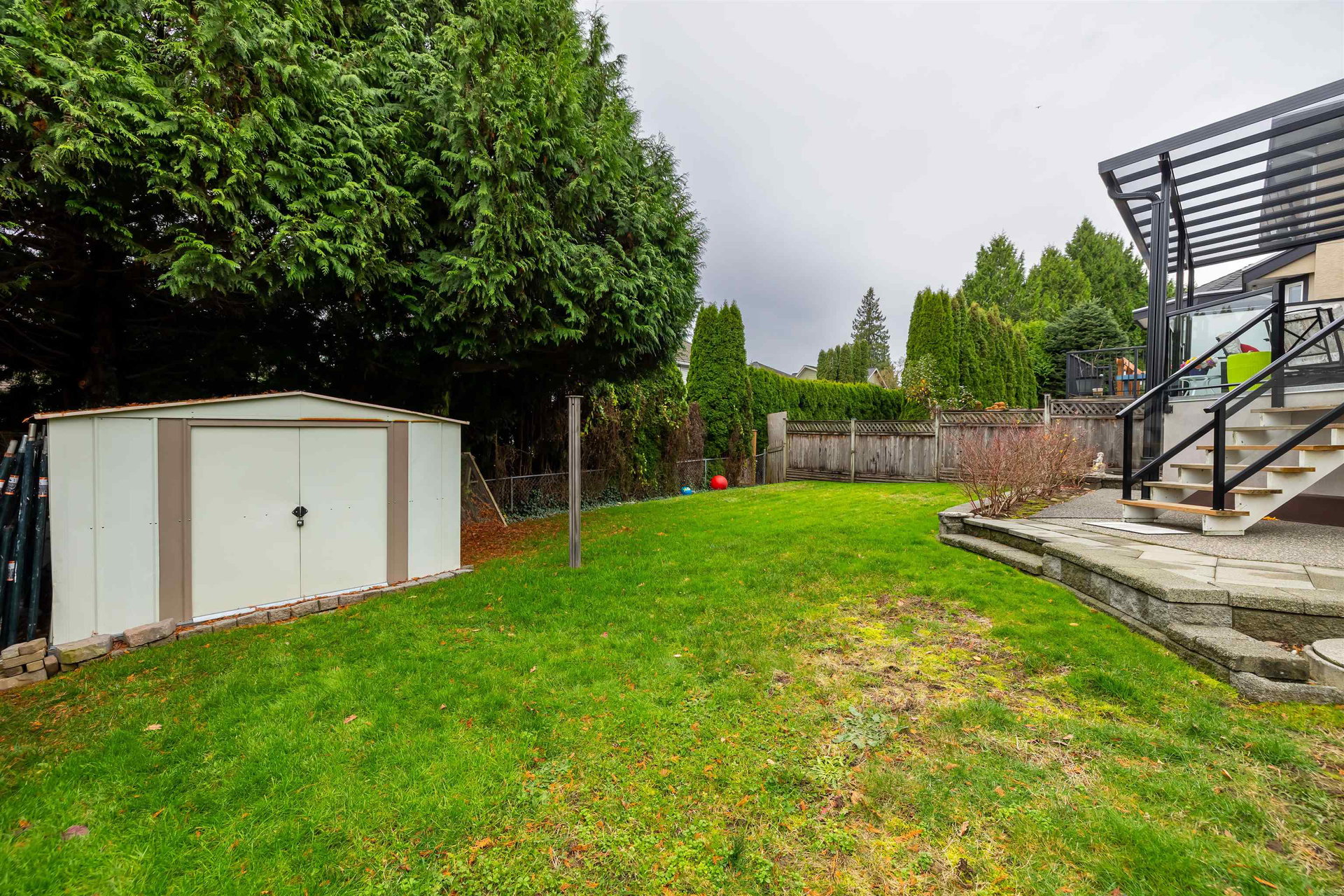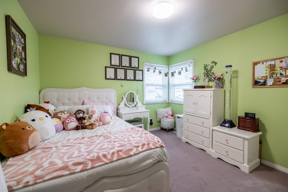 Charming Cloverdale 2 level family home located on quiet cul de sac in fantastic neighborhood! This 2482 sq ft home features 3 oversized bedrooms up & 1 den/bedroom on main floor which makes a great home office. Well maintained home situated on a private 7350 sq ft lot. Great layout with towering ceilings in entry & living space perfect for entertaining & everyday living. Gas fireplace in sunken living space, spacious dining area & large entry make this home bright and airy. White kitchen has loads of cabinets, stainless steel appliances, gas range & island. Bonus eating area & adjoining family room w gas fireplace. Sliding door leads to covered back deck. Huge Master suite w walk in closet & beautiful ensuite. Updated Roof, furnace & hot water tank. Loads of parking for your RV!