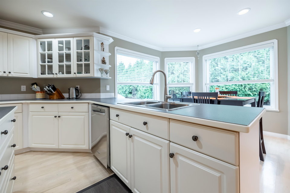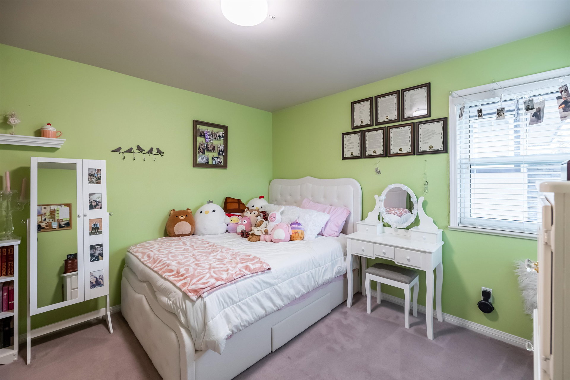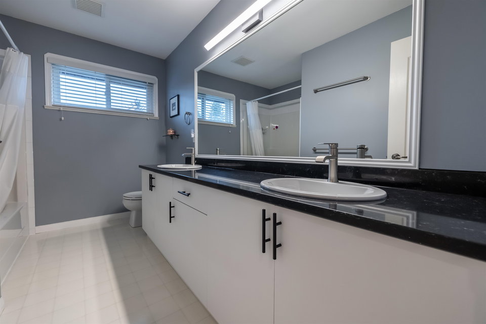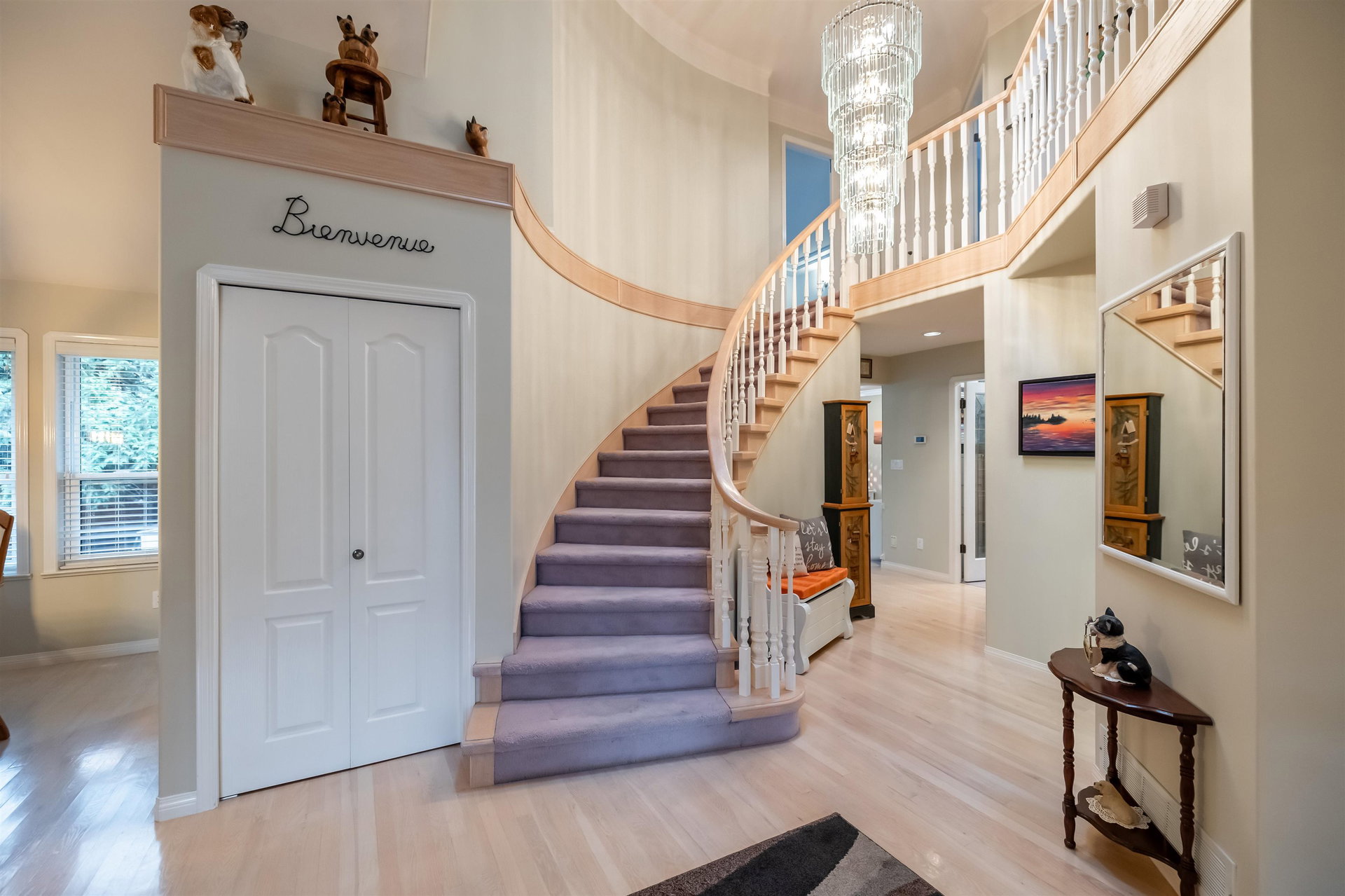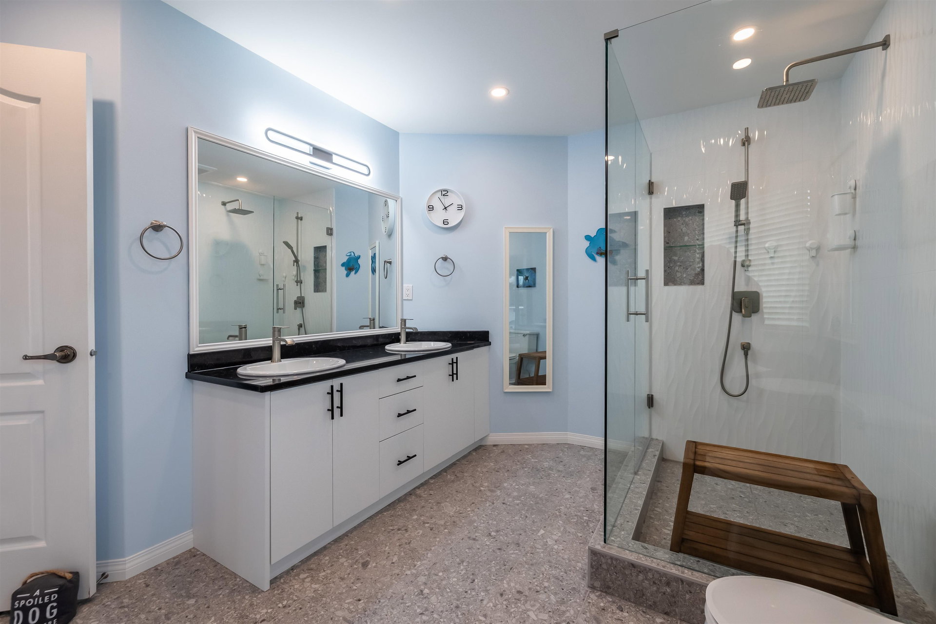 Charming Cloverdale 2 level family home located on quiet cul de sac in fantastic neighborhood! This 2482 sq ft home features 3 oversized bedrooms up & 1 den/bedroom on main floor which makes a great home office. Well maintained home situated on a private 7350 sq ft lot. Great layout with towering ceilings in entry & living space perfect for entertaining & everyday living. Gas fireplace in sunken living space, spacious dining area & large entry make this home bright and airy. White kitchen has loads of cabinets, stainless steel appliances, gas range & island. Bonus eating area & adjoining family room w gas fireplace. Sliding door leads to covered back deck. Huge Master suite w walk in closet & beautiful ensuite. Updated Roof, furnace & hot water tank. Loads of parking for your RV!