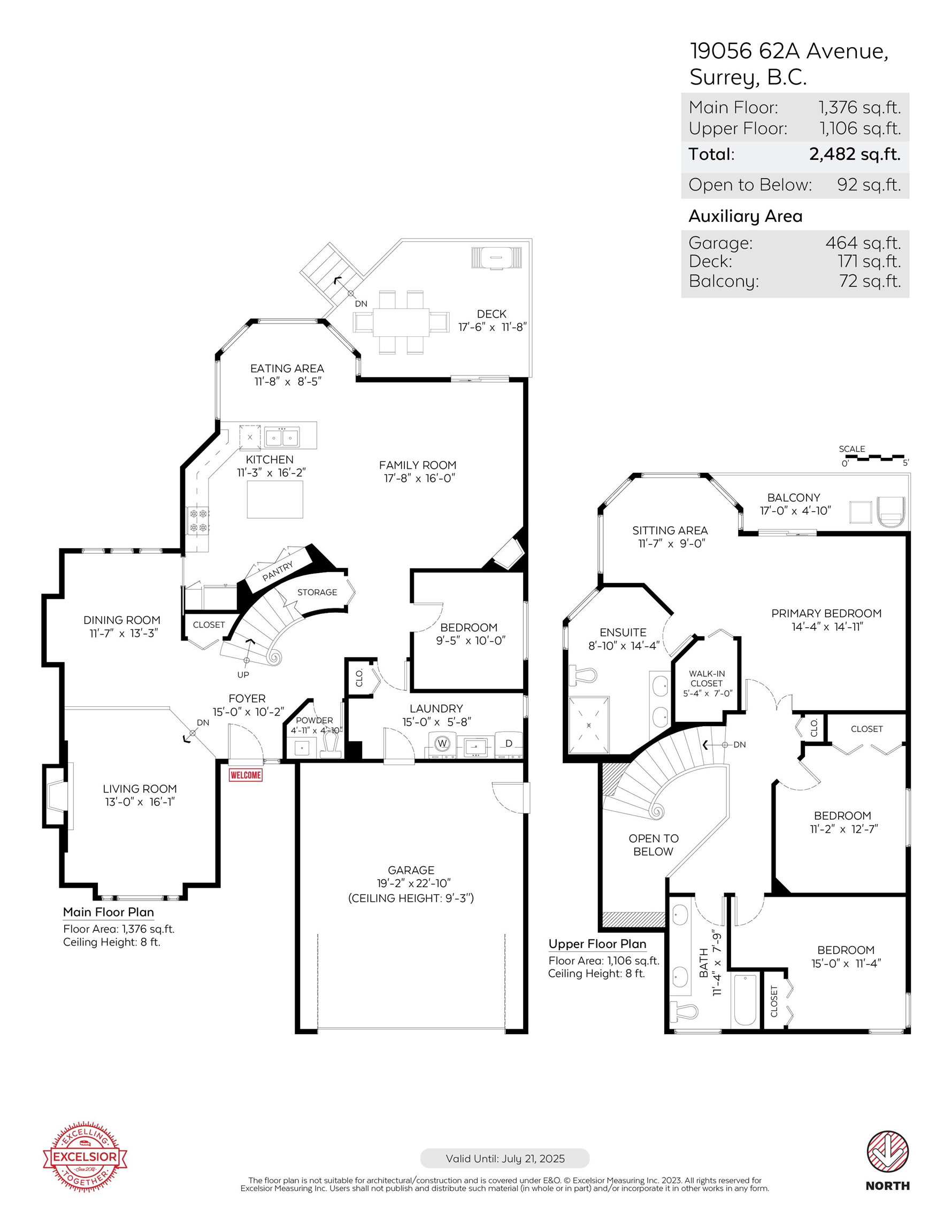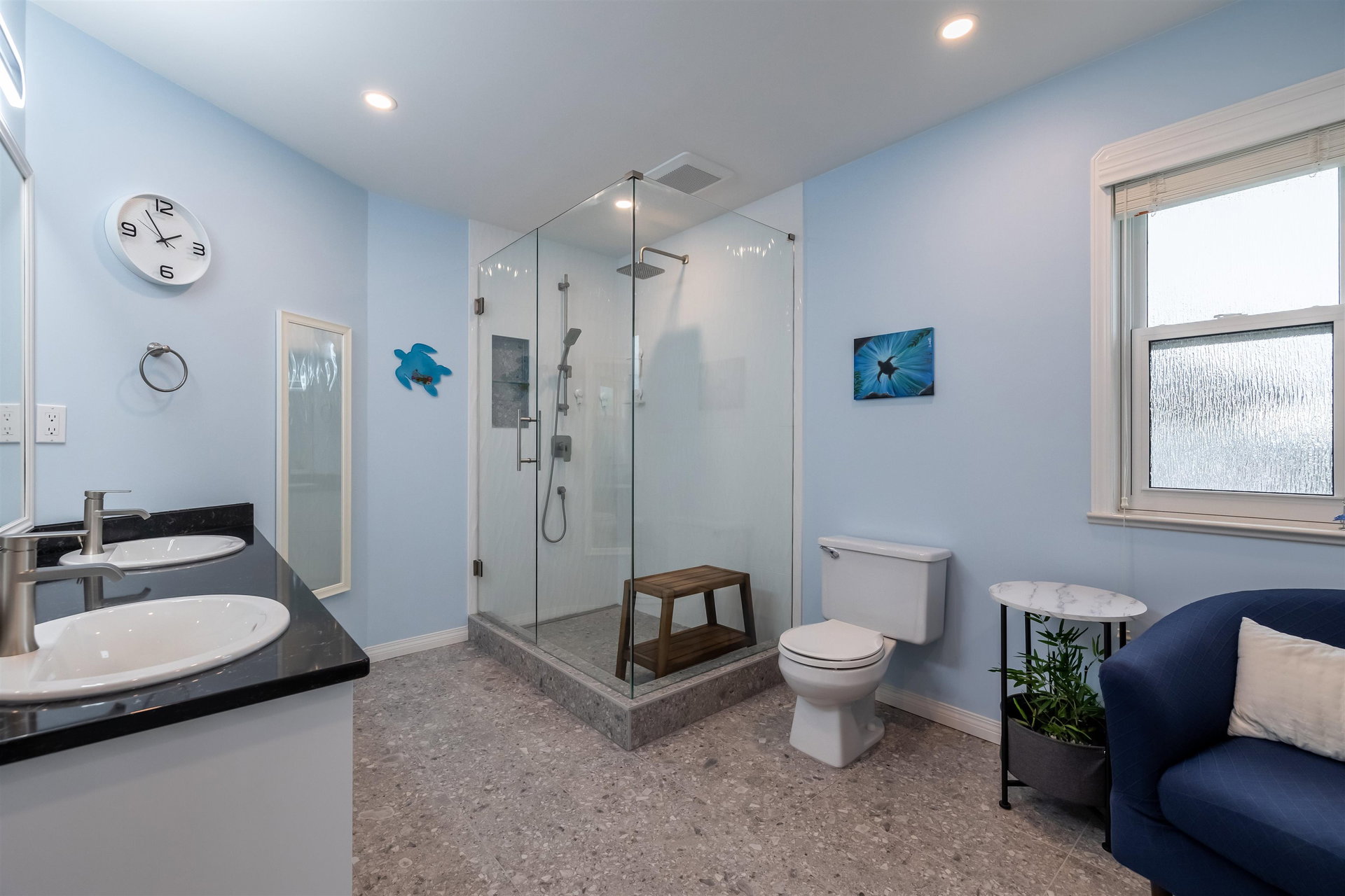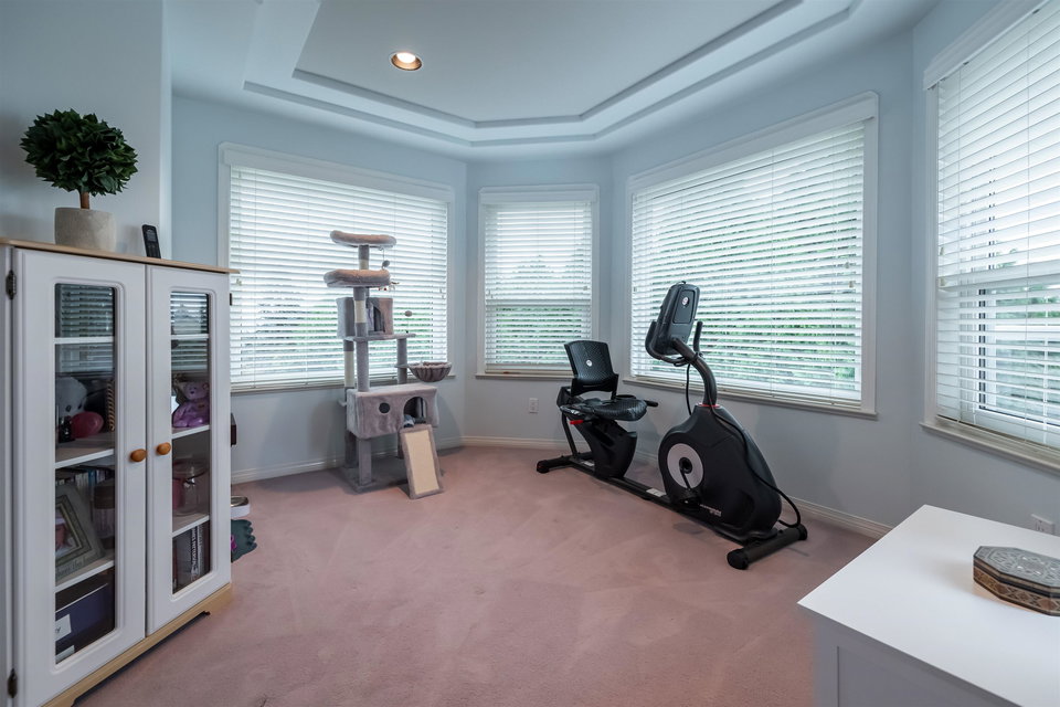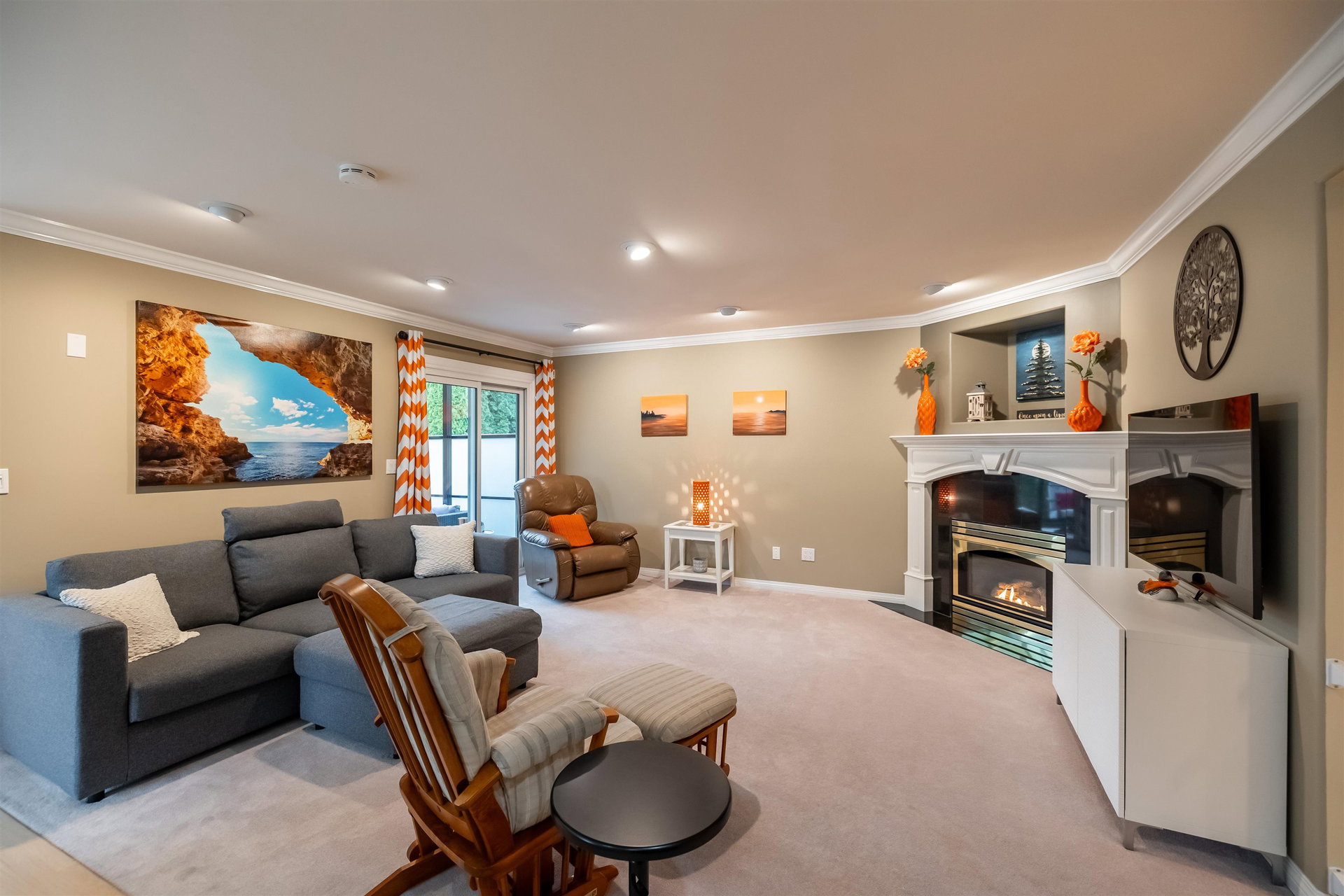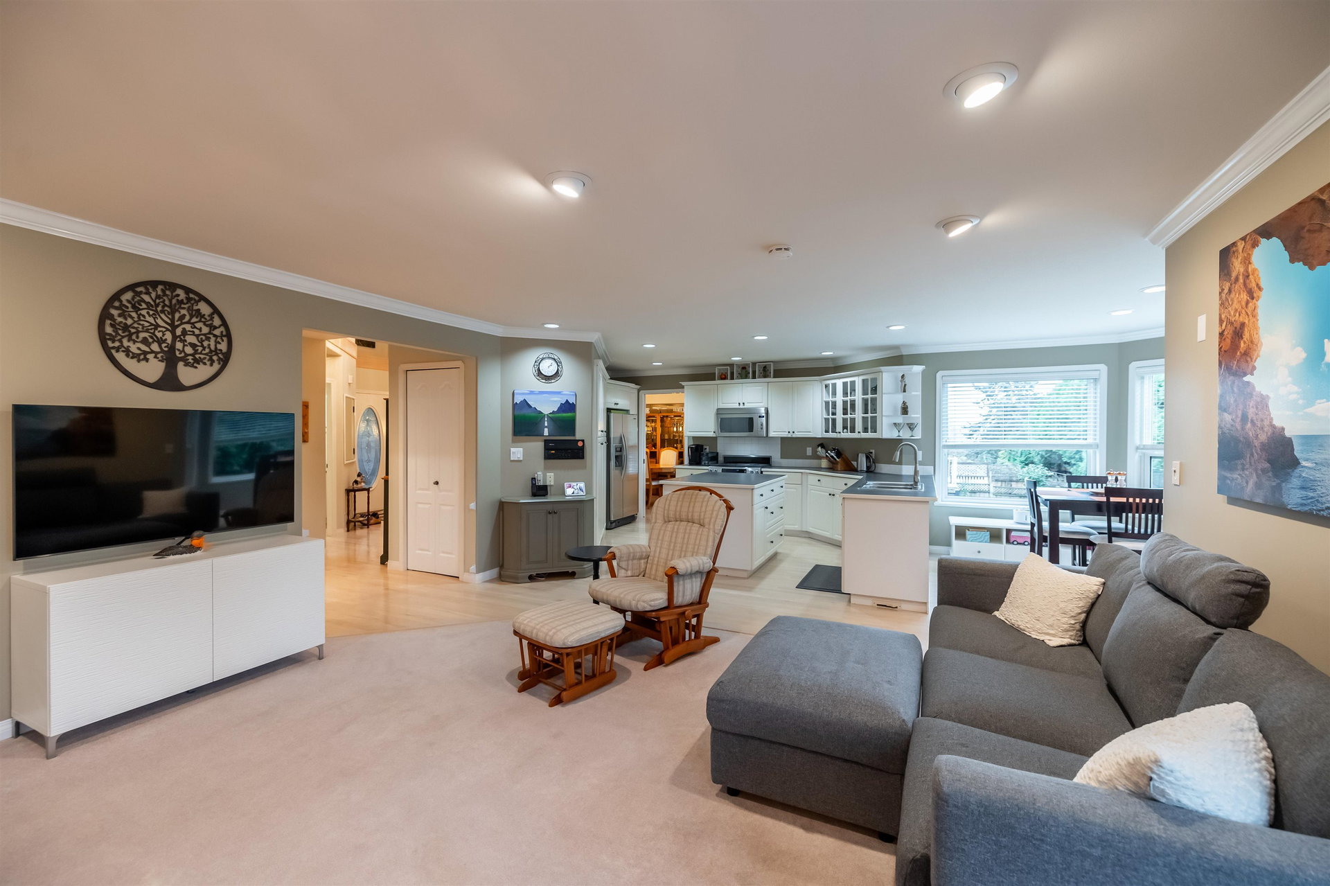 Charming Cloverdale 2 level family home located on quiet cul de sac in fantastic neighborhood! This 2482 sq ft home features 3 oversized bedrooms up & 1 den/bedroom on main floor which makes a great home office. Well maintained home situated on a private 7350 sq ft lot. Great layout with towering ceilings in entry & living space perfect for entertaining & everyday living. Gas fireplace in sunken living space, spacious dining area & large entry make this home bright and airy. White kitchen has loads of cabinets, stainless steel appliances, gas range & island. Bonus eating area & adjoining family room w gas fireplace. Sliding door leads to covered back deck. Huge Master suite w walk in closet & beautiful ensuite. Updated Roof, furnace & hot water tank. Loads of parking for your RV!