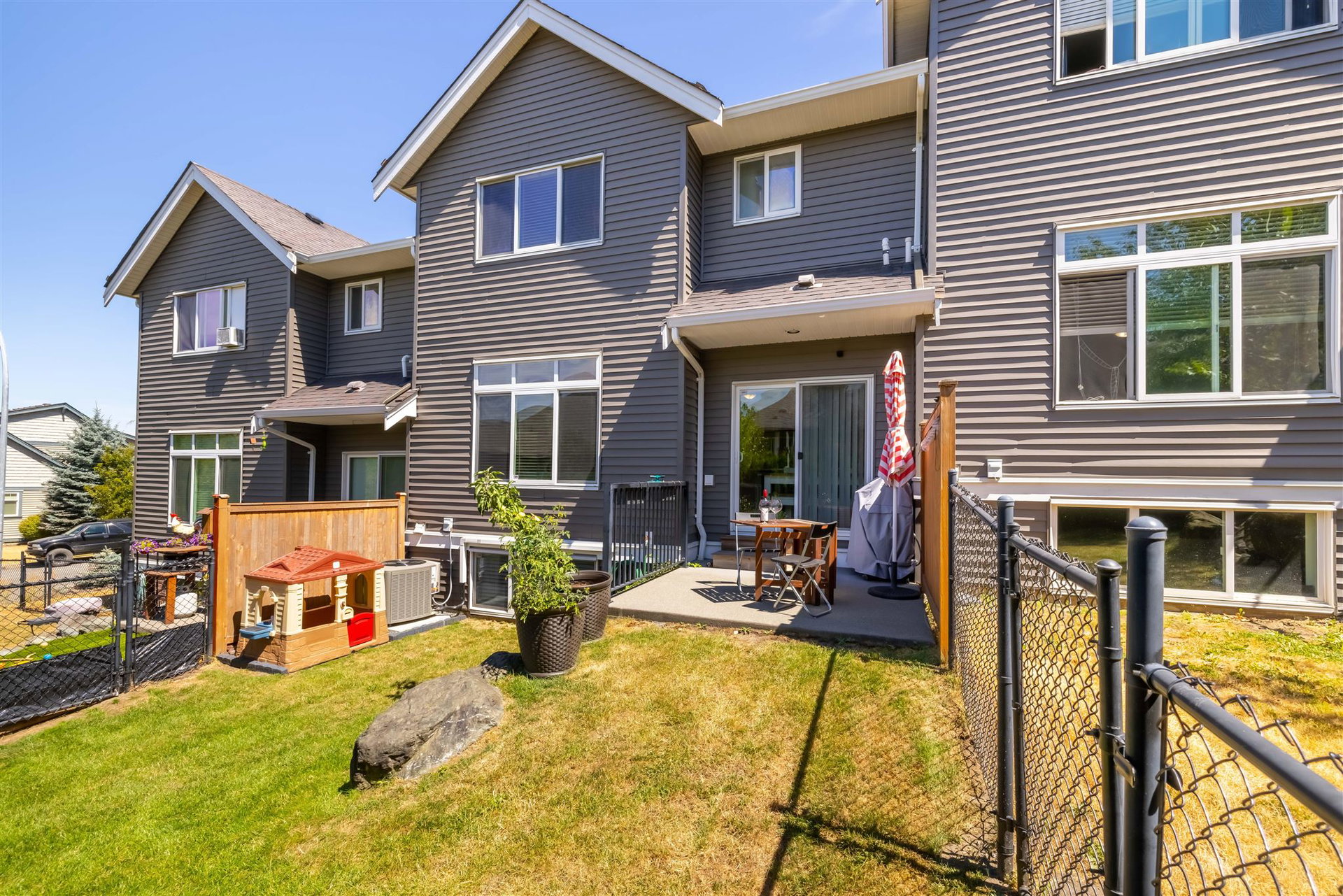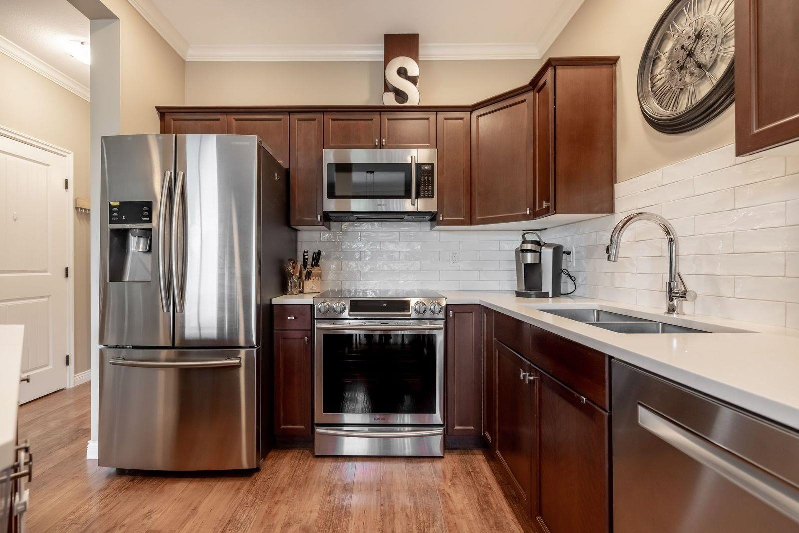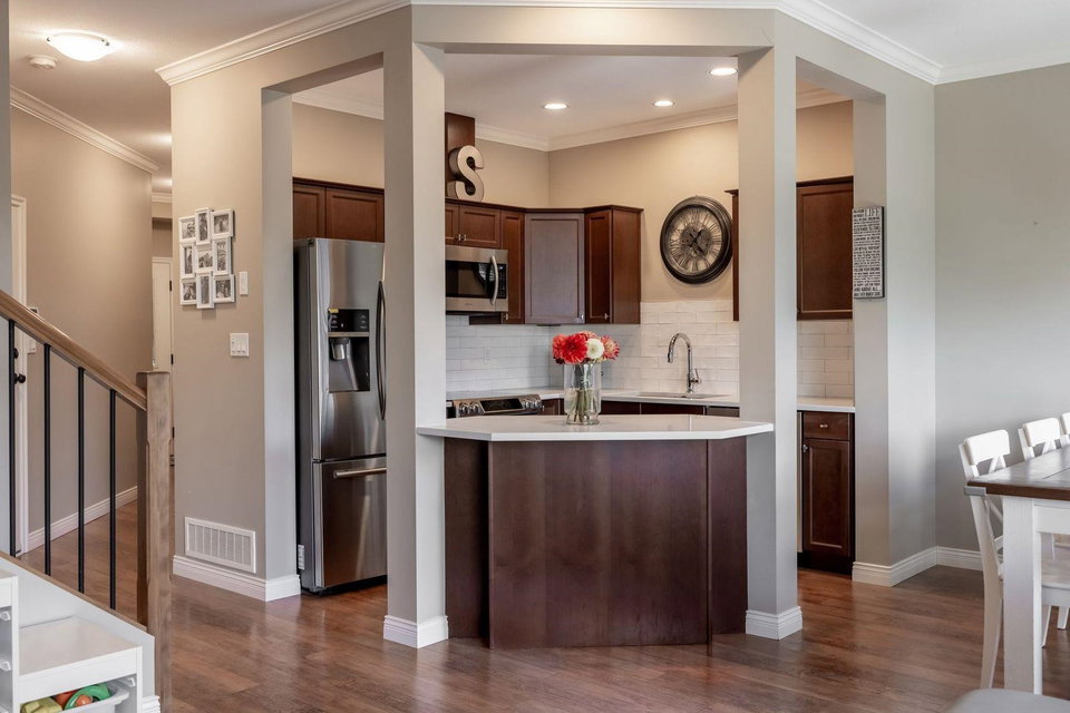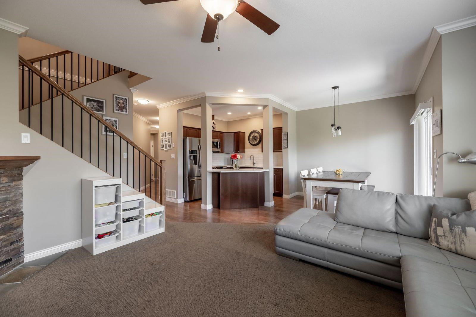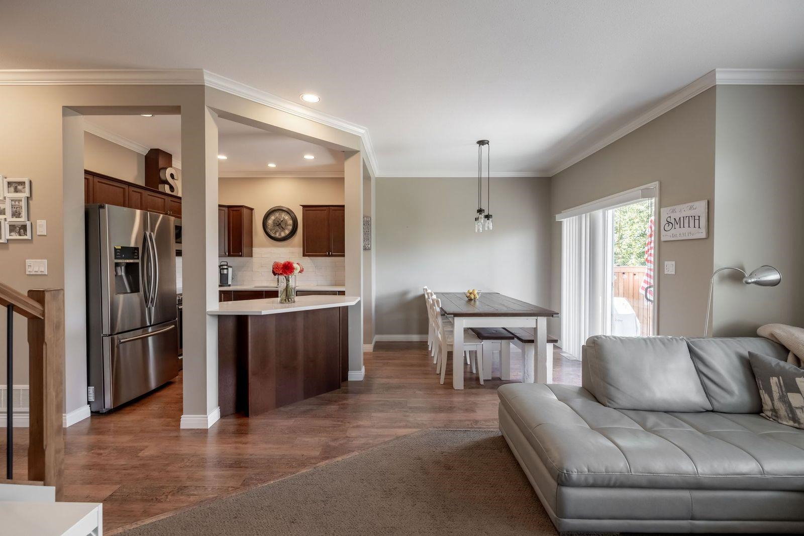 CEDAR SPRINGS! This incredible 3 bedroom 2207 sq ft townhouse feels like a home! Fantastic layout with side by side double garage & parking pad for 2 more vehicles! Meticulously cared for by its owners. Updated kitchen with new white quartz countertops & backsplash! Beautiful stainless steel appliances, warm paint tones, crown mouldings, air conditioning and open layout overlooking spacious dining & living area. Step outside to your back west facing patio & yard from main level! A great spot for BBQ’s. Upstairs features 3 spacious bdrms. Large master suite w walk in closet & laundry area for added convenience. Entertain your friends in the fully finished basement rec room w custom English pub bar area, stunning millwork, build in entertaining units, potlights & more! 10 out of 10!