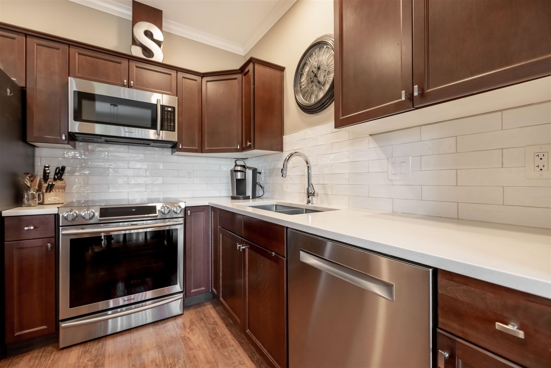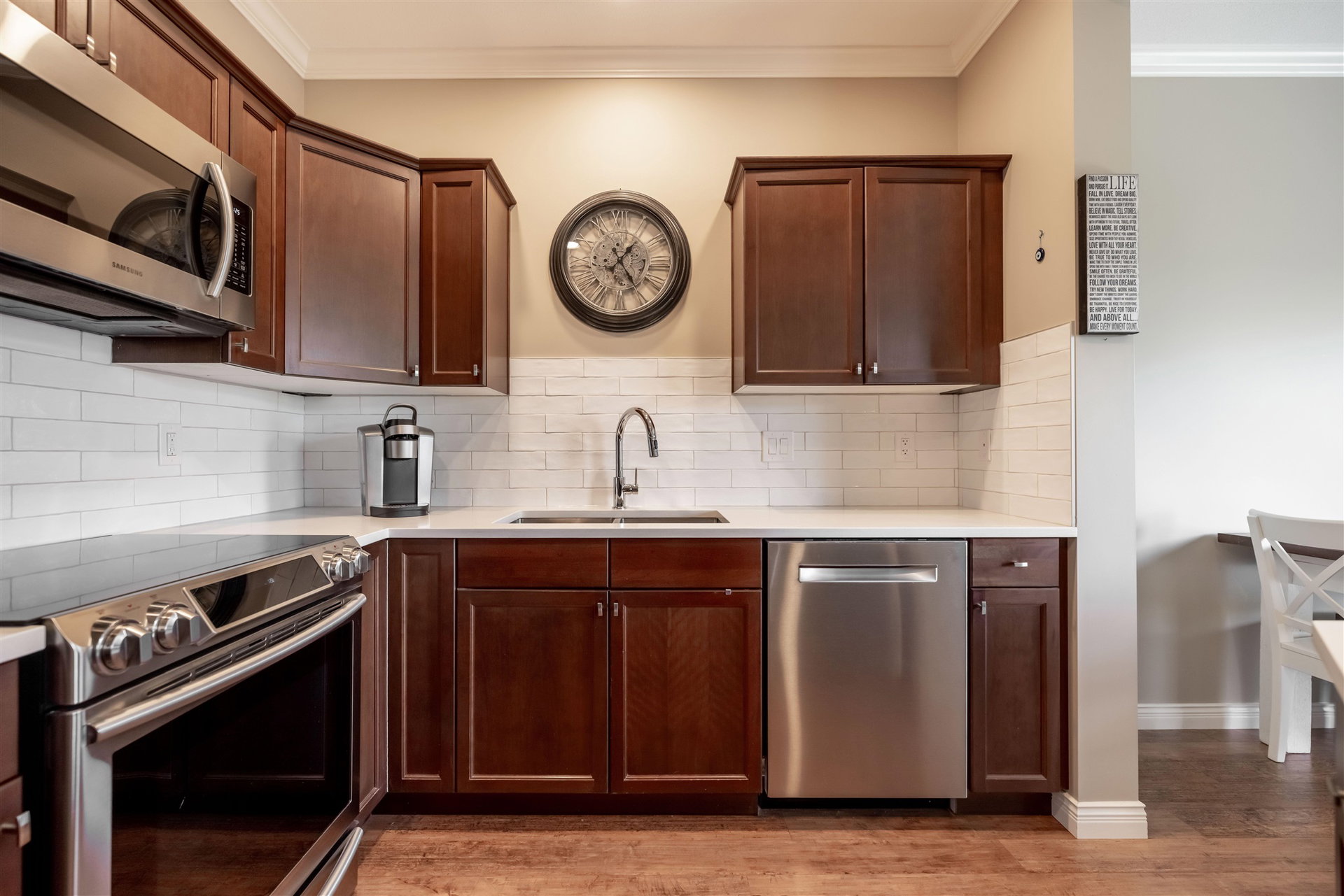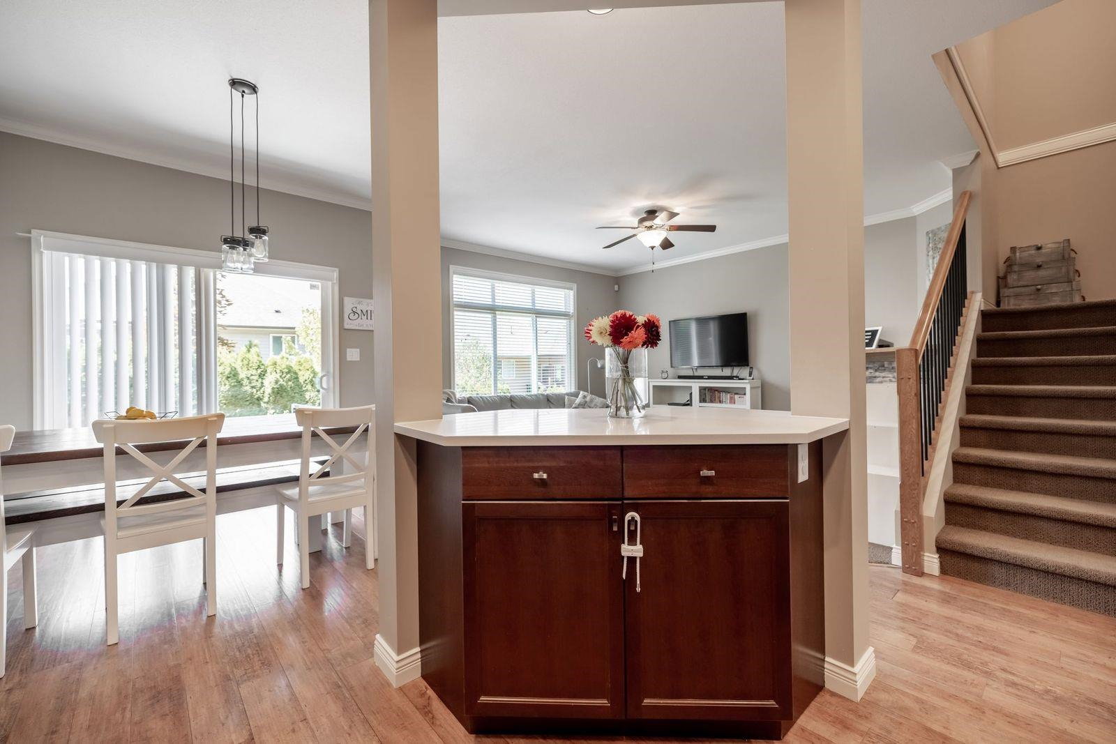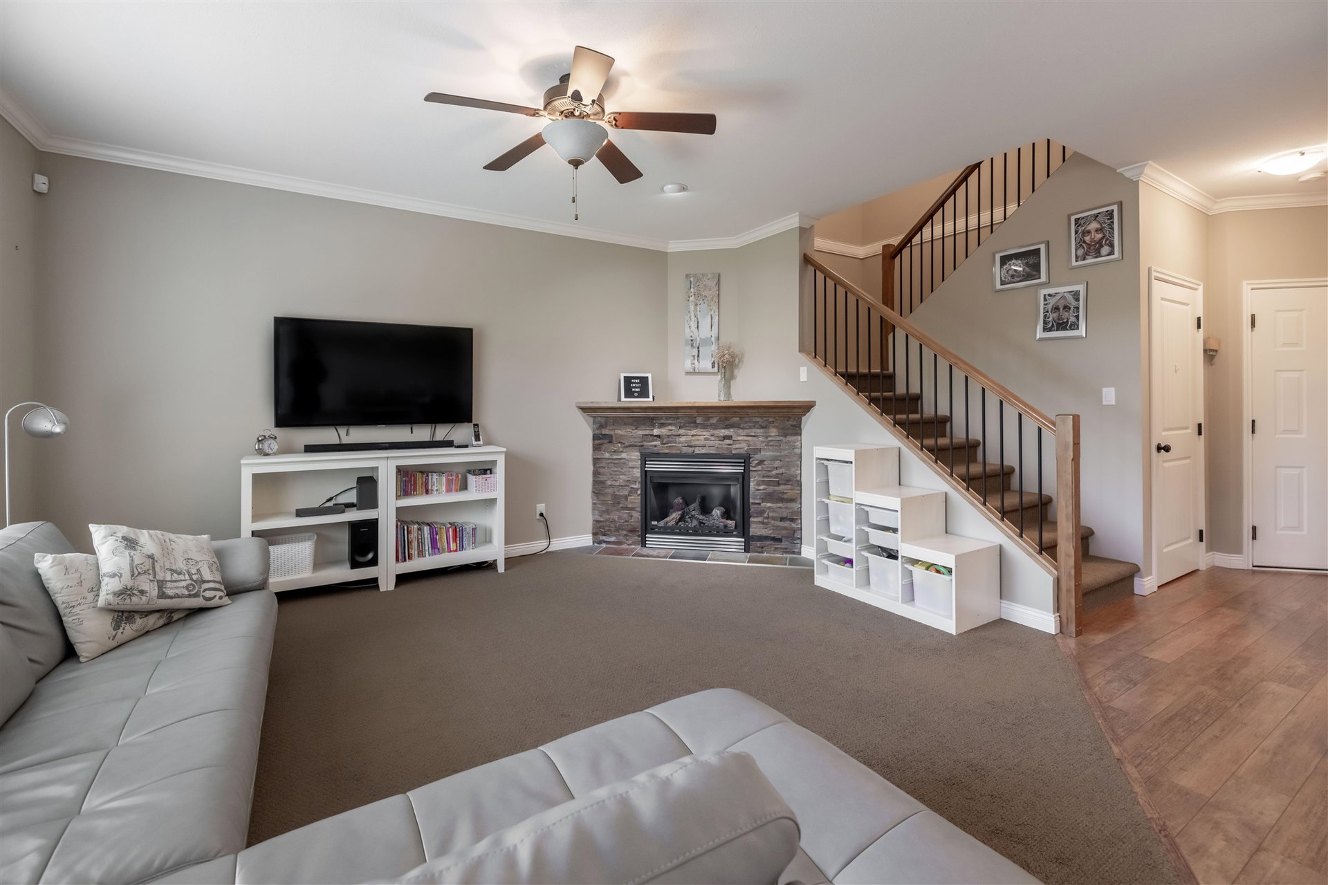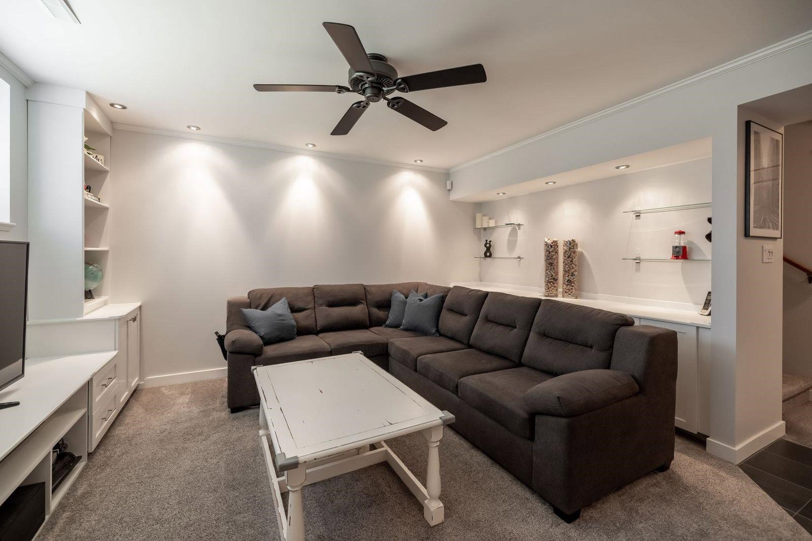 CEDAR SPRINGS! This incredible 3 bedroom 2207 sq ft townhouse feels like a home! Fantastic layout with side by side double garage & parking pad for 2 more vehicles! Meticulously cared for by its owners. Updated kitchen with new white quartz countertops & backsplash! Beautiful stainless steel appliances, warm paint tones, crown mouldings, air conditioning and open layout overlooking spacious dining & living area. Step outside to your back west facing patio & yard from main level! A great spot for BBQ’s. Upstairs features 3 spacious bdrms. Large master suite w walk in closet & laundry area for added convenience. Entertain your friends in the fully finished basement rec room w custom English pub bar area, stunning millwork, build in entertaining units, potlights & more! 10 out of 10!