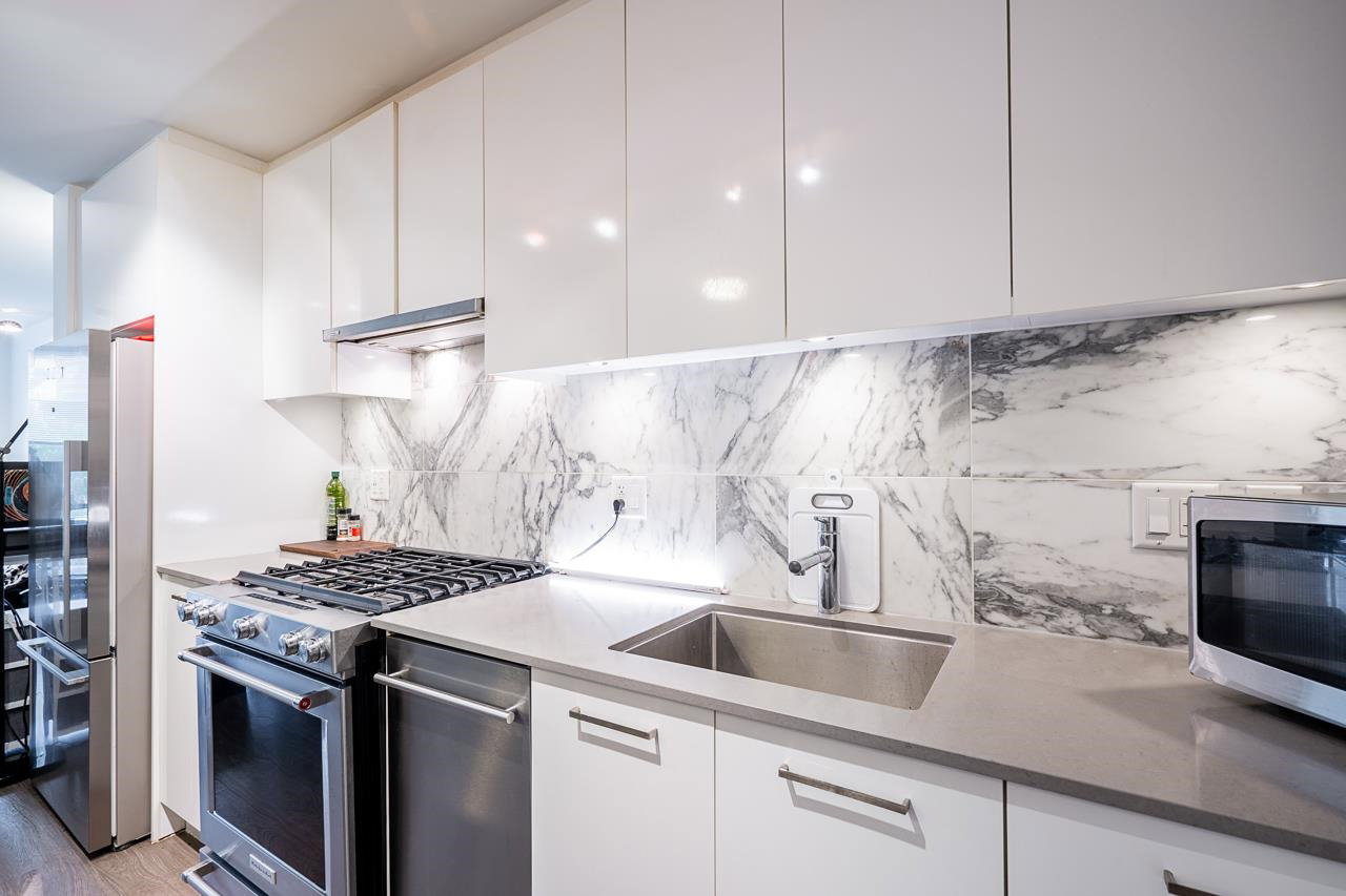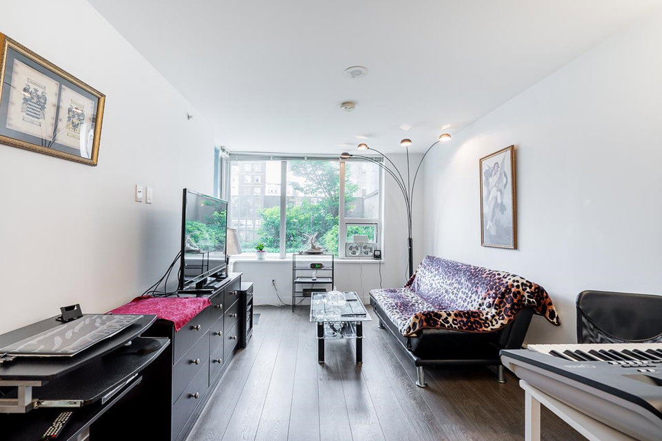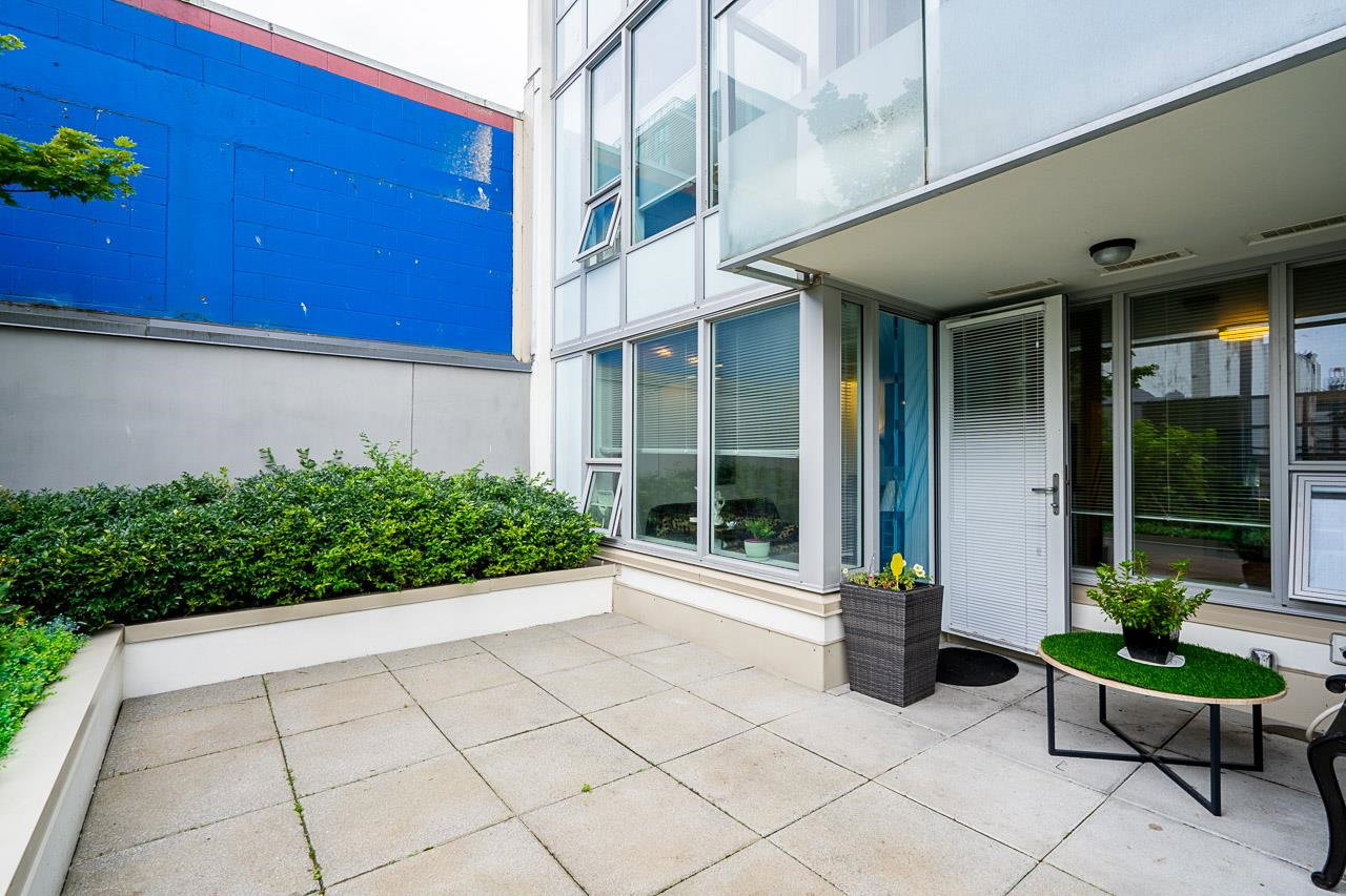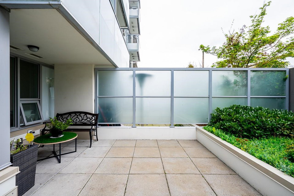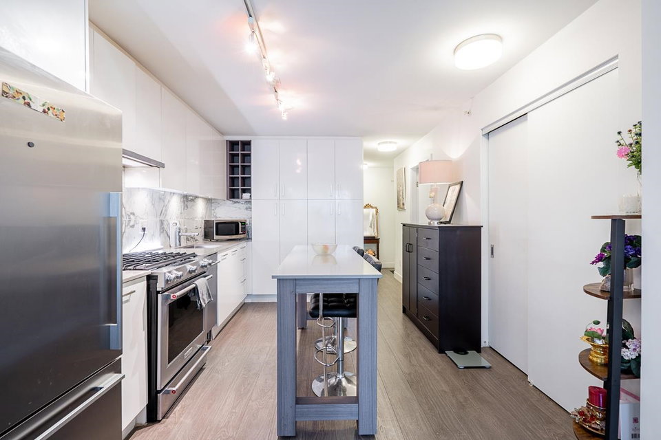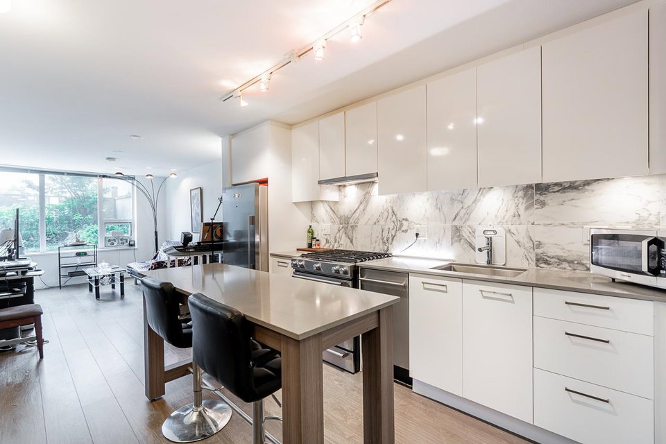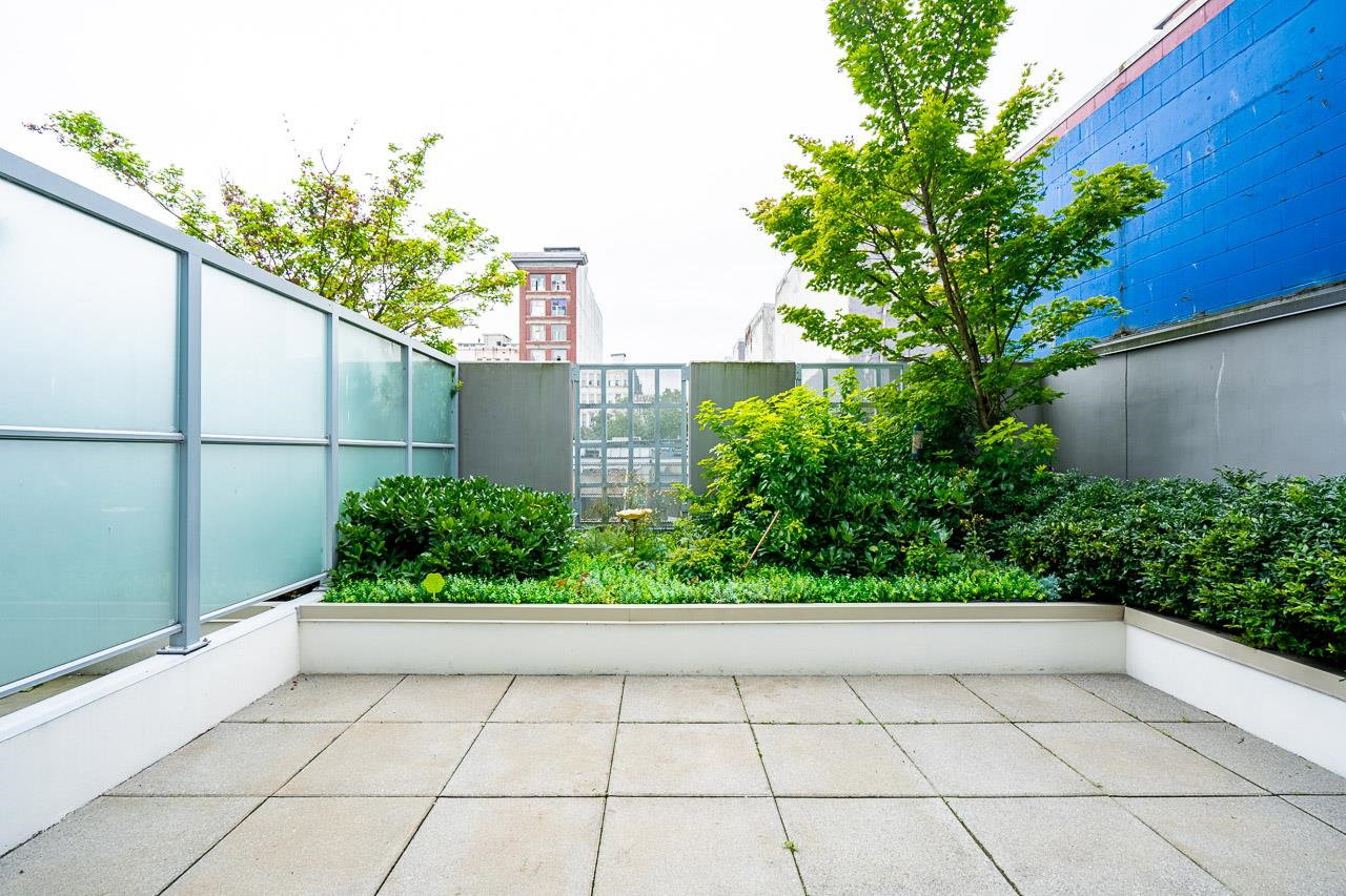 Framework by PORTE. This sleek, corner, NW facing, freshly painted 1 bed+den+XL patio that boasts a 709 sq ft interior & 220 sq ft of outdoor space is the perfect Chinatown oasis. Leave your worries behind as you enter your bright chef’s kitchen with island, floor to ceiling cabinets, Kitchenaid gas cooktop, large S/S fridge, marble backsplash & quartz countertops. Both the living room & generous bedroom (+ walk-thru closet) offer large windows that pull in the sunlight from your oversized private patio & garden. Patio has some mountain views to the north. The den can easily double as a second bedroom. Hot water baseboard heat is included in your strata fees. Surrounded by an amazing range of restaurants, shopping, heritage properties & nightlife, Strathcona has something for everyone. Pets allowed, 1 parking spot w/dedicated outlet for charging EVs, 1 storage included.