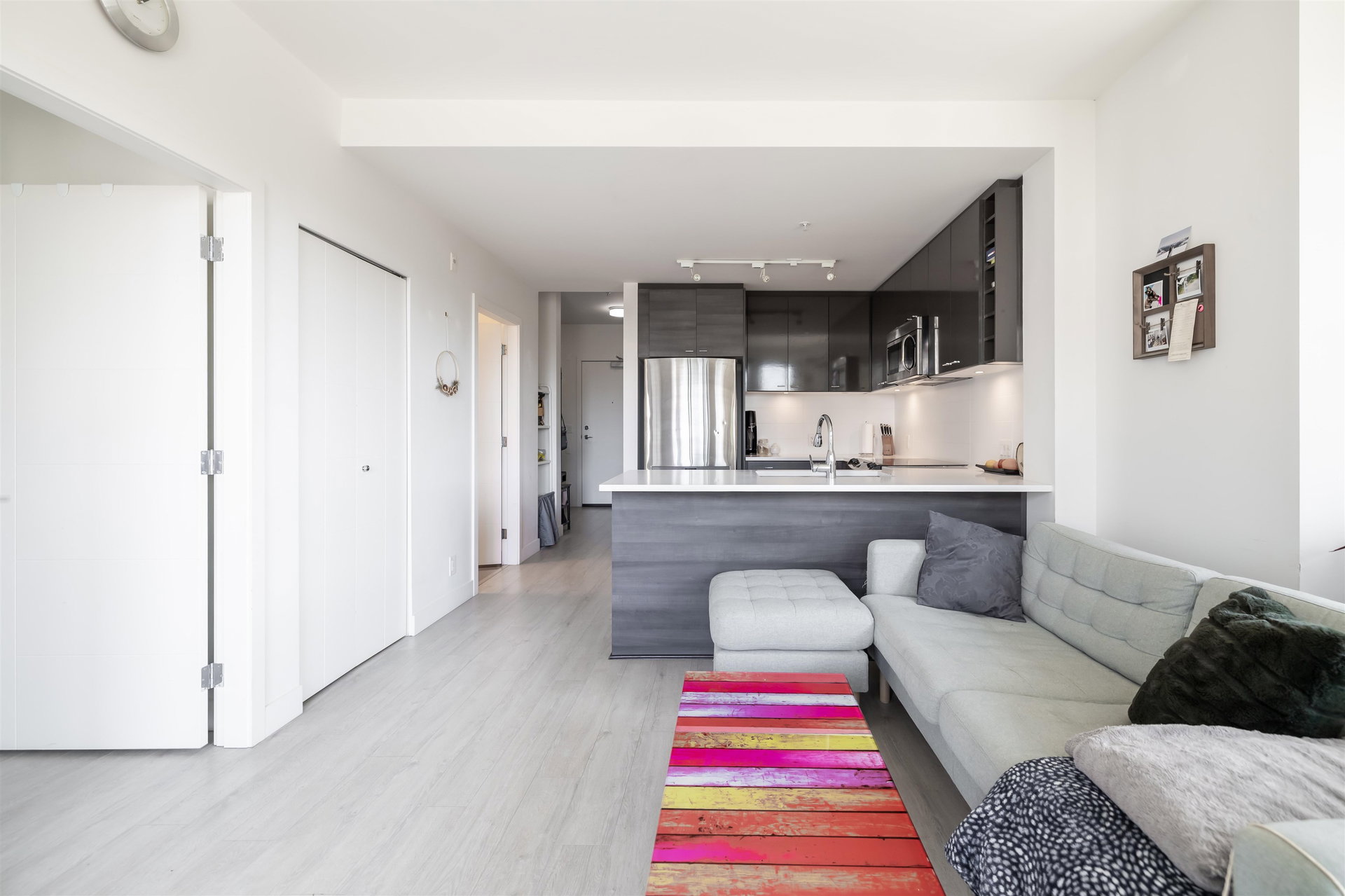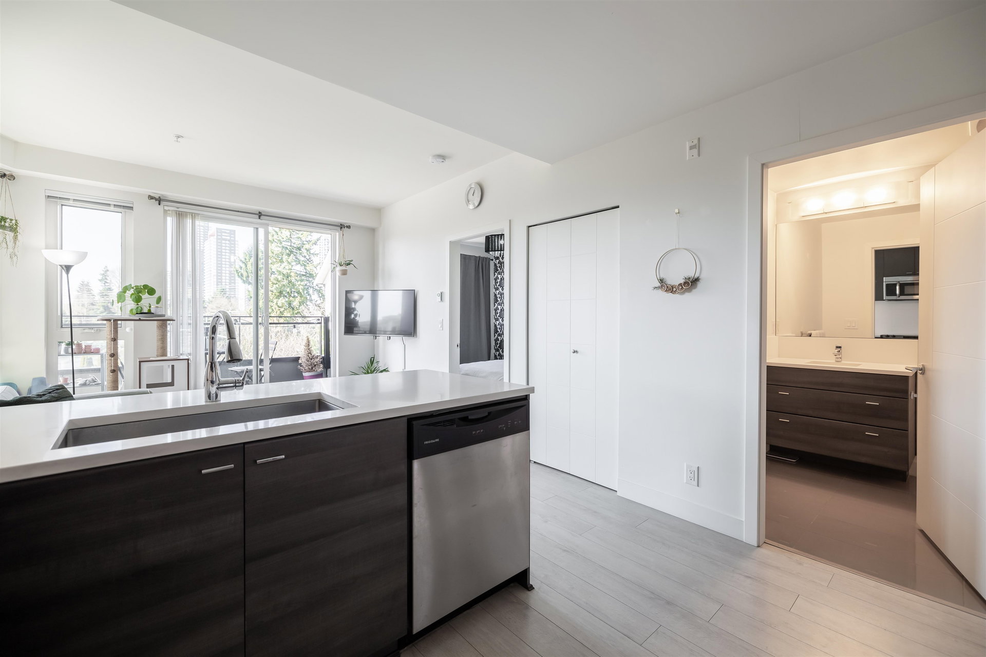 Welcome to Verve by Porte! This 1 bedroom and den, SouthWest facing condo is an ideal starter home or a perfect pick up for a savvy investor! Stainless steel appliances, loads of cabinets and open floor plan. Spacious bedroom. In suite laundry. Underground secured parking. Central location that is close to anything and everything! Shopping, King George Skytrain, SFU, restaurants, City Centre and Holland Park are right on your door step. Pets and rentals allowed as well full gym, party room and guest suites! Don’t miss this amazing opportunity, reach out today for your personal tour!