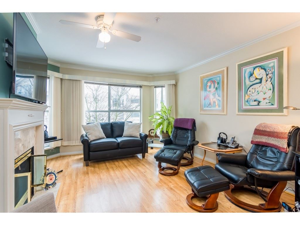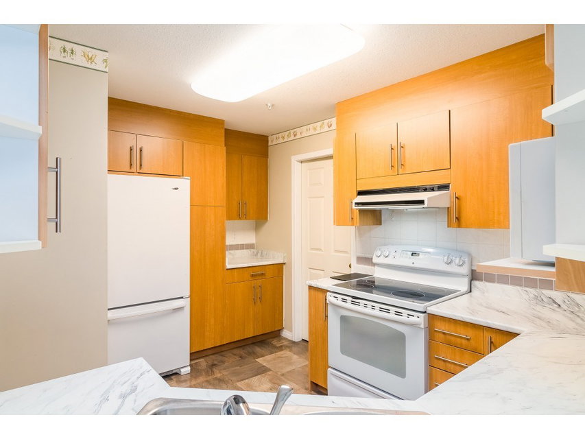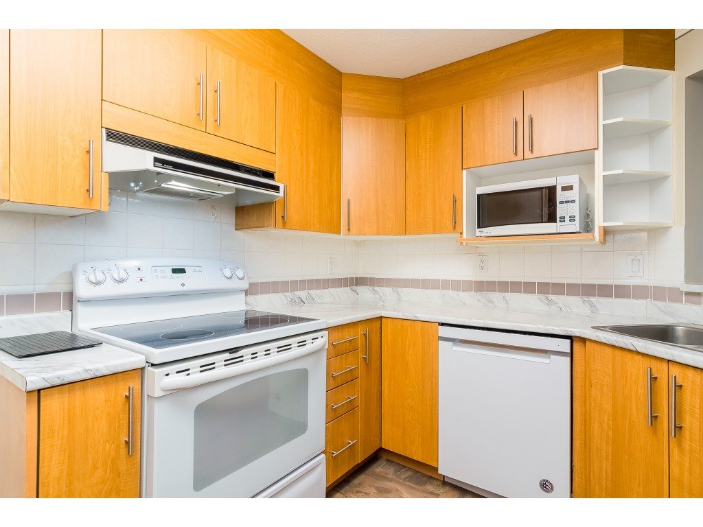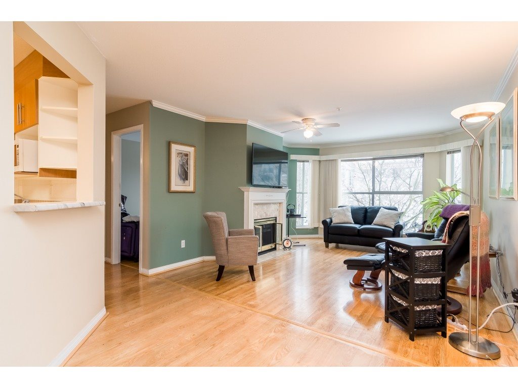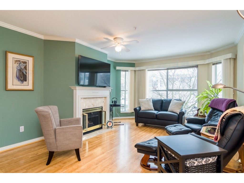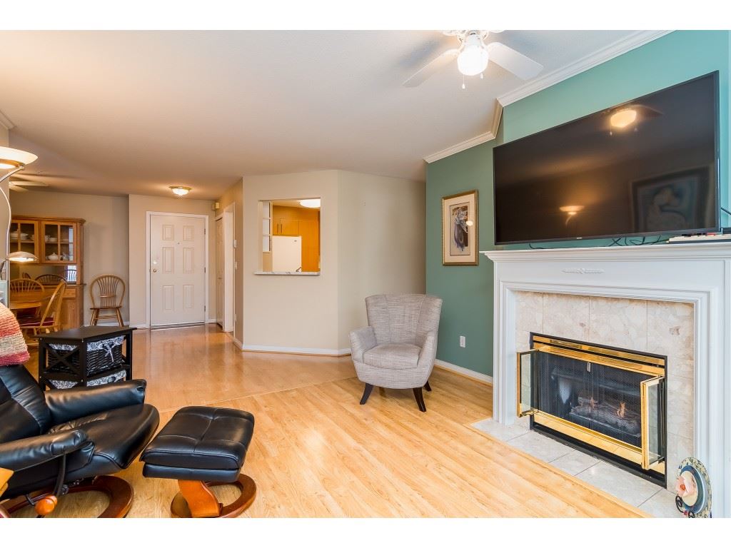 THE HIGHLANDS! Perfect 2 bdrm 2 bath condo in the heart of Strawberry Hills! This 1041 sq ft unit overlooks the beautiful QUIET courtyard! Spacious layout with laminate floors, updated kitchen cabinets, white appliances & counter tops! BRAND new HOT WATER TANK & updated washer/dryer in separate laundry room area w extra storage. Split bedroom design for ultimate privacy. Infloor radiant heat & gas fireplace included in strata fee. Extra your morning coffee on your private EAST facing deck. Large master bedroom with walk throughout closets & 3 piece ensuite with glass shower. Complex has NEW ROOF! Underground secured parking stall (extra big) & storage locker. Footsteps to Bus depot, Movie theaters, shops and restaurants!