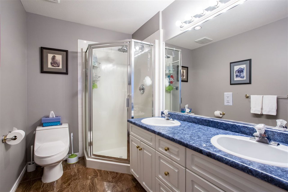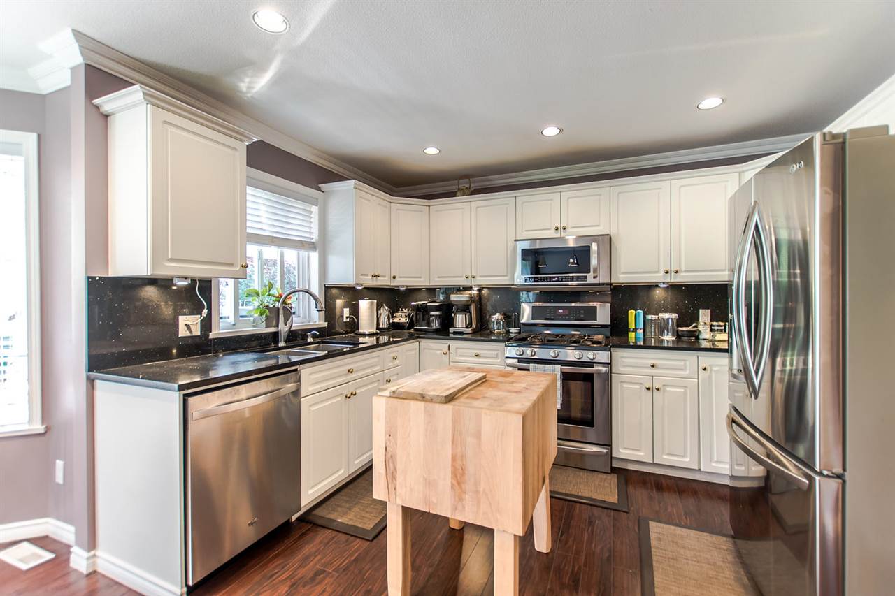 Extensively updated 4189 sf 2 storey + bsmt home w/legal suite & triple garage on attractively landscaped lot next to a greenbelt in Gordon Greenwood area of Walnut Grove. Gorgeous home boasts extensive updates including: laminate flrs, millwork & crowns, gorgeous updated kitchen w/white shaker cabinets, granite counters, lge island w/breakfast bar & stainless appl & dr to cov deck, b/i sound system, roof, repainted inside & out & more. Spacious din rm & liv rm w/cozy gas f/p. Fam rm adjoining updated kitchen. Mn flr media/games rm & den & powder rm. Upper level w/4 bdrms incl 2 w/ensuites. Bsmt w/2 bdrm legal suite. Sunroom overlooking attractively landscaped yd w/privacy hedge & patio. This home has it all!