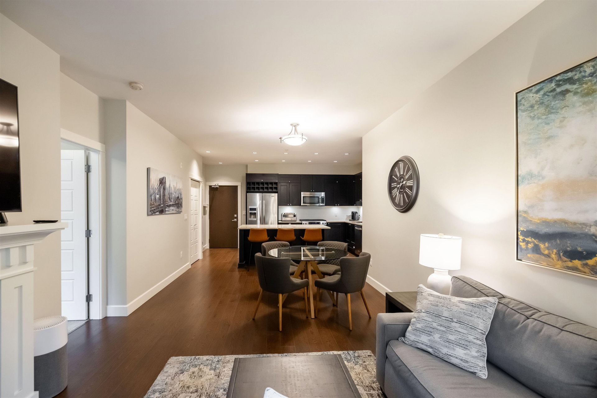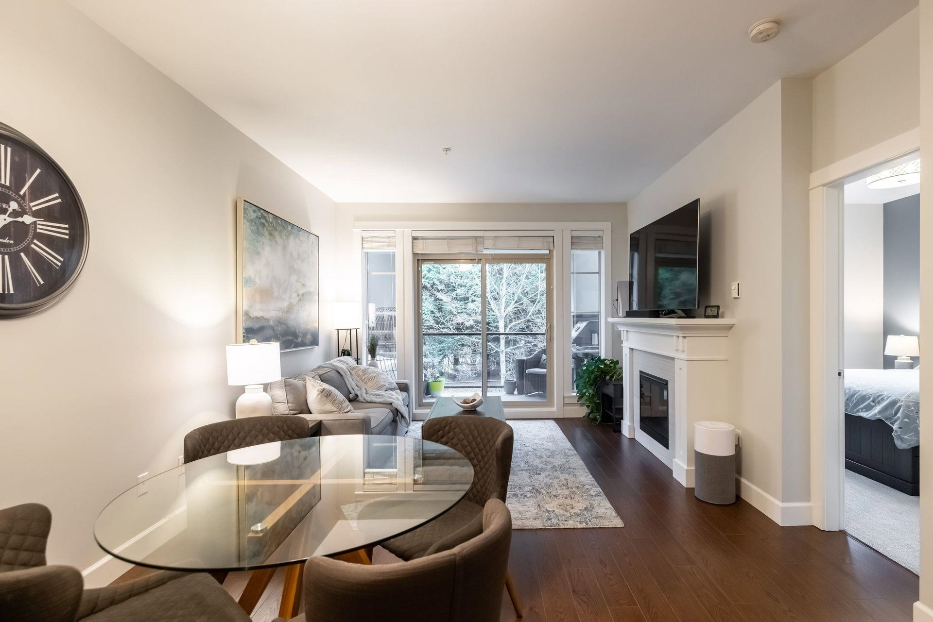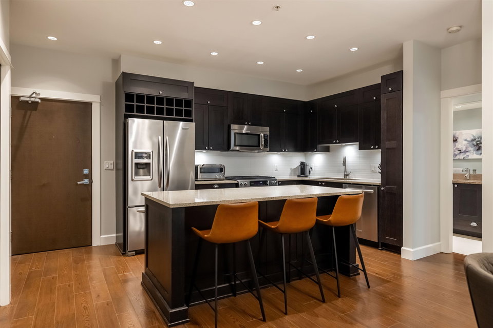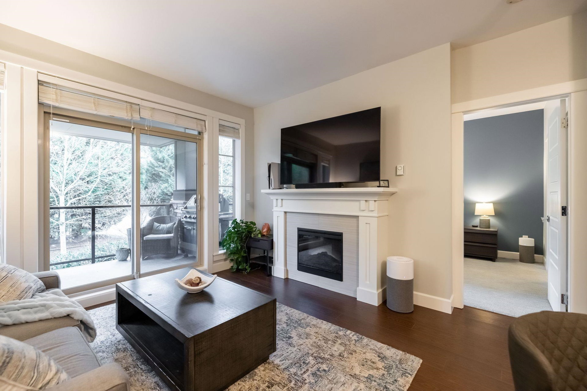 Welcome to the resort style gated community Edgewater! Proud to showcase this beautiful 2 bedroom unit boasting over 1000 sq. ft. In one of South Surrey’s most sought after complexes! Open layout w bedrooms on opposite sides for ultimate privacy. Incredible kitchen w stainless steel appliances, quartz countertops, gas range for cooking & large island to entertain your guests. Living area has fireplace & sliding doors leading to large covered deck! This complex features world class amenities with an outdoor pool and hot tub, gym, guest suite, movie theatre, and much more. Close to shopping, golf course and all major routes there is no better place to live in Morgan Creek. Book your private showing now. This unit is 10/10. Call today for your personal tour!