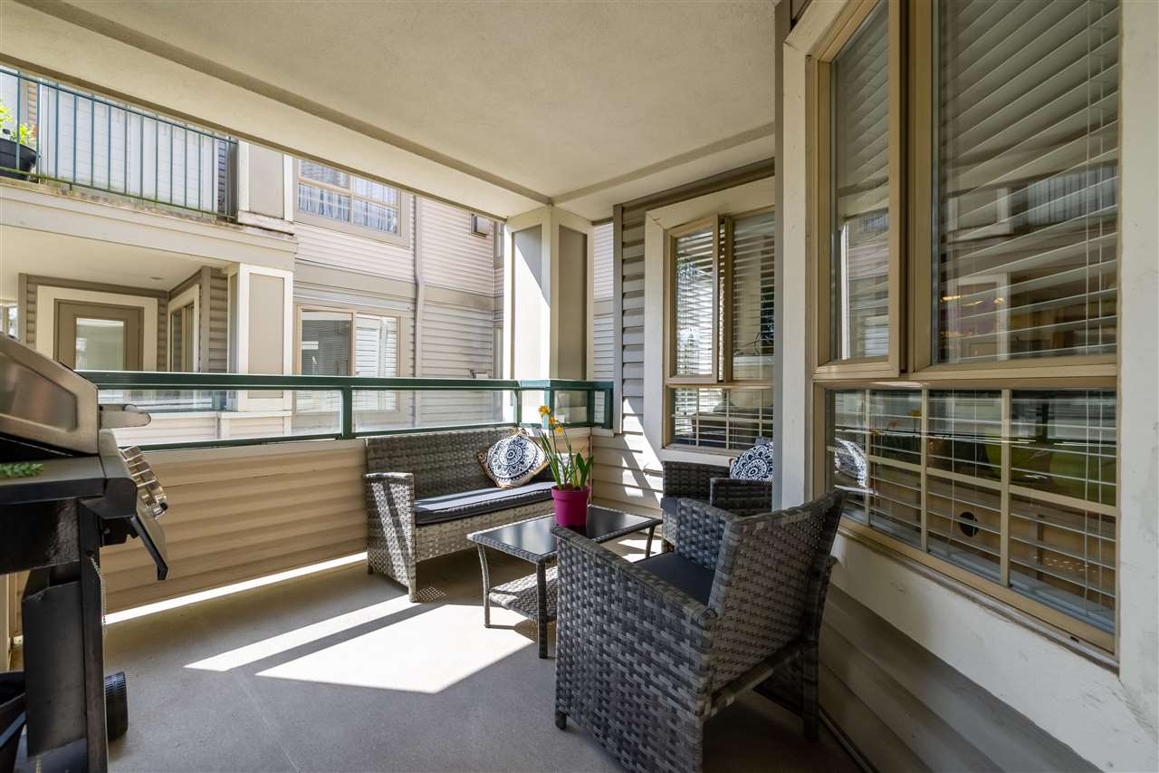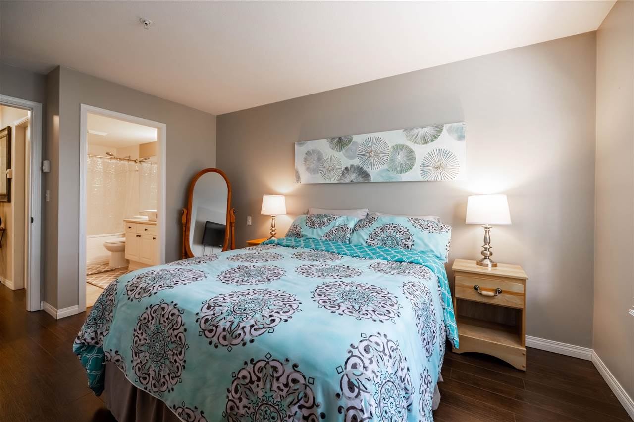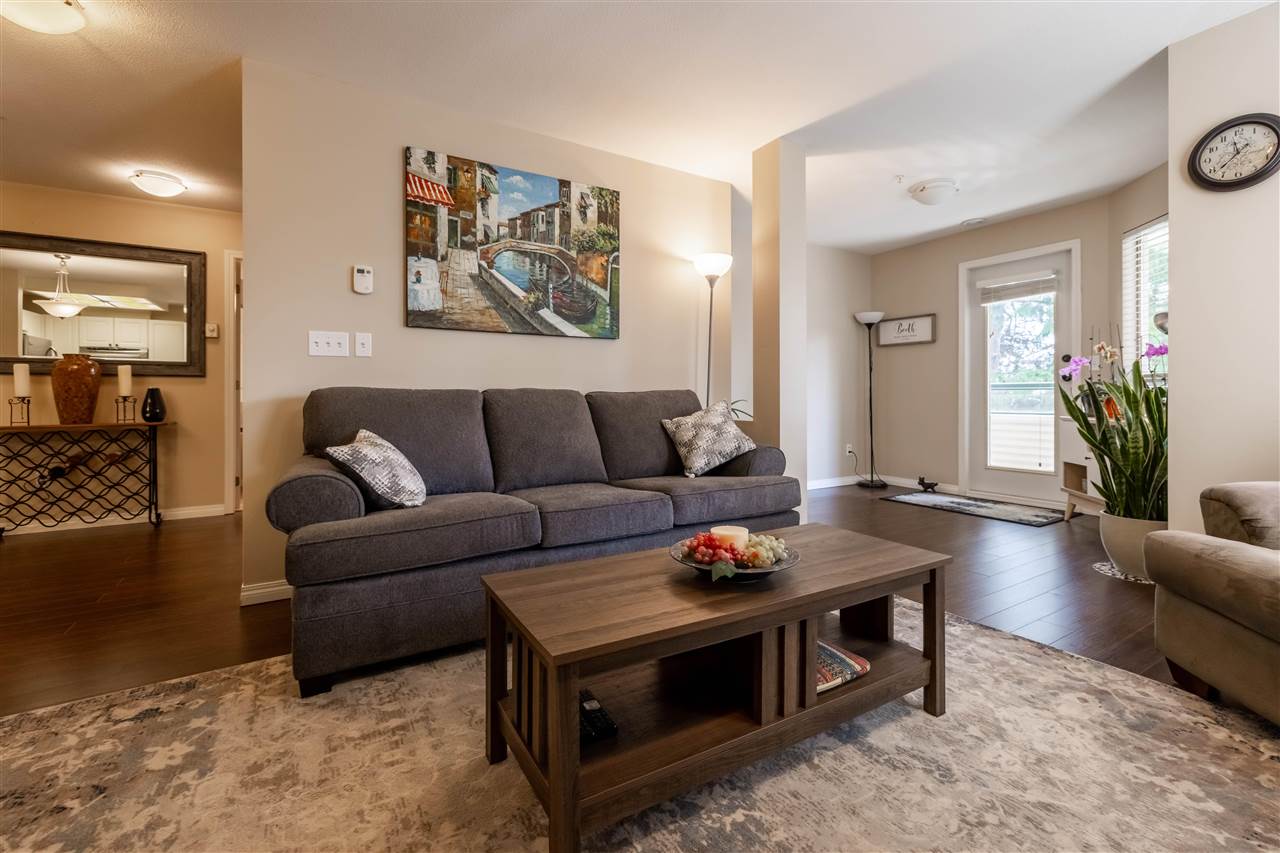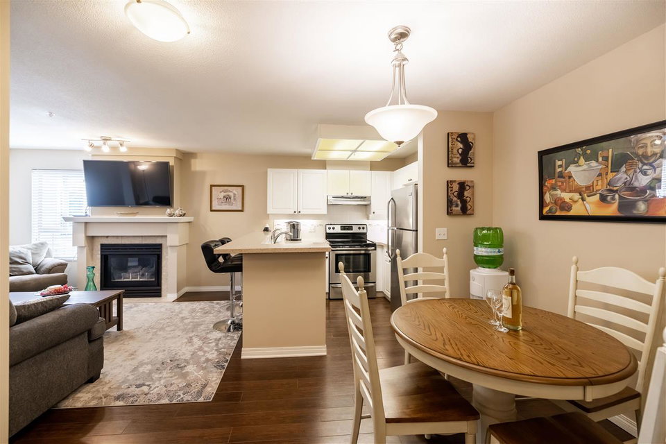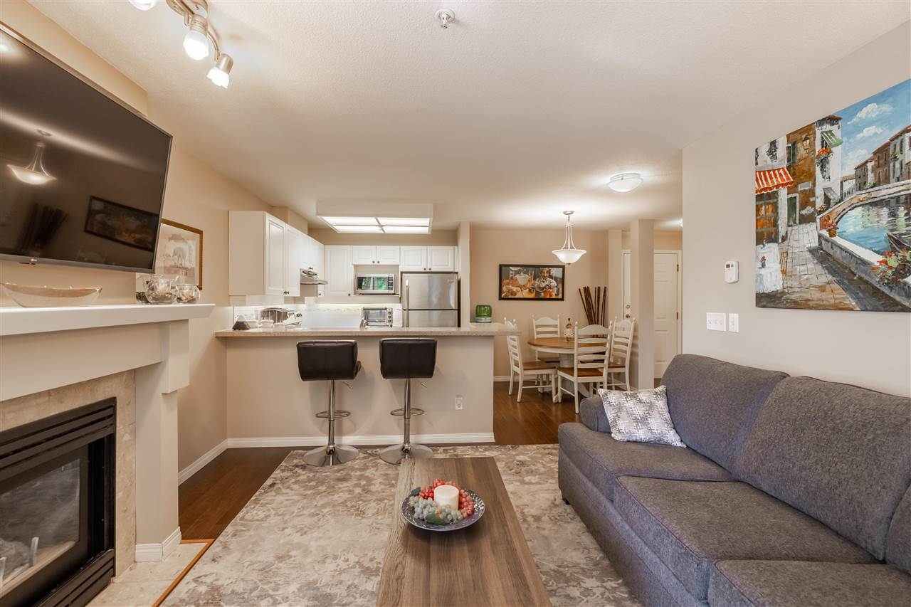 Highly sought after AUTUMN RIDGE in the heart of Murrayville! This 1 bdrm & den unit is absolutely spotless and meticulously cared for. Gas fireplace in cozy living area. Soft paint tones, laminate floors & updated light fixtures. White kitchen with updated granite countertops and stainless steel appliances. Open concept with bar area for your stools and entertaining. Den area off living room makes perfect home office! Private, quiet East facing deck to enjoy your morning coffee. Great size and fully covered to use all year around. Large master suite overlooking greenspace on back side of complex. Underground secured parking stall. Walking distance to rec center, IGA, restaurants & more! This is great for downsizers or first time buyers. Shows 10 out of 10!
