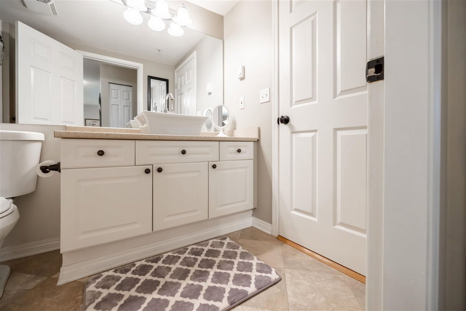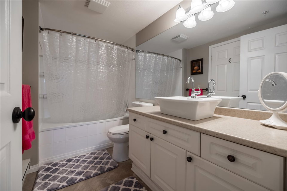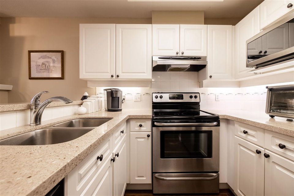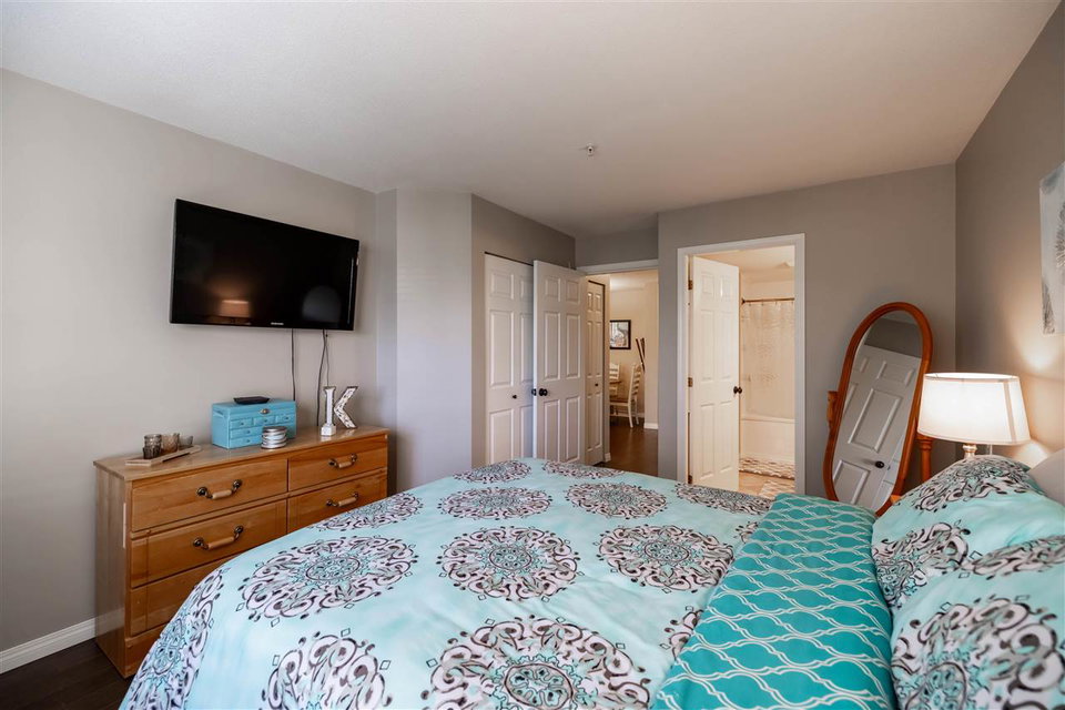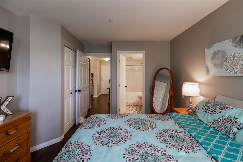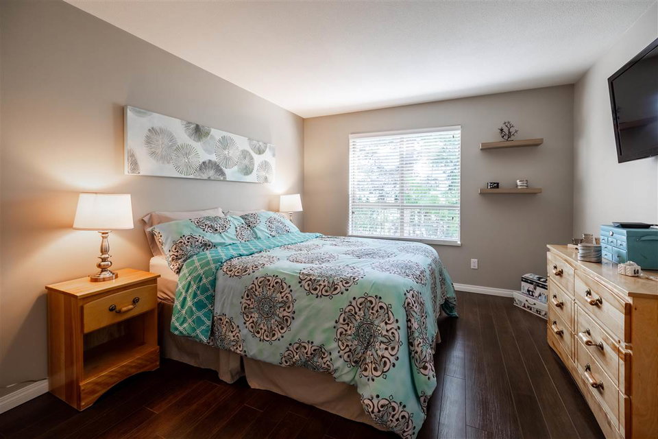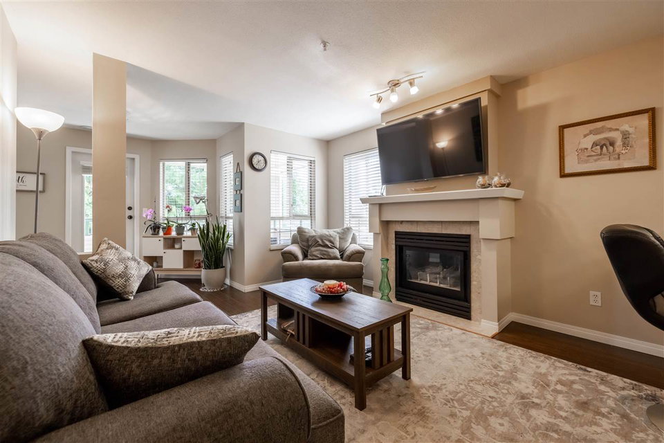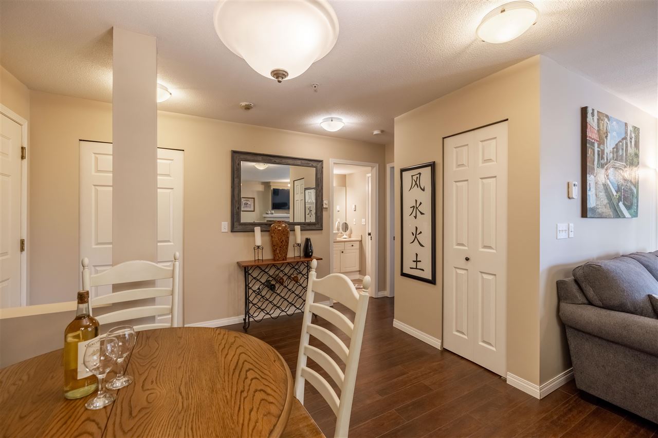 Highly sought after AUTUMN RIDGE in the heart of Murrayville! This 1 bdrm & den unit is absolutely spotless and meticulously cared for. Gas fireplace in cozy living area. Soft paint tones, laminate floors & updated light fixtures. White kitchen with updated granite countertops and stainless steel appliances. Open concept with bar area for your stools and entertaining. Den area off living room makes perfect home office! Private, quiet East facing deck to enjoy your morning coffee. Great size and fully covered to use all year around. Large master suite overlooking greenspace on back side of complex. Underground secured parking stall. Walking distance to rec center, IGA, restaurants & more! This is great for downsizers or first time buyers. Shows 10 out of 10!