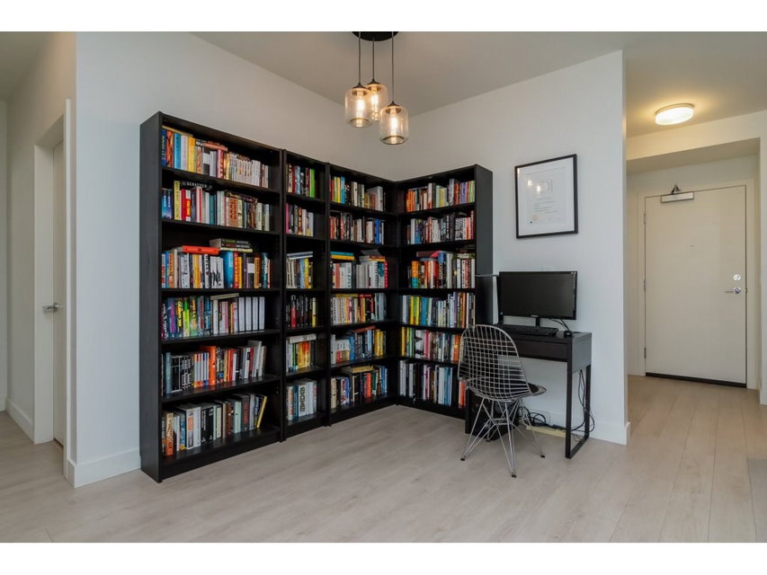 Welcome to the VERVE by PORTE! This contemporary & modern development is one of the best in Central City & only a 5 min walk to Skytrain. 3 yrs old! One of the BEST LAYOUTS in complex with 981 sq ft! 2 bedrooms, 2 bath & den! OPEN, bright layout w 9′ ceilings, stainless steel appliances, quartz counter tops, under mount sink & room for your bar stools at breakfast bar for entertaining! Beautiful laminate floors in kitchen, dining & living room. SPACIOUS master bdrm w walk through closets leading to ensuite bath with DOUBLE SINKS & stunning oversized GLASS shower! Great private balcony facing West. Underground tandem parking for 2 cars! Footsteps to SFU Campus & Central City Mall in BC’s Fastest growing city!RENTALS ALLOWED!A 10!