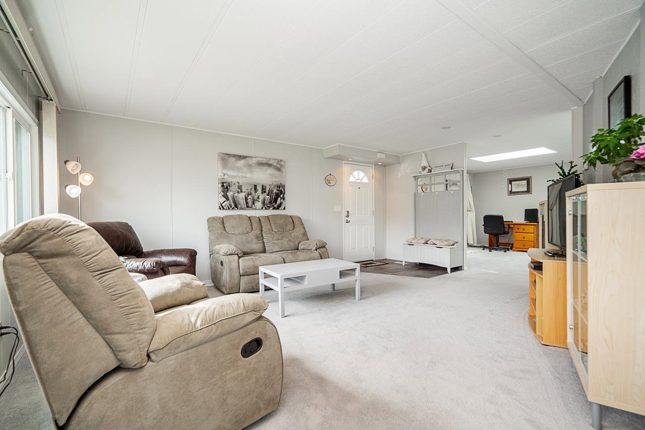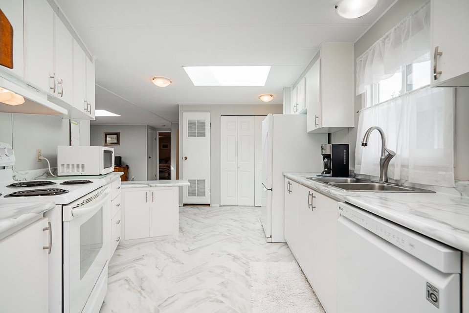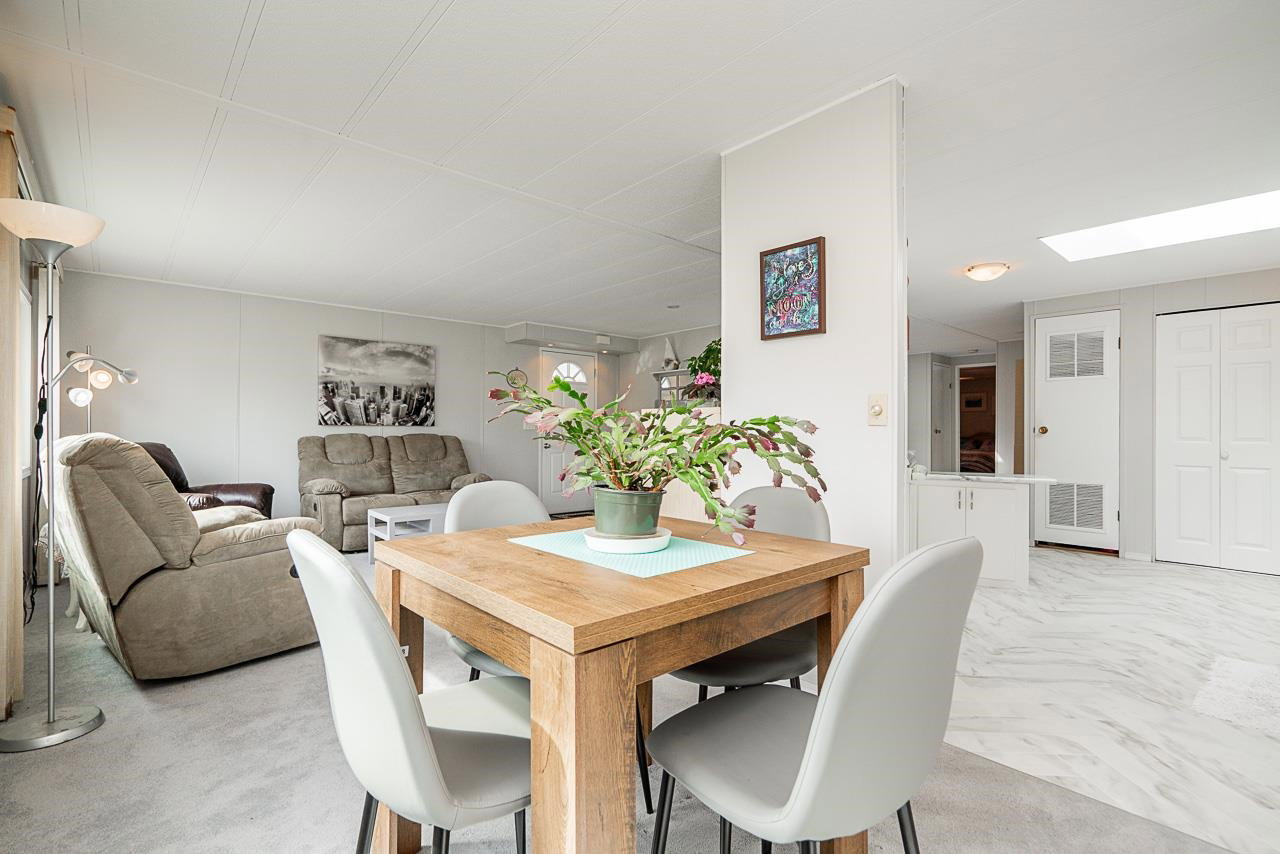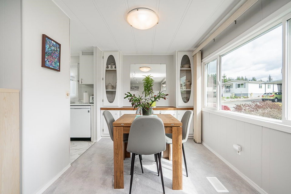 DESIRABLE Langley Grove Estates! This SUPER WELL-MAINTAINED & updated 2-bed, 2-bath gem boasts 1,181 sqft of living space & tons of NATURAL LIGHT streaming through the newer skylights & LARGE WINDOWS throughout. Lots of space in the BRIGHT kitchen with newer countertops & new dishwasher. Newer (’21) flooring in kitchen & living room & UPDATED PLUMBING THROUGHOUT! HEAT PUMP & A/C offer comfort year-round & have been serviced annually. Unwind on the PRIVATE DECK or attached SUNROOM area. STORAGE? Plenty! Parking? Room for everyone! LOW-MAINTENANCE yard features raised garden beds & bountiful FRUIT TREES, offering plums & 3 apple varieties. Situated in the QUIET AREA of this family-friendly complex w/ clubhouse, hot tub, & gym.Your new home awaits -call today to arrange your private showing!