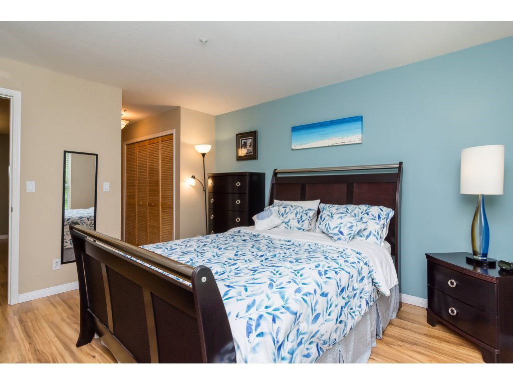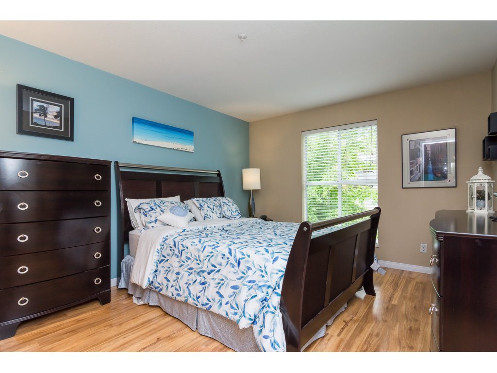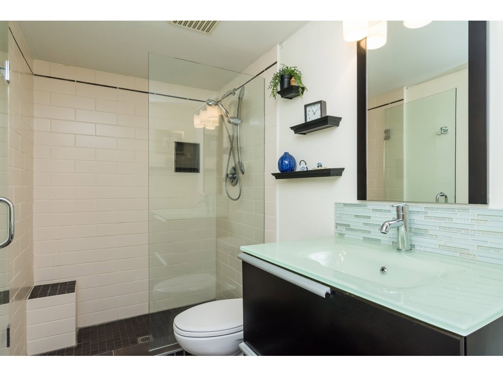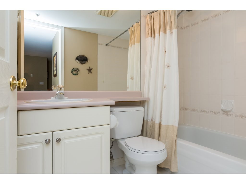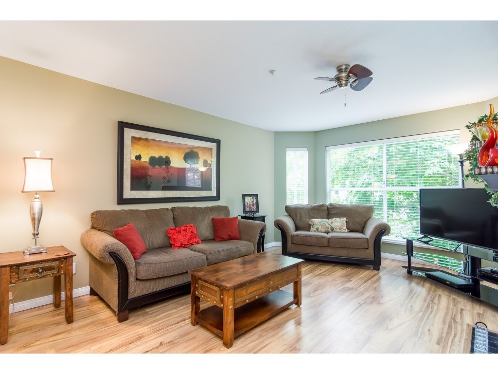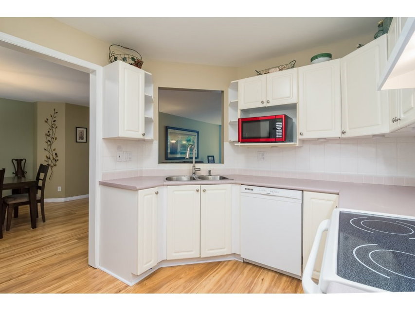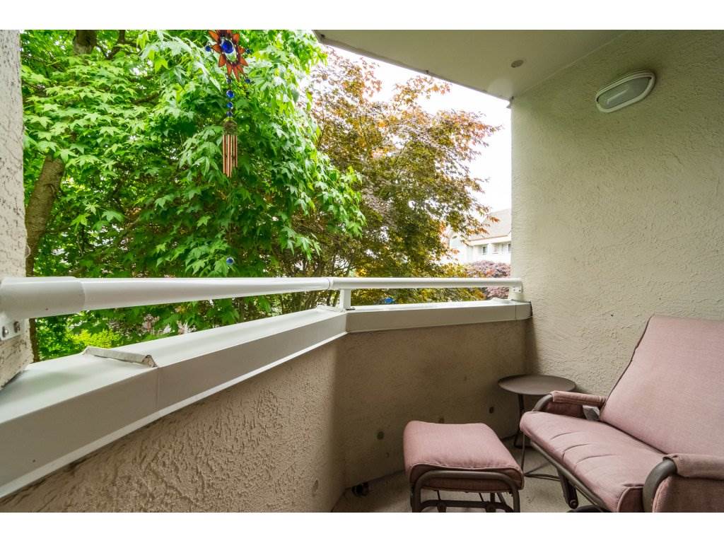 THE HIGHLANDS! SPOTLESS 2 bedroom, 2 bath 1025 sq ft condo facing the quiet inner courtyard overlooking the pond! Open floor plan with bedrooms on opposite sides offering loads of privacy. New laminate floors and warm paint colors. Cozy gas fireplace in living room. White kitchen with adjoining insuite laundry & extra storage room. Large master bedroom with walk through closets and totally renovated gorgeous ensuite with oversized glass shower! This is perfect for downsizers or first time buyers. Underground secured parking & storage locker. Great complex with brand new roof & proactive strata. Maint fee includes infloor radiant heat & gas fireplace. Footsteps to Shopping, Restaurants and Bus loop! PRICED TO SELL!