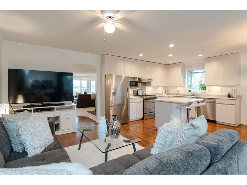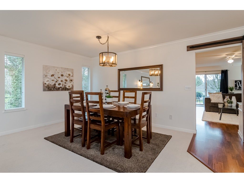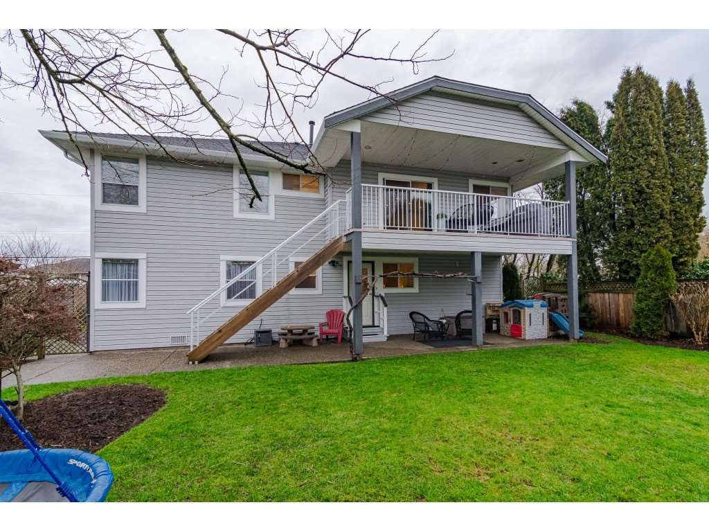 Attractive basement entry home in a quiet upper Murrayville family neighbourhood. Spacious layout w/ 3274 sq.ft. of living space. Main (upper) floor boasts a huge living room w/ view windows & gas fireplace, dining area, open & bright kitchen w/ stainless steel appliances, eating area, adjacent family room, & access to the huge covered deck & south facing rear yard. 3 bedrooms including large master suite. Flexible use lower level offers a front den, laundry room, living room, flex area, 2 bedrooms, full bathroom, & separate entry w/ large covered patio; great potential for extended family or future suite. Newer H/W tank, roof, furnace, paint, blinds, & washer & dryer. Crawlspace storage, shed, & RV parking possibilities. Great location close to schools, parks, recreation, & hospital.