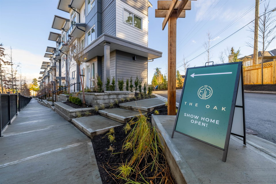 With stunning mountain views, the completed townhomes at The Oak are move-in ready and within walking distance to amenities, parks, beaches and major routes. Stone terraced landscaping and glass exterior railings welcome you to spacious, luxurious residences featuring standard air conditioning, custom closet systems, built-in fireplaces and large windows that flood the home with natural light. Build quality is second to none: master bedrooms with 12′ ceilings, ensuites with a spa-like feel, two closets, floor-to-ceiling windows and Juliet balconies. Modern kitchens feature stainless smart appliances and a large quartz island with custom built-in breakfast table. Large side-by-side garage, fitness centre and more. Contact today for more information!