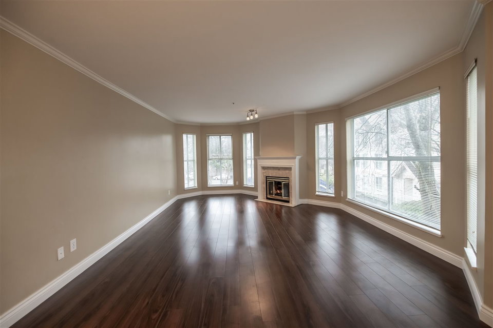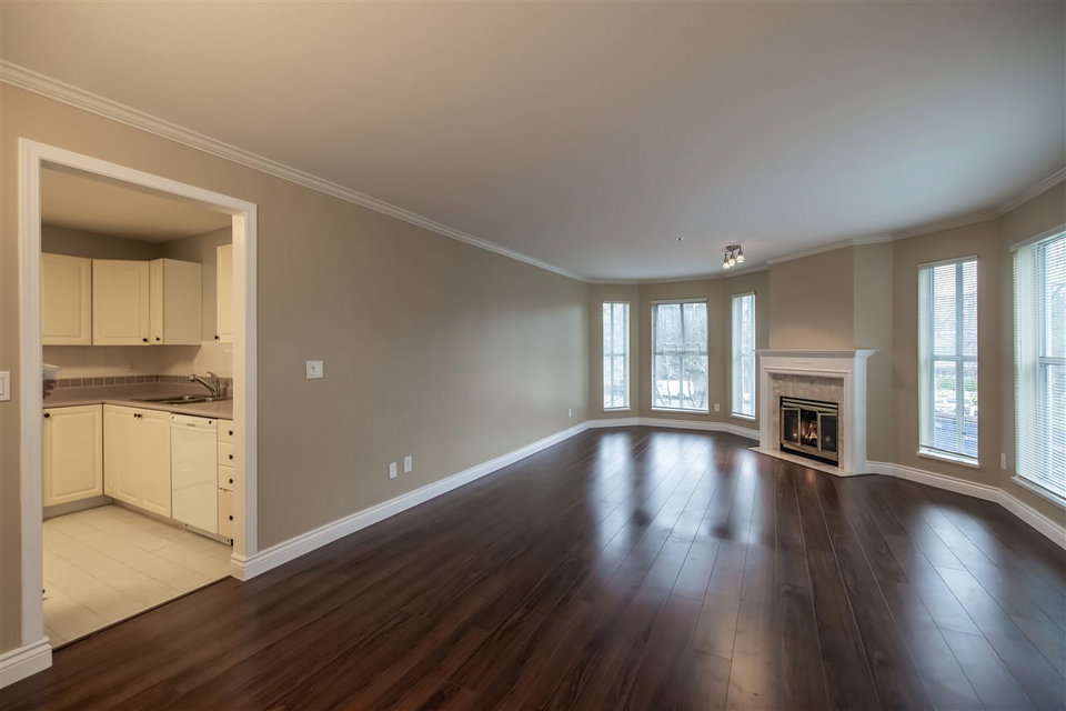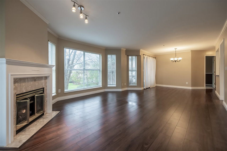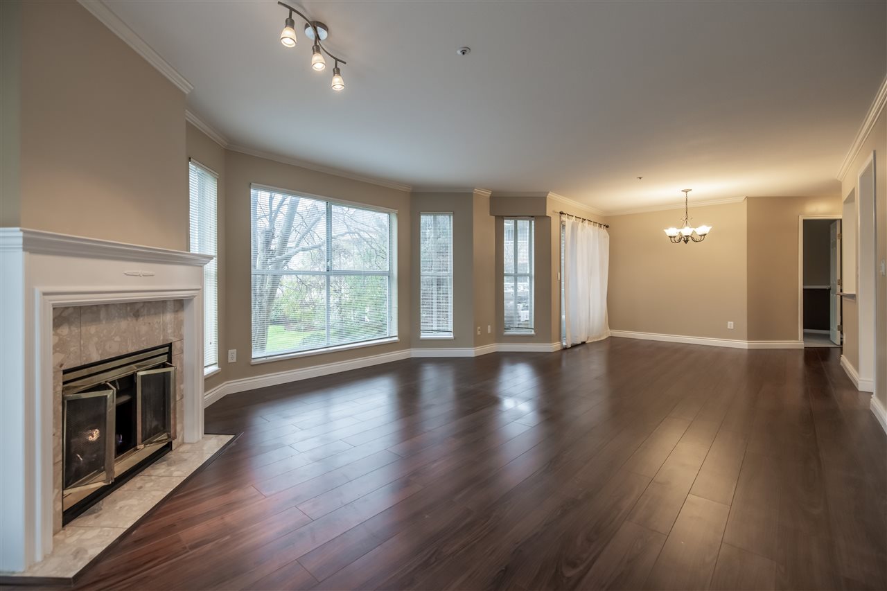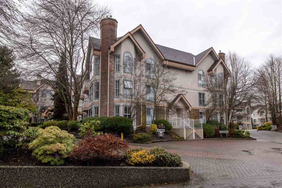 THE HIGHLANDS! Incredible value for this HUGE 2 bdrm 2 bath CORNER condo in one of the BEST LOCATIONS in the complex! 1245 sq ft overlooking the quiet inner courtyard. This ultra spacious home features radiant in floor heat, laminate floors in living & dining area, brand new carpets in bedrooms, updated paint & a separate laundry area with newer washer/dryer. Loads of windows everything nestled in your own private oasis in the biggest single level floor plan available. Gas fireplace in living area. Large hallway to oversized private master bdrm w multiple closets. Heat & gas fireplace included in strata fee. Bonus 2 underground secured parking stall. Storage locker also on same floor as unit! Footsteps to shopping, bus loop, restaurants & easy access to Hwy 91 and Alex Fraser Bridge.