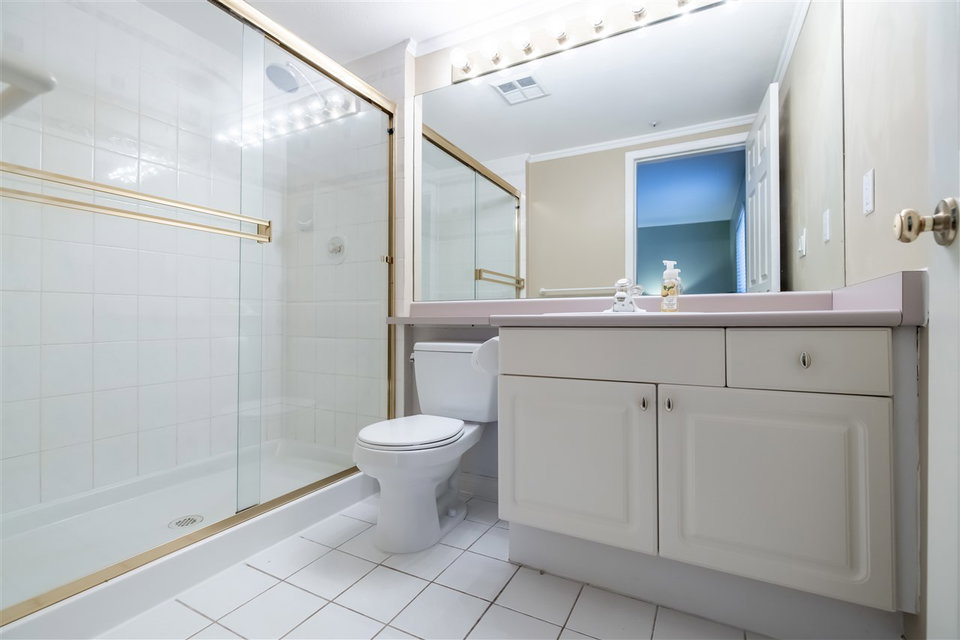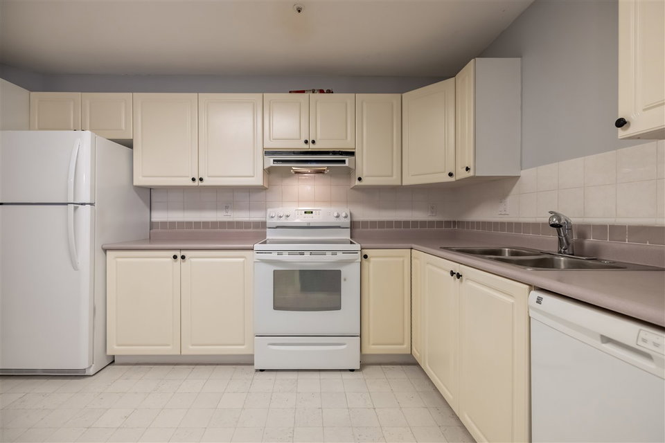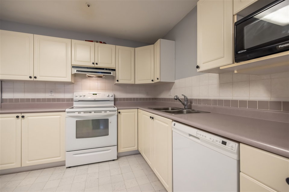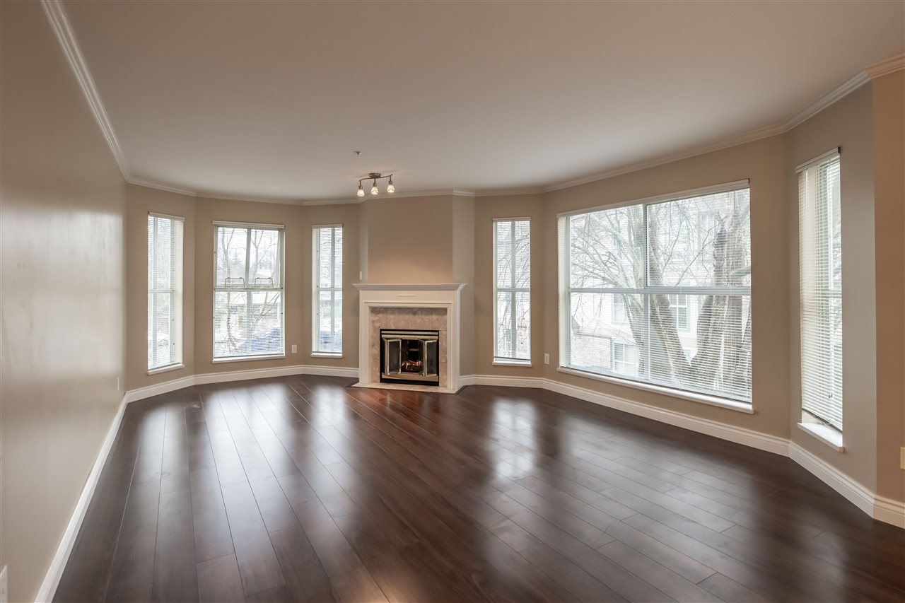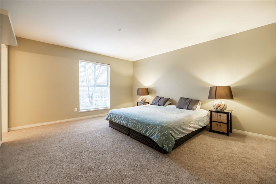 THE HIGHLANDS! Incredible value for this HUGE 2 bdrm 2 bath CORNER condo in one of the BEST LOCATIONS in the complex! 1245 sq ft overlooking the quiet inner courtyard. This ultra spacious home features radiant in floor heat, laminate floors in living & dining area, brand new carpets in bedrooms, updated paint & a separate laundry area with newer washer/dryer. Loads of windows everything nestled in your own private oasis in the biggest single level floor plan available. Gas fireplace in living area. Large hallway to oversized private master bdrm w multiple closets. Heat & gas fireplace included in strata fee. Bonus 2 underground secured parking stall. Storage locker also on same floor as unit! Footsteps to shopping, bus loop, restaurants & easy access to Hwy 91 and Alex Fraser Bridge.