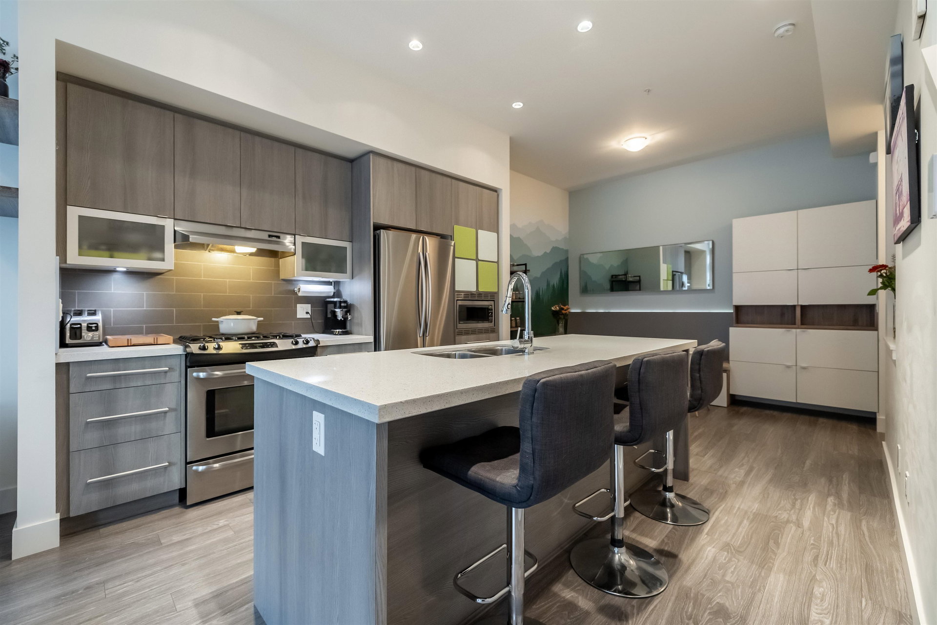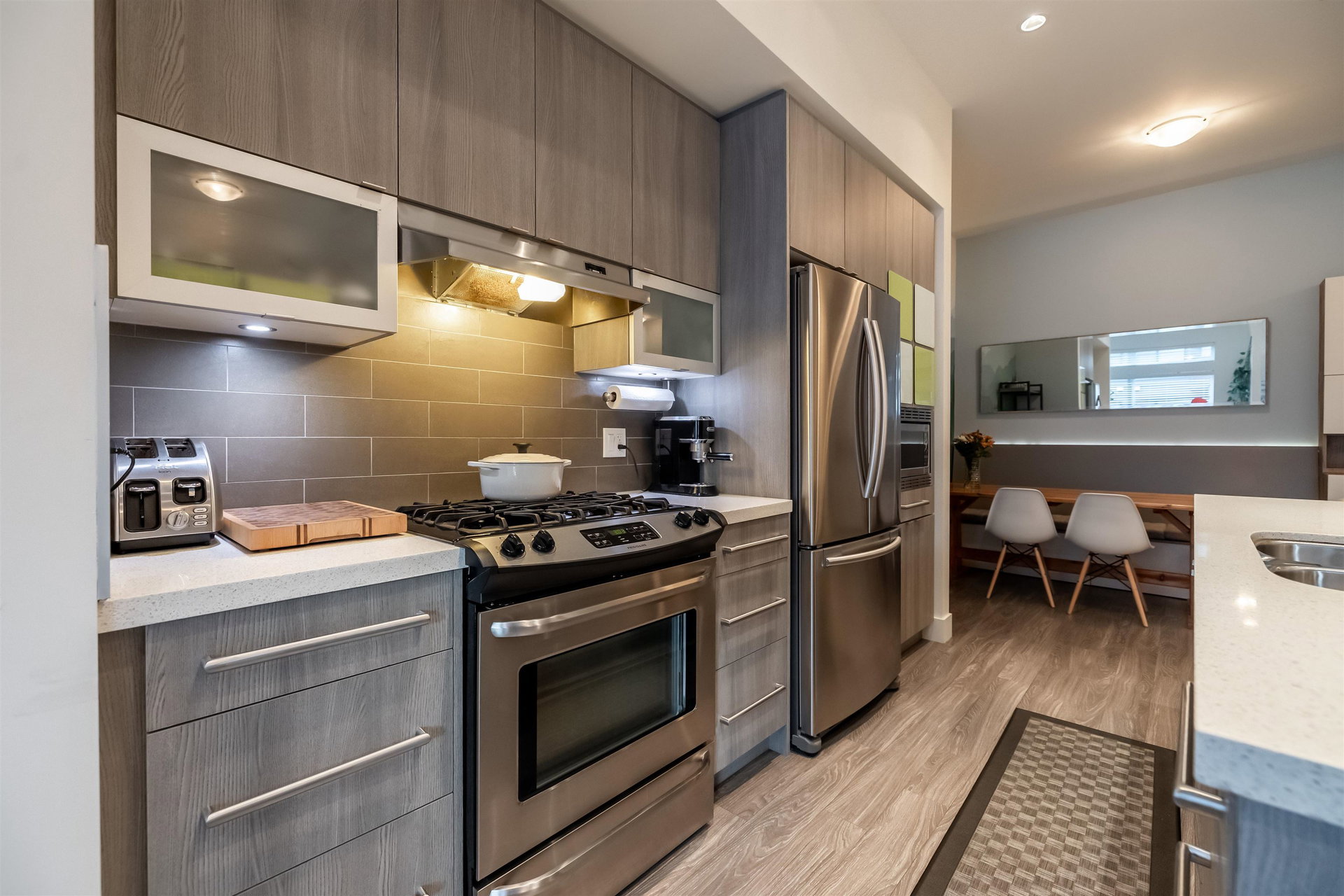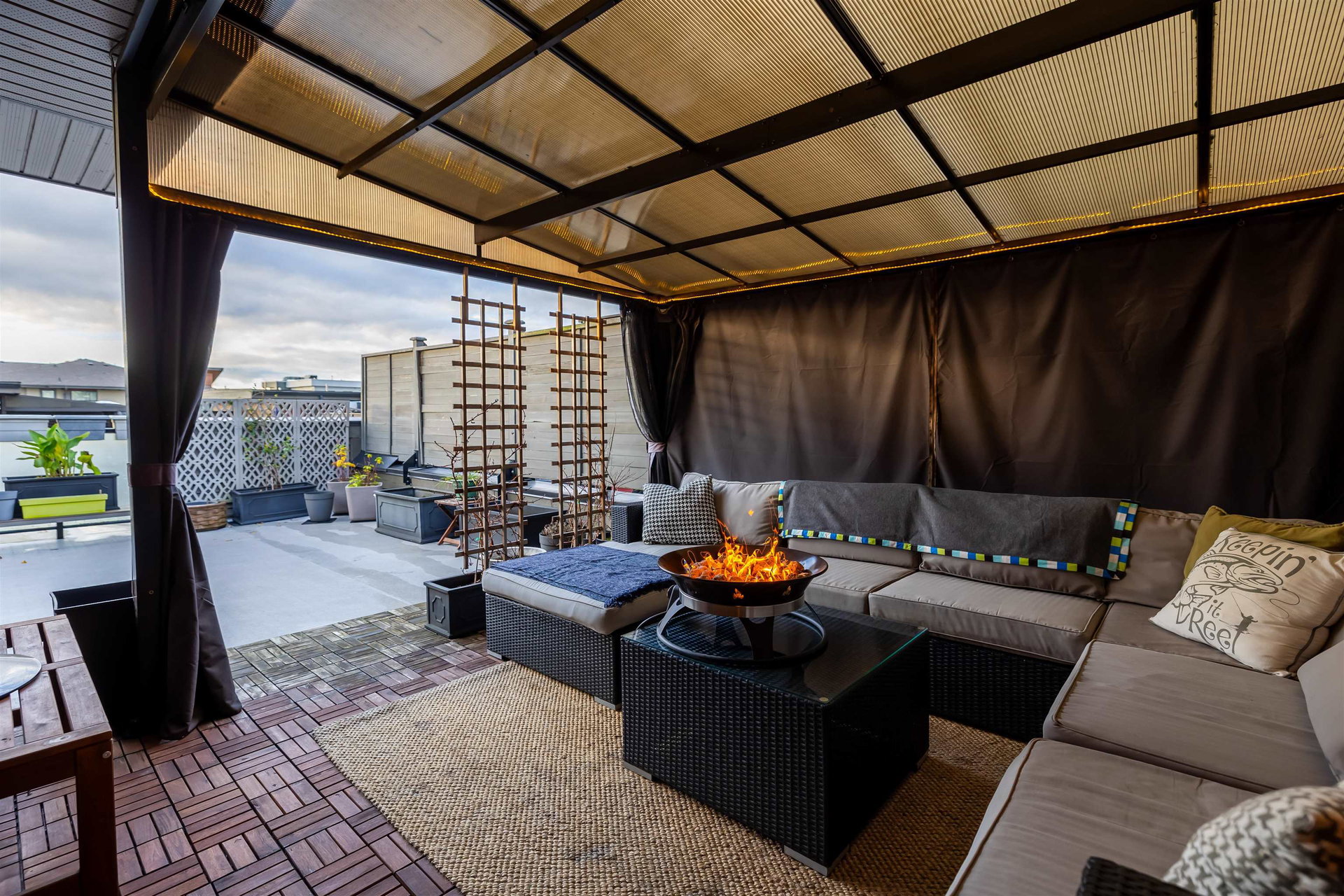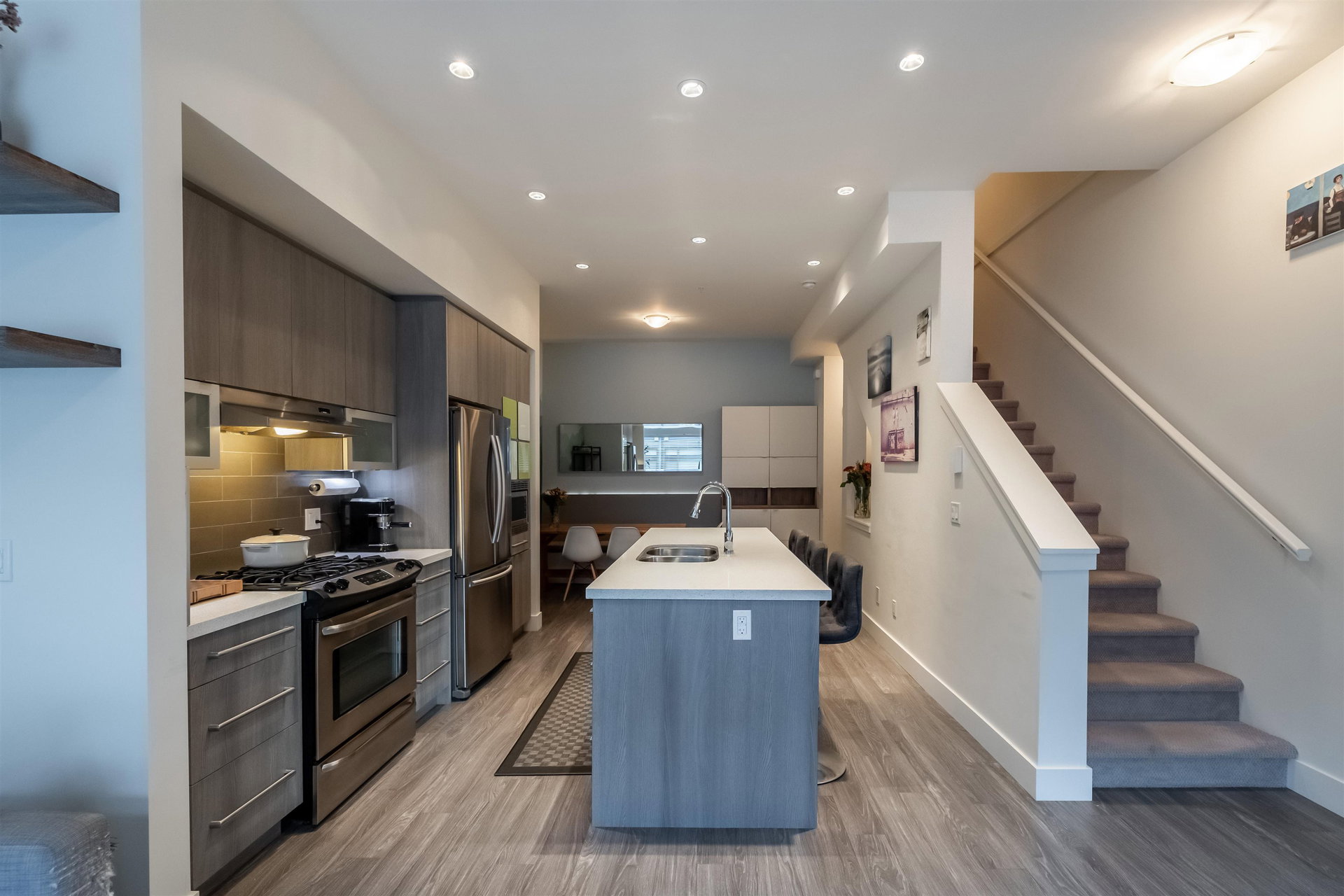 Welcome to EXCHANGE by Hayer, a vibrant community with ROOFTOP decks in sought-after Willoughby! This modern 2 bedroom, 2 bathroom townhouse offers a seamless blend of style, comfort and convenience. Open concept layout with large windows and great eating area off kitchen. Stainless steel appliances, gas range & island to host. Laminate floors on main with extra patio great for BBQ. Master suite has walk in closet and glass shower. ROOFTOP deck to enjoy outdoor living and watch the game, Perfect for entertaining & soaking up the sun. Custom Gazebo cover to enjoy your space all year around. Low monthly strata fees. Single garage and parking pad for your truck. Walking distance to schools, transit, shopping and restaurants. Great Value here!