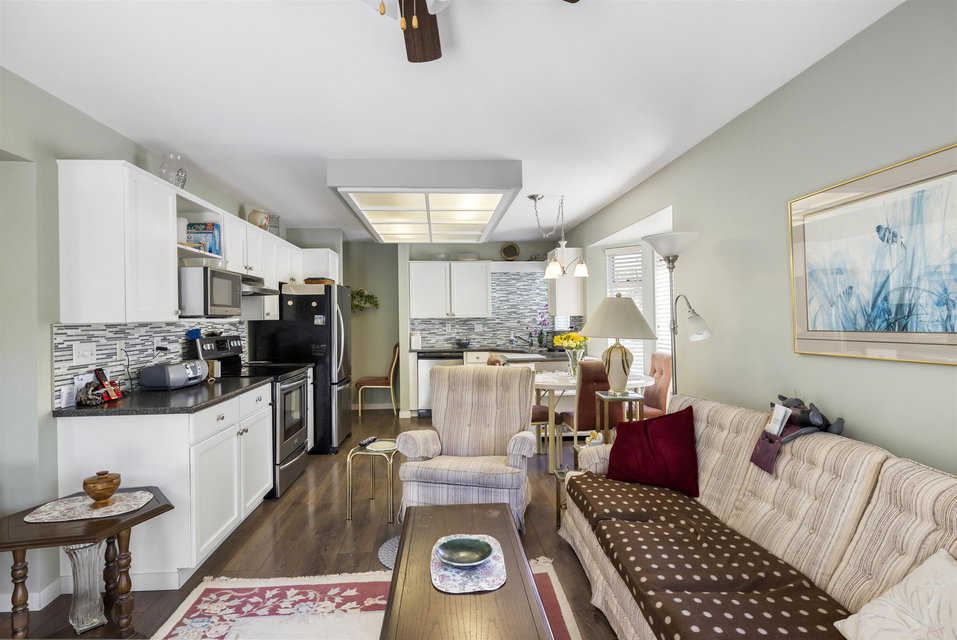 Welcome to GRANNY’S HOUSE! That’s right you have a once in a lifetime opportunity to own our Grandmothers home which has been meticulously cared for over the past 37 years. This is the highly desirable Glenwood Village complex. This 55+ GATED community offers privacy and convenience. Massive upper 1630 sq ft 2 bedroom 2 bath townhouse. South West facing in a quiet, peaceful location as you sip your morning coffee on your oversized private deck. Spacious, bright unit with formal dining room to entertain. Living room has gas fireplace. In floor radiant heat. Updated kitchen with family room & eating area. Giant Master suite with ensuite and walk in closet. Spare bedroom is on opposite end. Windows on 3 sides making this unit bright. Single garage. Beautiful complex and well maintained!