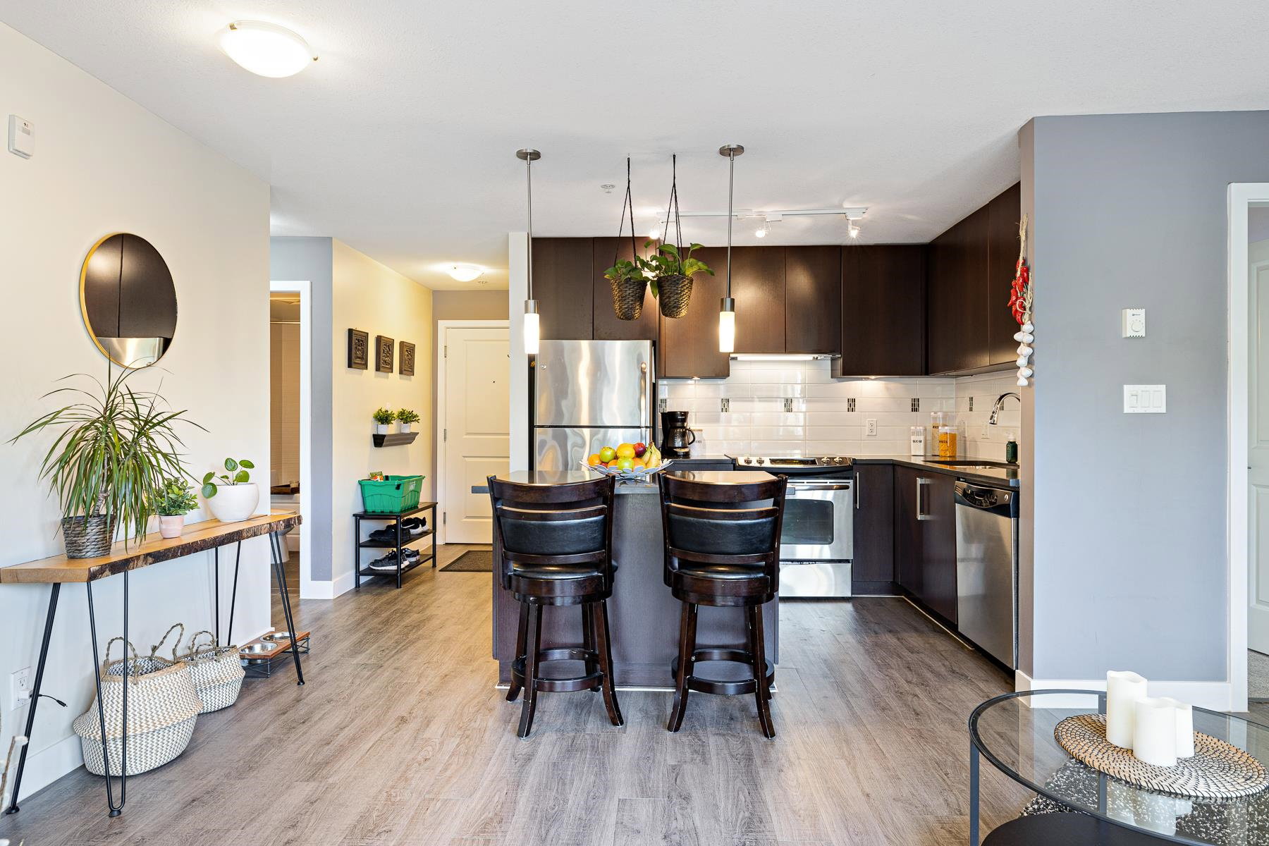 Welcome to The ARC at Morgan Crossing! This home is quietly and privately situated amongst one of South Surrey’s most desirable master-planned communities! This bright and elegant 2 bed 2 bath condo features a large open kitchen with granite counters, SS appliances & brand new carpets in both bedrooms. Living room opens up to your private patio & garden w/ nearly 250 sq.ft. of space to relax! Walk-out access to the elevated central courtyard, complete w/ community garden plots, lounge chairs, outdoor dining areas & reservable BBQ station. Centrally located in the Morgan Crossing community w/ Thrifty Foods, Starbucks, Everything Wine and dozens of other restaurants, shops, and services. You will love calling this place home! No rental restrictions! 2 pets allowed! 1 Parking & 1 Storage.