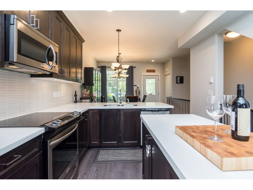 SULLIVAN STATIONS “BLACKBERRY WALK”! This 3 bedroom + REC Room quality built townhouse offers street side entry & was constructed by Park Ridge Homes & Woodbridge Properties. Enter right onto the main floor from your SOUTH facing front yard, covered porch & fenced yard! Beautiful kitchen with quartz counter tops, S.S appliances, shaker cabinets & sliding door leading to ANOTHER private back deck for bbqing & entertaining! 3 bdrms upstairs, laundry & 2 baths. Downstairs features a large REC ROOM and 2 piece washroom which would make a fantastic MEDIA room or gym area! Parking for 2 cars. Walking distance to Elementary School, Bell Center, sports fields & more. A great place to call home. *Open House Sunday May 27 2-4pm!*