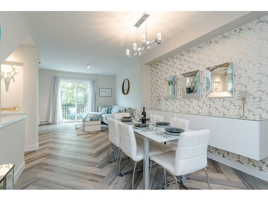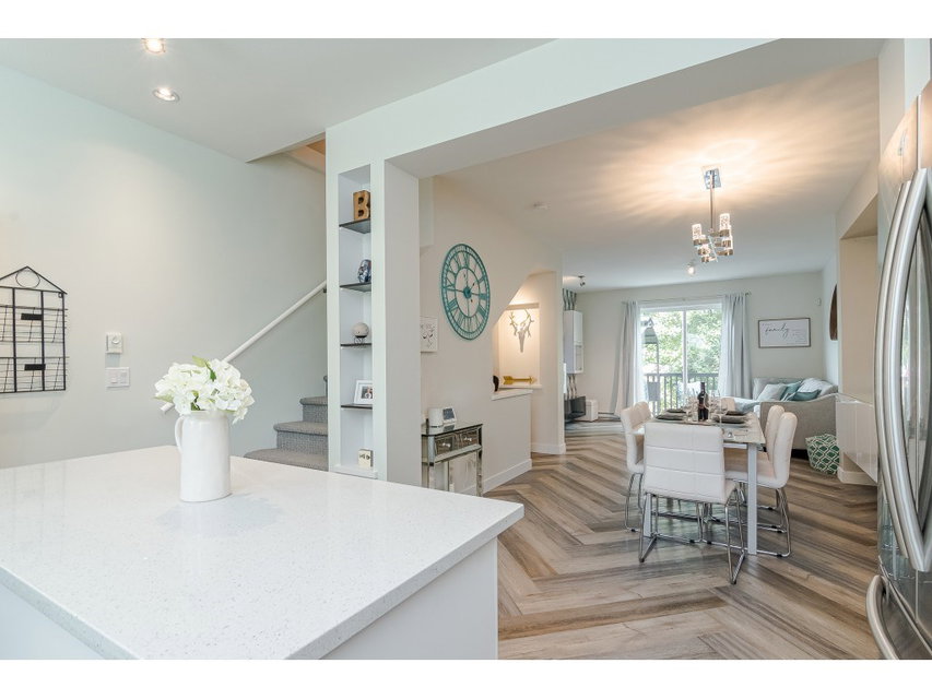 KNOLL by Mosaic! This is your chance to own one of Claytons best kept secrets. Beautifully updated 2 bdrm 2 bath townhouse backing onto farmland is in the best location across from park! This incredible unit features loads of upgrades including warm designer paints colors, new carpets, luxury vinyl plank floors on main, updated high end fixtures and amazing built ins throughout! STUNNING kitchen with custom island, quartz counter tops, Stainless steel appliances, extra cabinets & room for your bar stools to entertain. Living area features built in wall unit w fireplace & has sliding door leading to your back deck for summer BBQS! 2 spacious bedrooms upstairs w upgraded washer/dryer. Fenced back yard perfect for your pet. Attached workbench & storage cabinets in 2 car garage! 10 OUT OF 10!