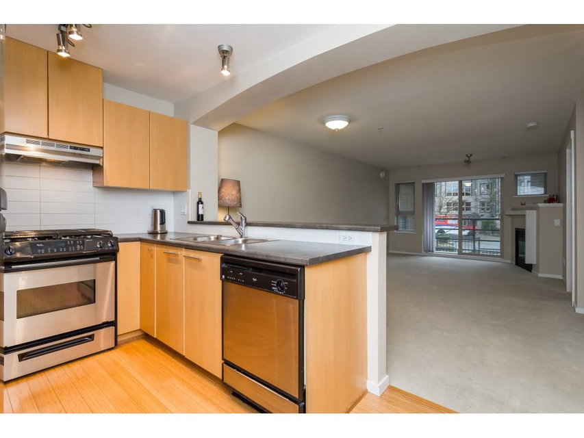 HARMONY by POLYGON! Fantastic 2 bdrm 2 bath unit footsteps to Simon Fraser University! This QUIET unit overlooks the COURTYARD and has a open layout with stainless steel appliances, gas fireplace & spacious deck to relax and study! Insuite laundry. Spacious master bedroom with walk in closet. Bamboo floors in entry & kitchen. Walking distance to Transit, Coffee Shops, Parks, bikes trails and CAMPUS! Underground secured parking stall. GREAT COMPLEX and Community! Maintenance fee includes gas fireplace & hot water. RENTALS ALLOWED! Tenant Lease unit Sep 1, 2018. A great place to call home!