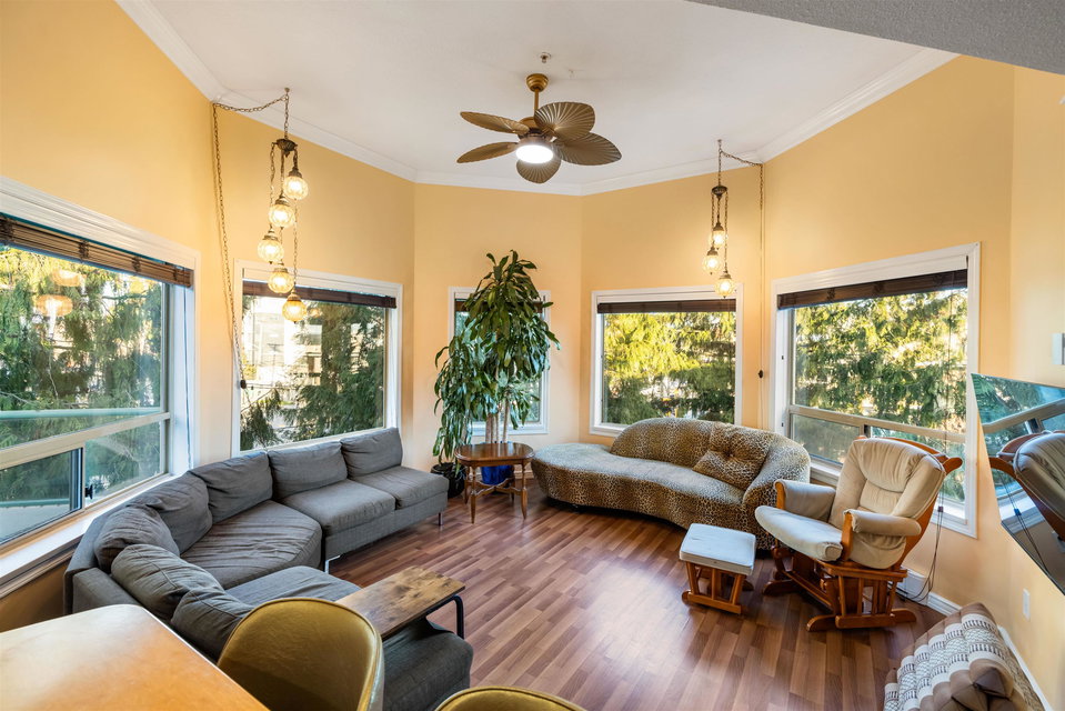Experience PENTHOUSE LIVING & the crown jewel of PARK PLACE in the heart of Langley City. This rare corner-unit residence spans a massive 1,462 sq ft w 2 bedrooms & den and incredible storage space. Updated flooring, warm paint tones & updated lighting. Kitchen has stainless steel appliances & bar area. Oversized bedrooms & huge laundry room w loads of room for all your stuff. Great office space could fit 2 work stations. Bright and airy floor plan with expansive windows allowing loads of natural light. Beautiful garden room w towering ceilings for gatherings. Entertain in style on your two oversized private decks perfect for summer bbqing with friends. Secure parking stall & storage locker. Footsteps to Park, restaurants, Bus exchange & future sky train. Great value for this size!