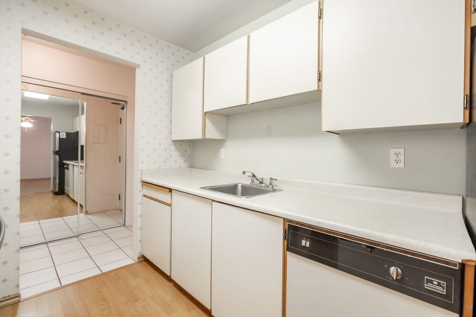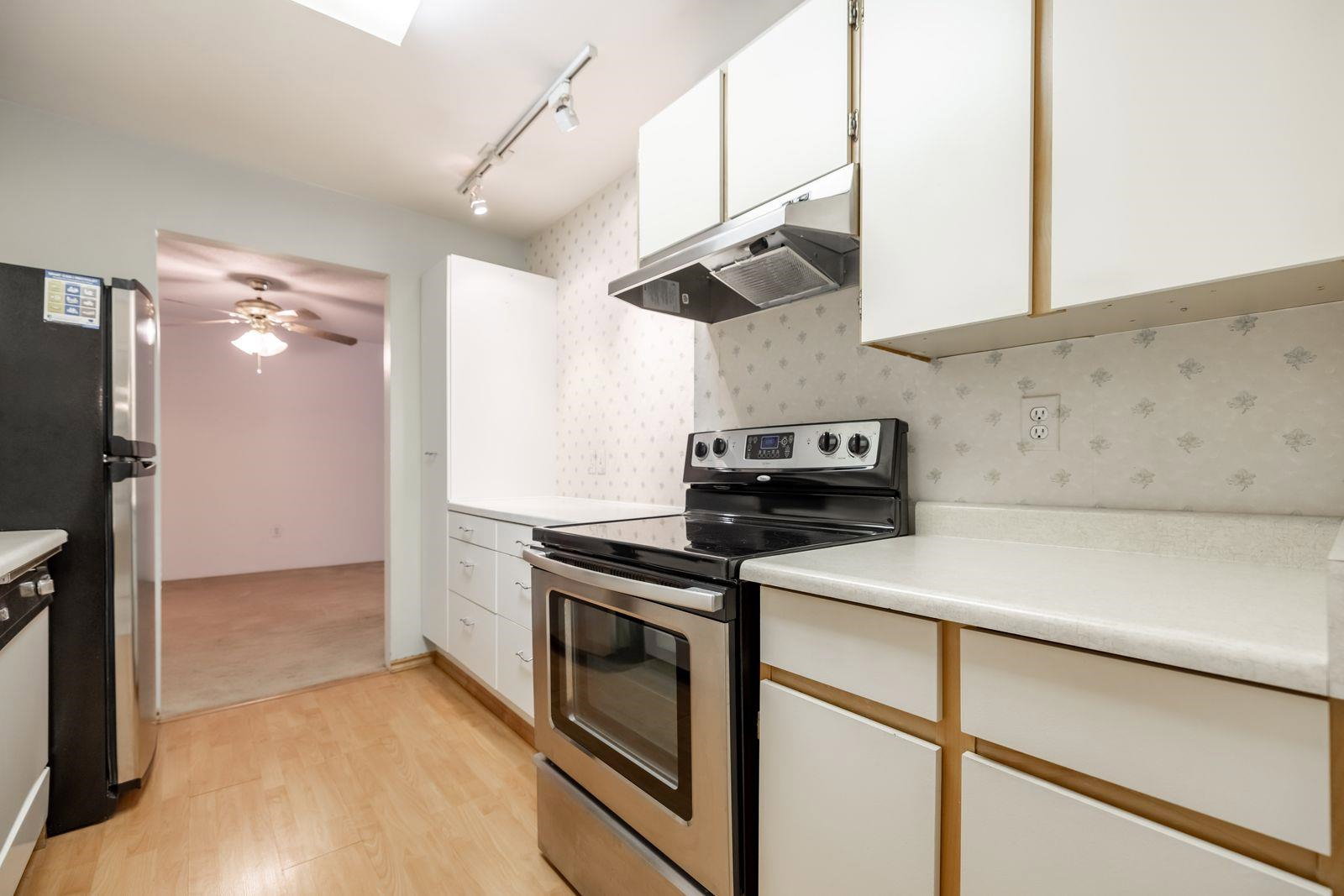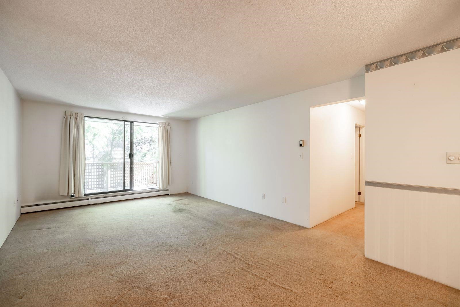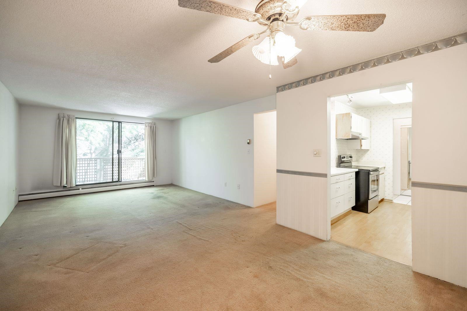 ATTENTION First time buyers! This is your chance to step into the market! This TOP FLOOR 2 Bedroom, 1 bath condo in Lincolns Hill is ready for your renovation ideas! Spacious 958 sq ft layout w a massive deck overlooking the peaceful courtyard. Relax & enjoy the sounds of the complex waterfall surrounded by lush greenery. Walk through kitchen & formal dining room. Hot water is included in your strata fee. Secured underground parking stall & storage locker. This complex is footsteps to Guildford Rec Center, Guildford mall, Bus stop & easy access to hwy 1! Please note complex rentals are maxed. Great value & quick dates possible!